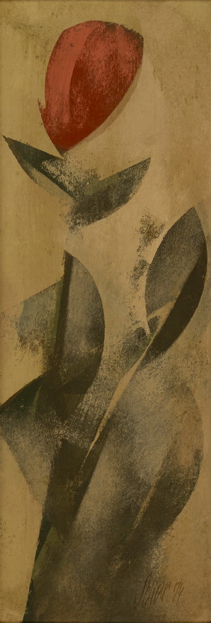 Carlos Scliar - Castiçal - 37 x 13 cm - Vinil encerado sobre tela colado em madeira - Assinatura canto inferior direito e Data 1978