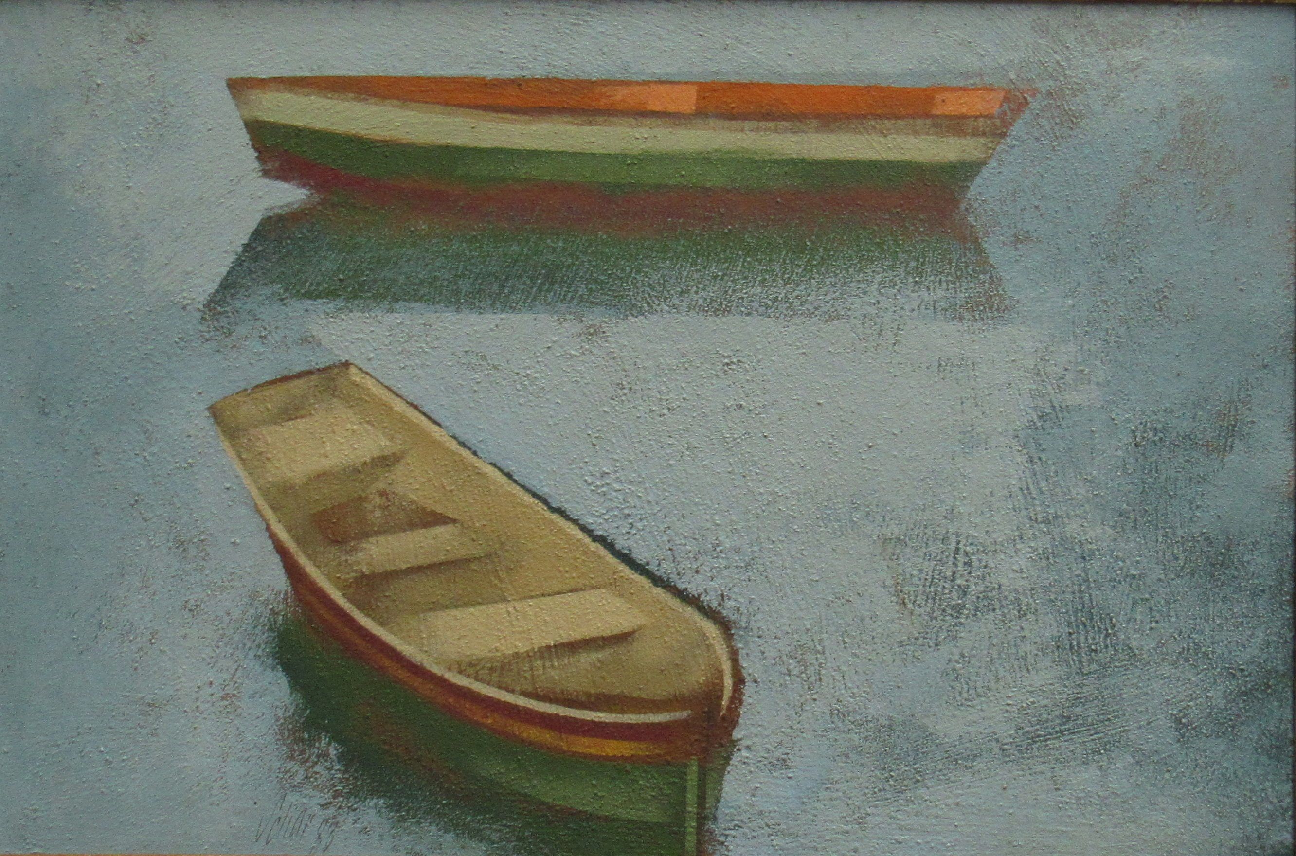 Carlos Scliar - Figuras diversas. Vinil e colagem encerados sobre tela, 37x56 cm, 1992, A.C.I. e V. Com moldura