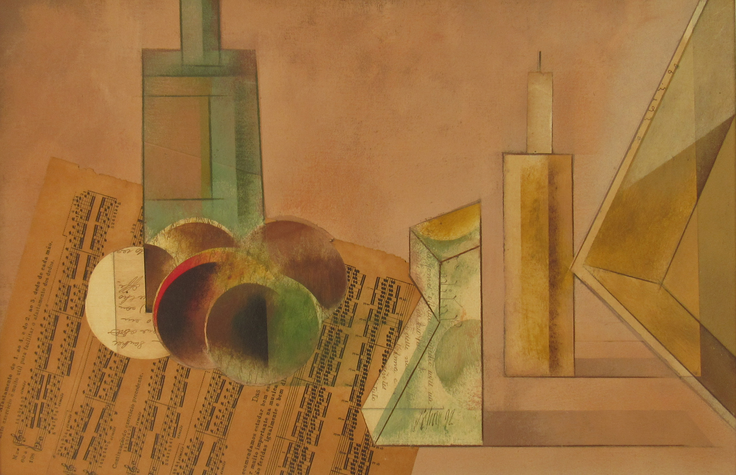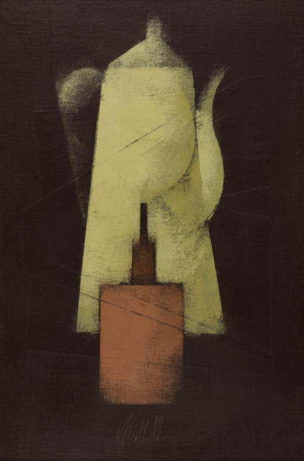 Carlos Scliar - Castiçal - 1972 - Vinil encerado e colagem sobre madeira - Assinado verso - 37 x 26 cm. Coleção Múcio Bandeira de Mello.