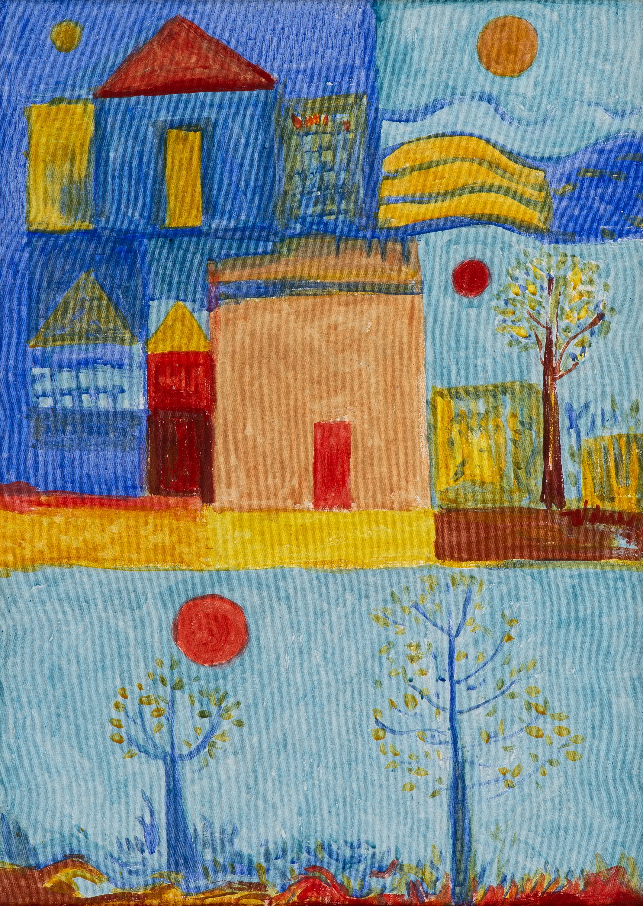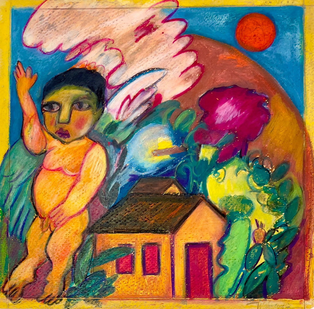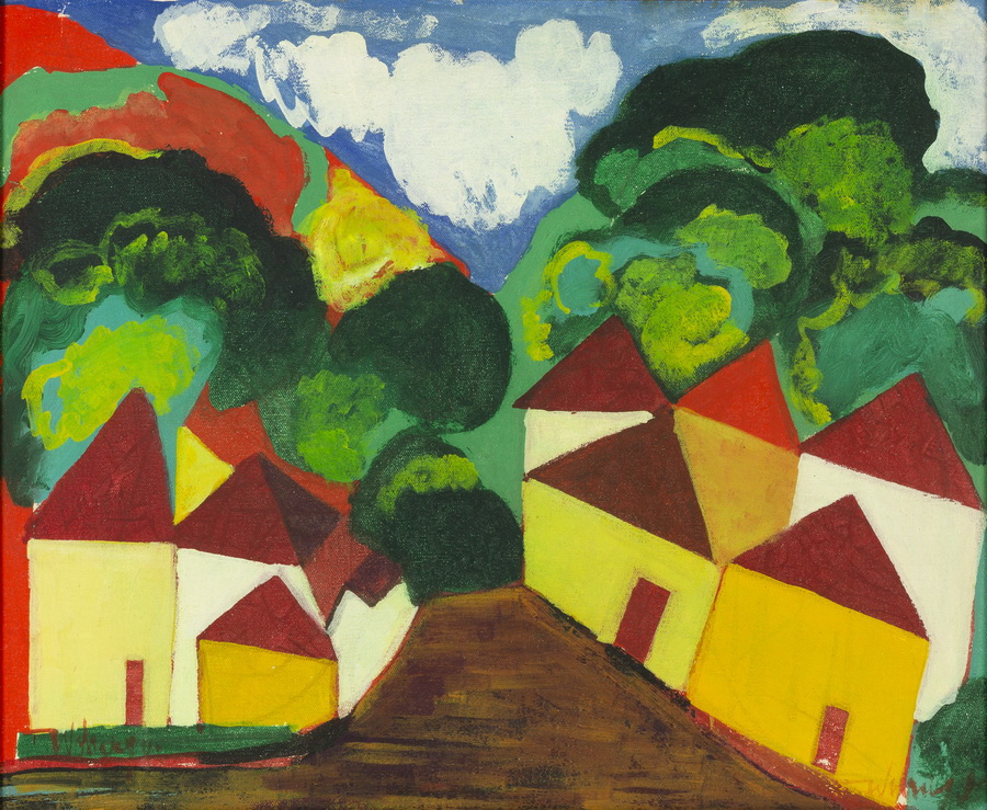 Paisagem - 33 x 34 cm - Técnica Mista Sobre Cartão - Ass. Canto Inferior Direito - Sem Moldura - Bom estado
