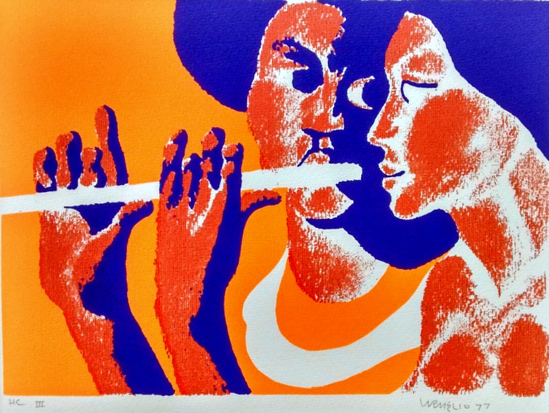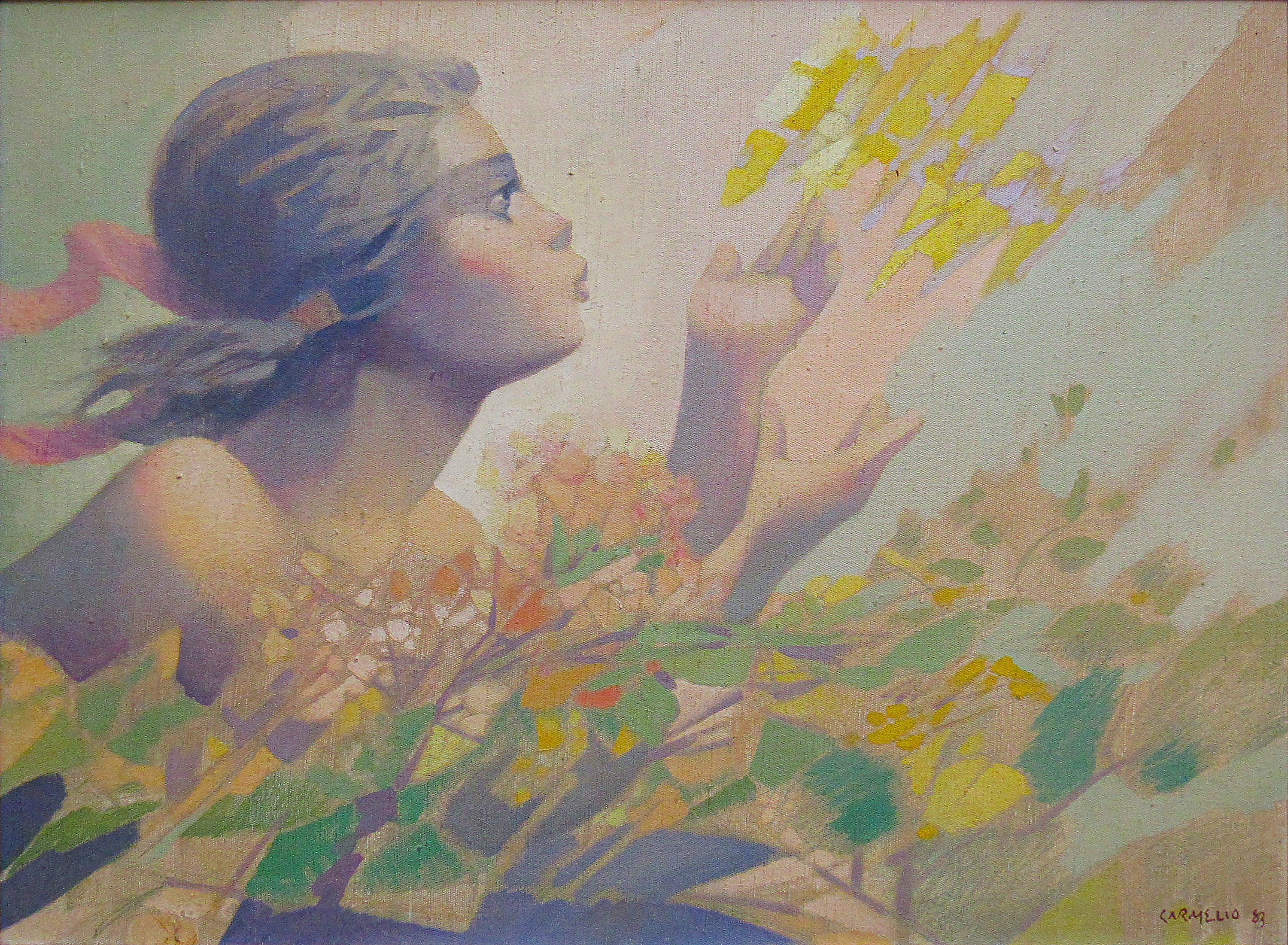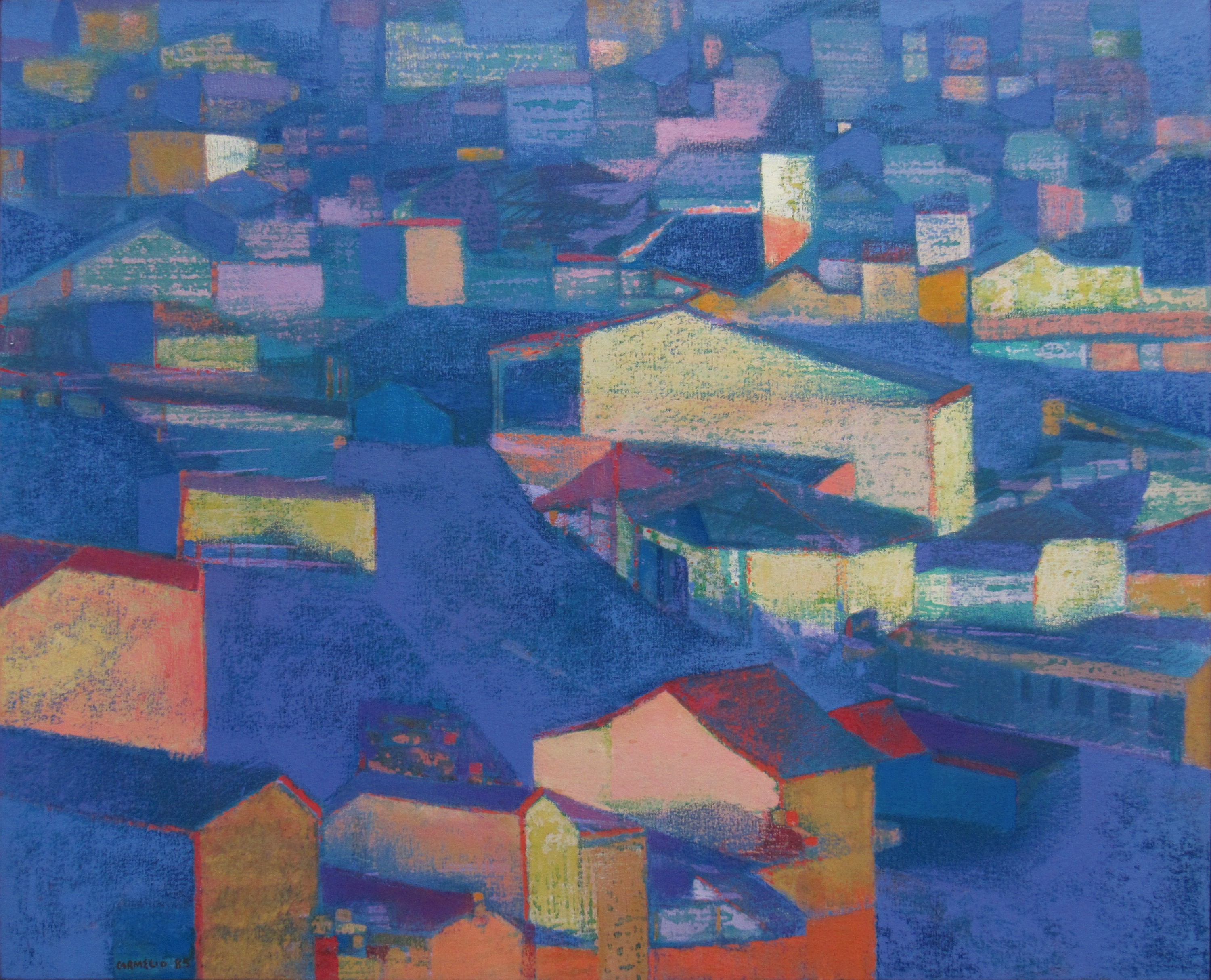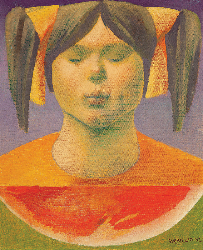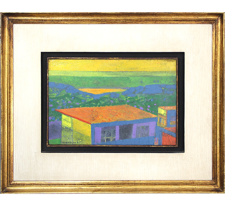 Carmélio Rodrigues Cruz (Canindé CE 1924). Desenhista, cenógrafo, figurinista, gravador. Trabalha com o mestre Jacinto de Souza, de quem recebe as primeiras informações sobre arte, entre 1935 e 1940. Quatro anos depois, participa da Sociedade Cearense de Artes Plásticas - SCAP ao lado de Antonio Bandeira (1922 - 1967), Aldemir Martins (1922 - 2006) e outros. Em 1947, muda-se para o Rio de Janeiro, passando a lecionar na Associação Brasileira de Desenho, até 1950. É diretor do departamento de arte da TV Continental, entre 1959 e 1961. Expõe individualmente pela primeira vez em 1951, no Museu de Arte Moderna de Resende, MAM/Resende. Em 1963, realiza o documentário O Fogo e a cenografia do filme Pluft, o Fantasminha, recebendo por este trabalho o Prêmio Saci de O Estado de S. Paulo e o Prêmio Governador do Estado de São Paulo.