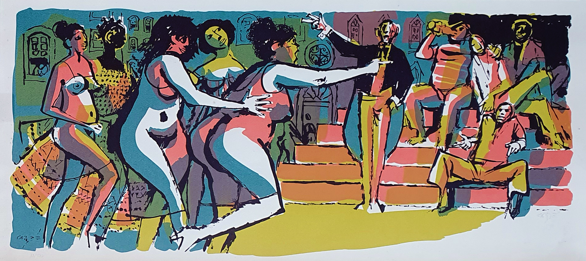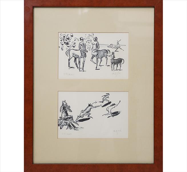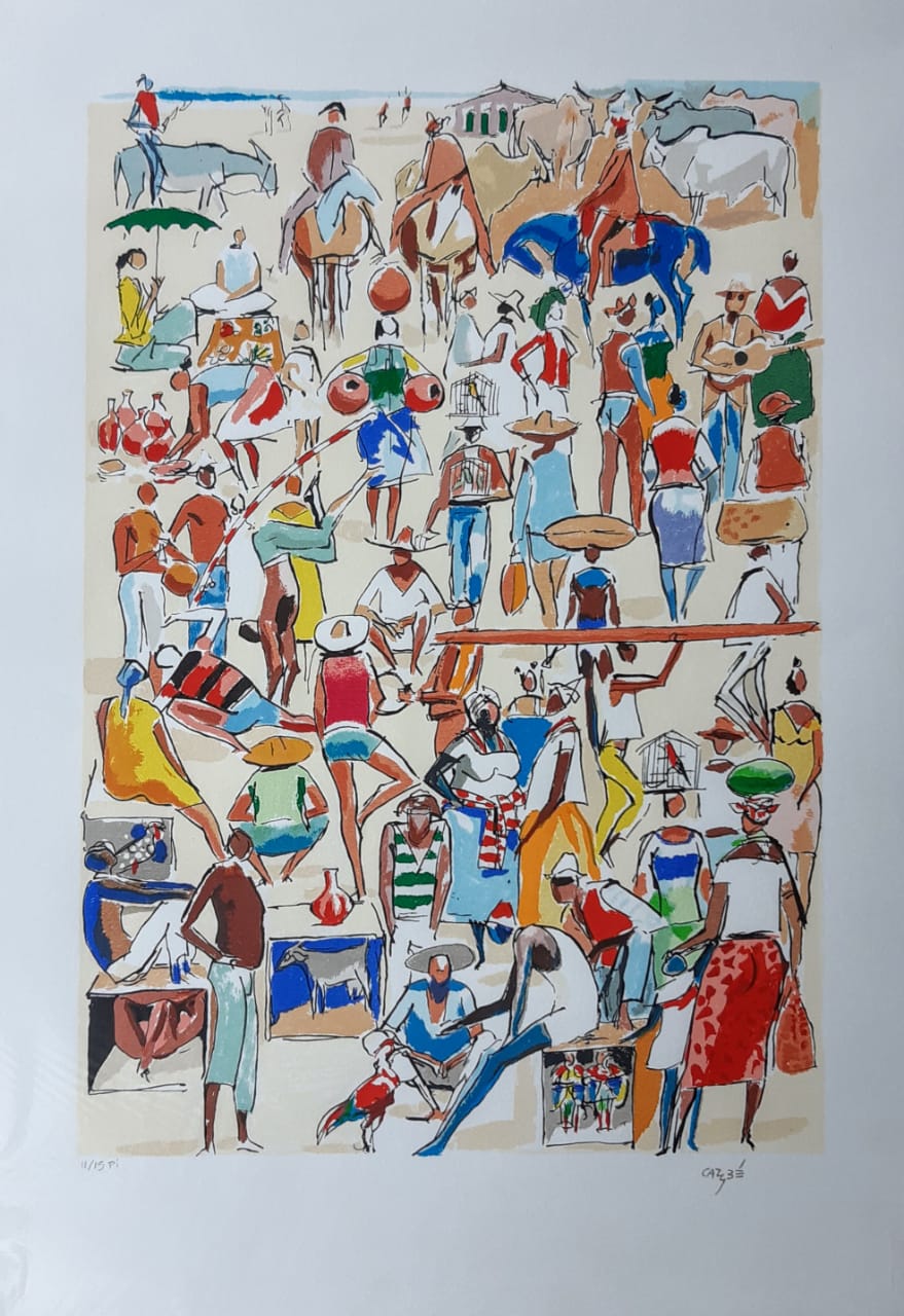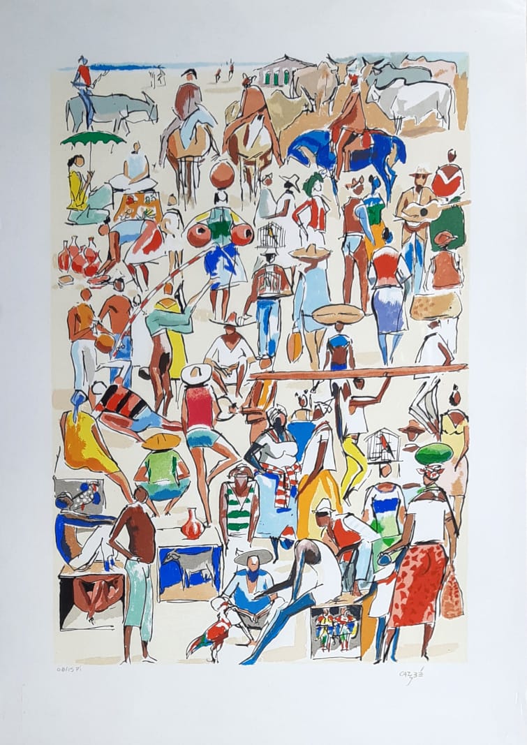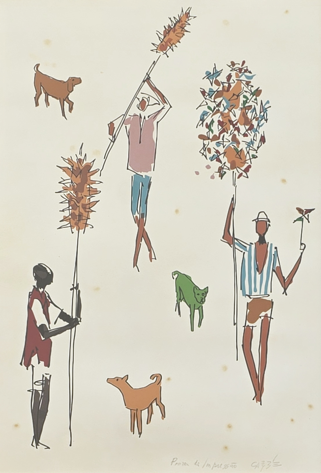 Carybé - Figuras - Prova do impressor. Serigrafia, 61x44 cm, sem data, A.C.I.D. a lápis. Com moldura