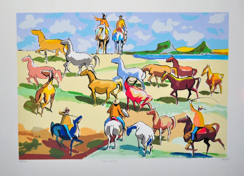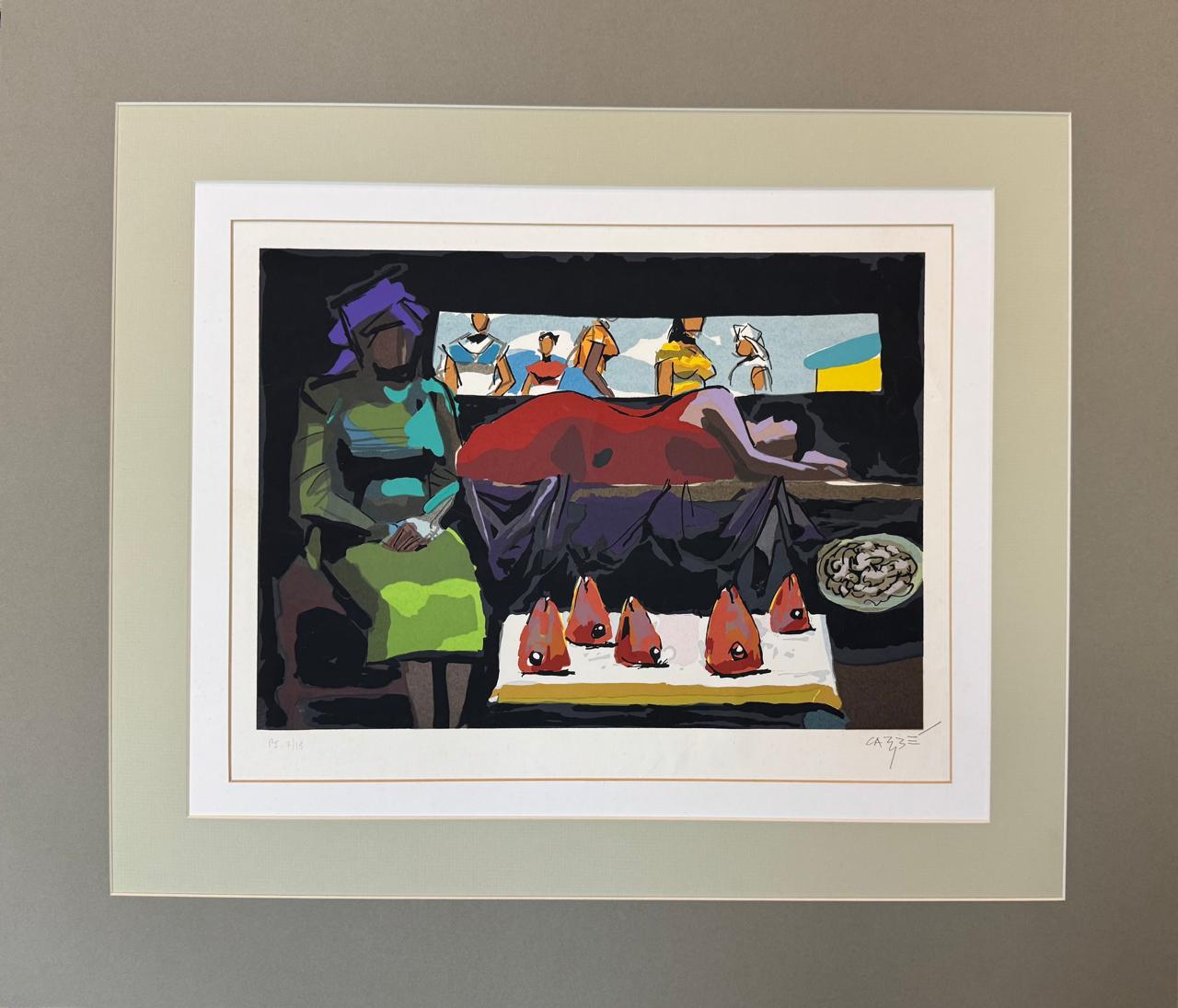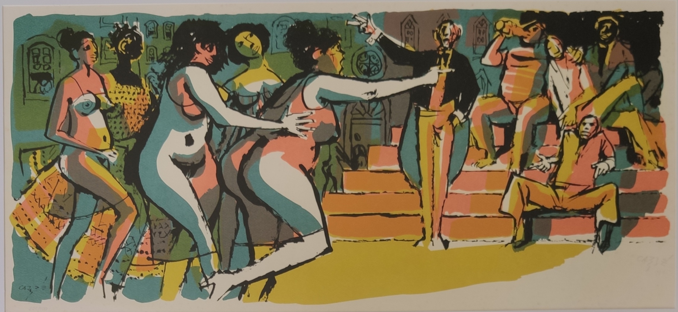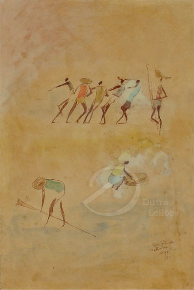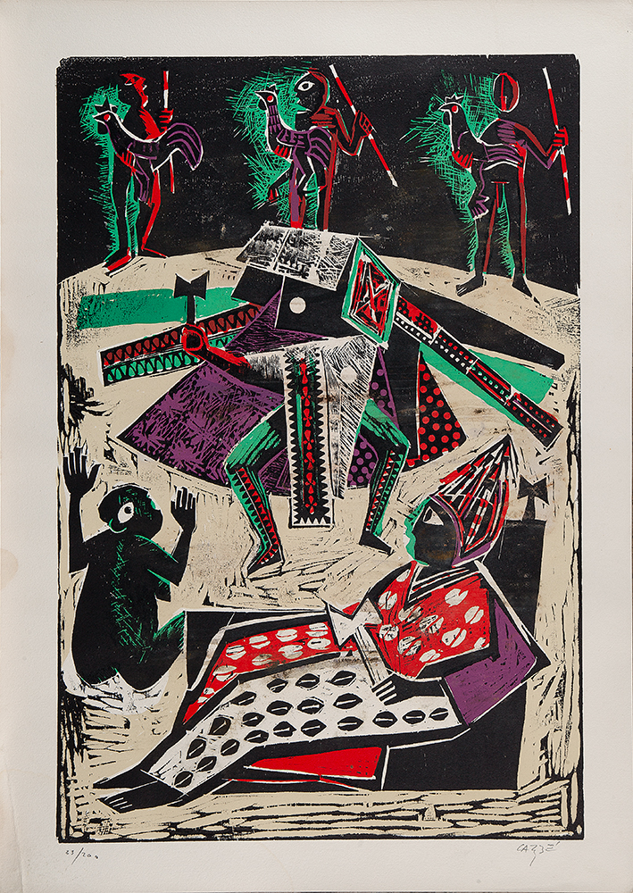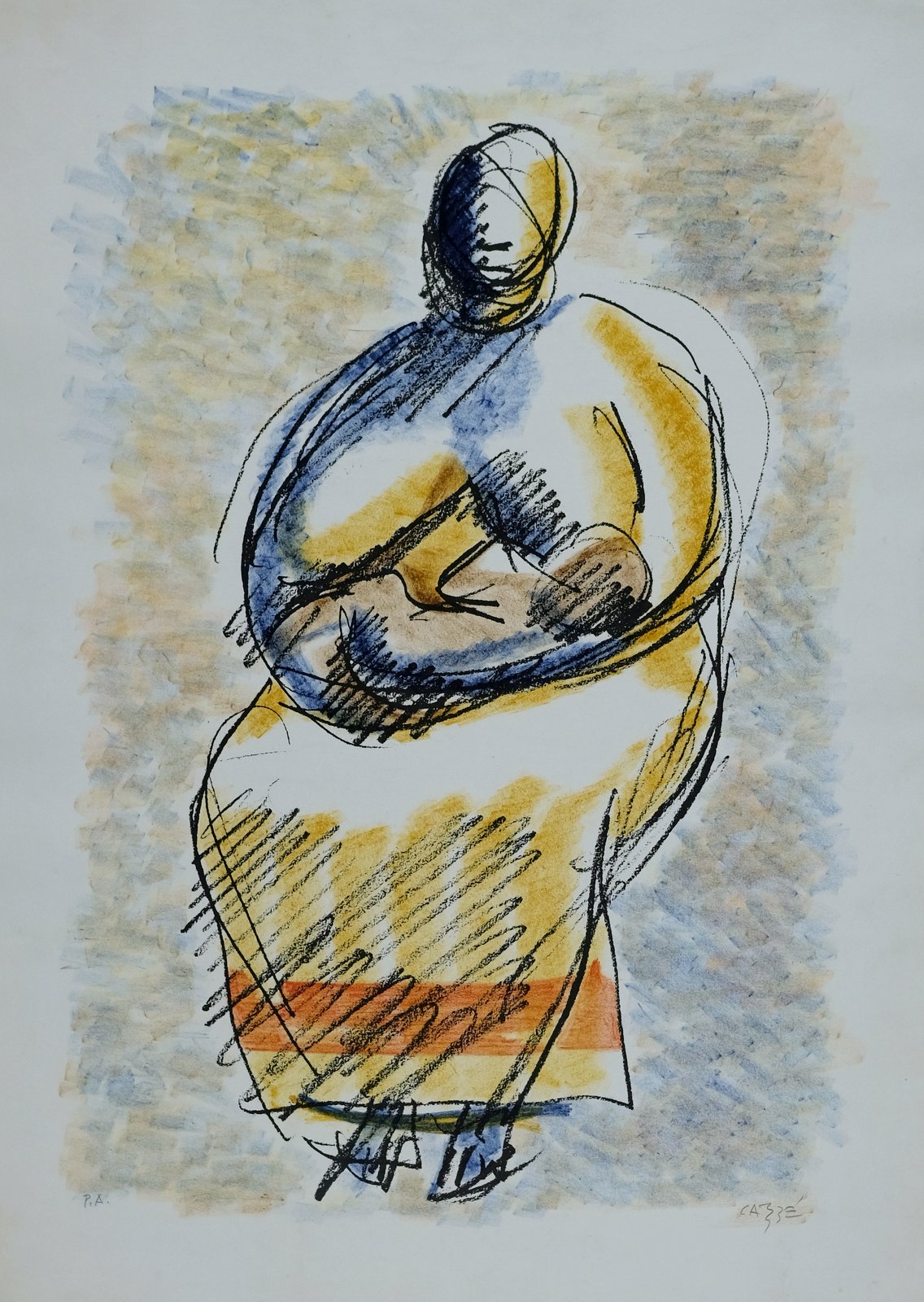 Carybé - Figuras - Prova do impressor. Serigrafia, 61x44 cm, sem data, A.C.I.D. a lápis. Com moldura