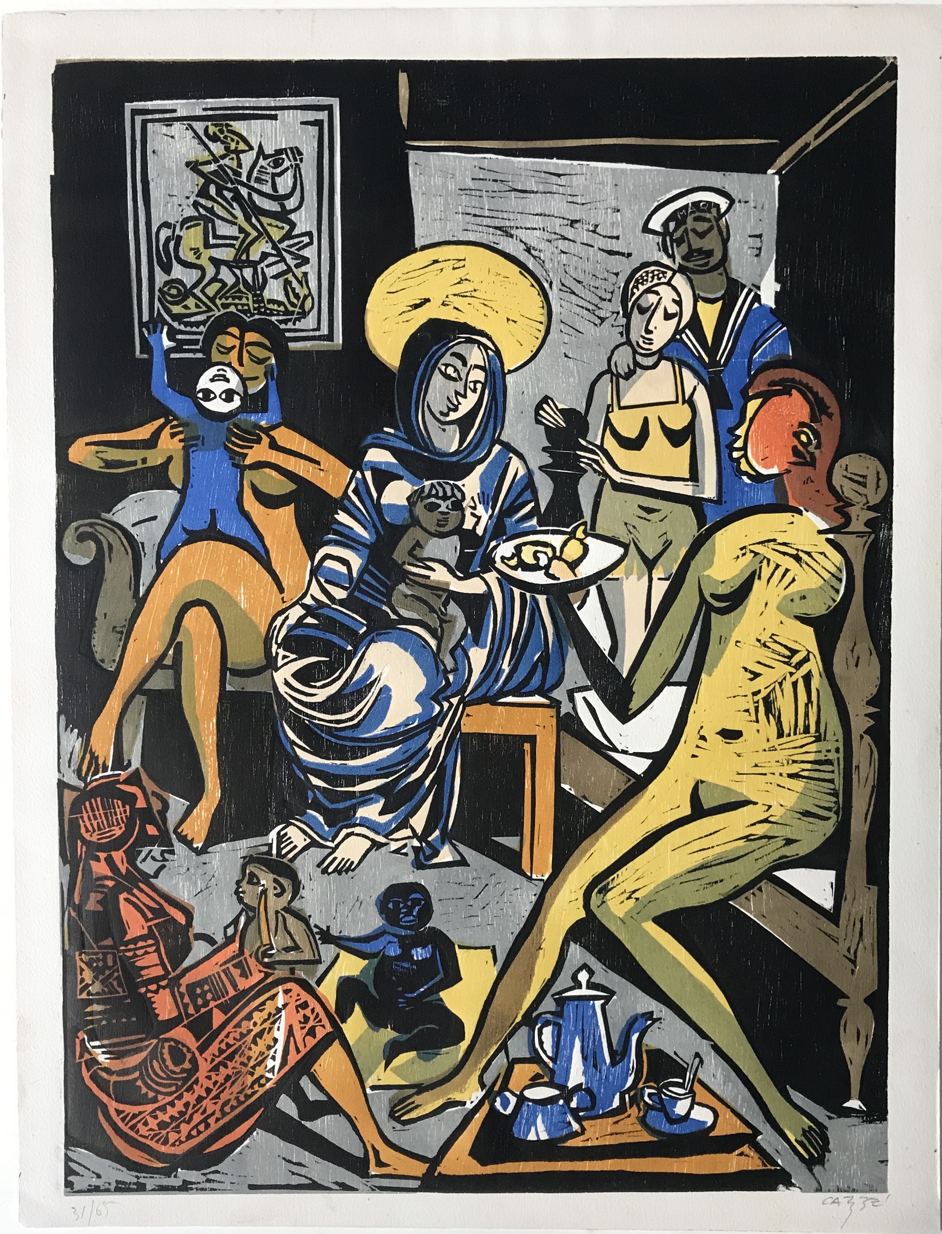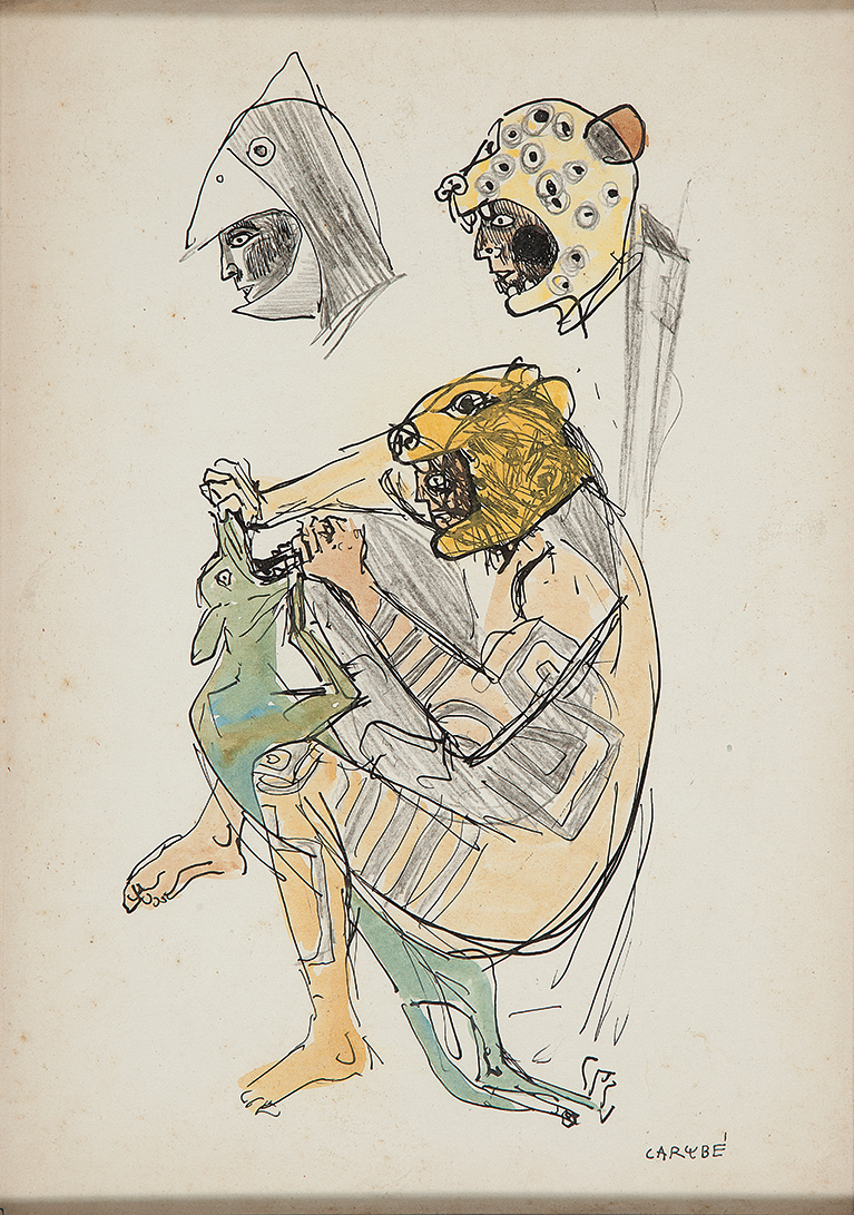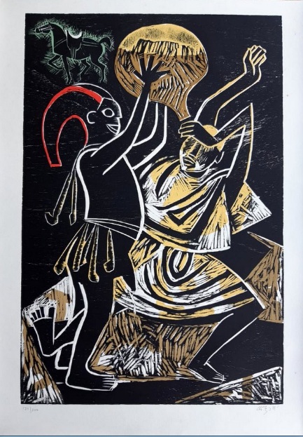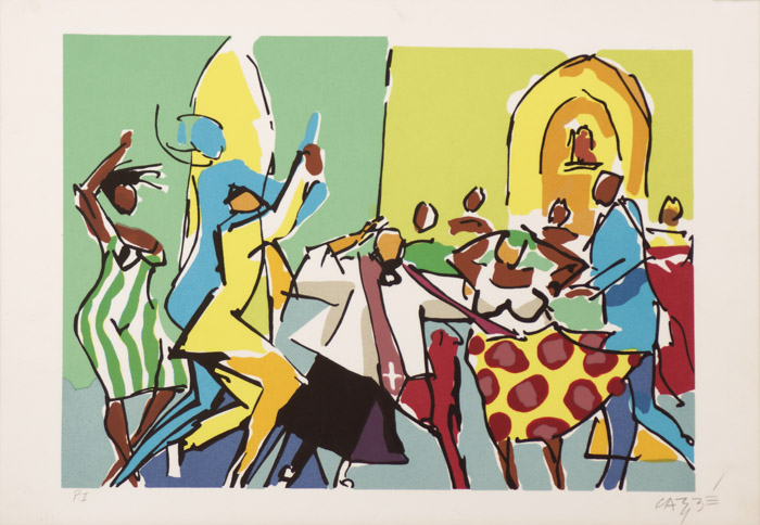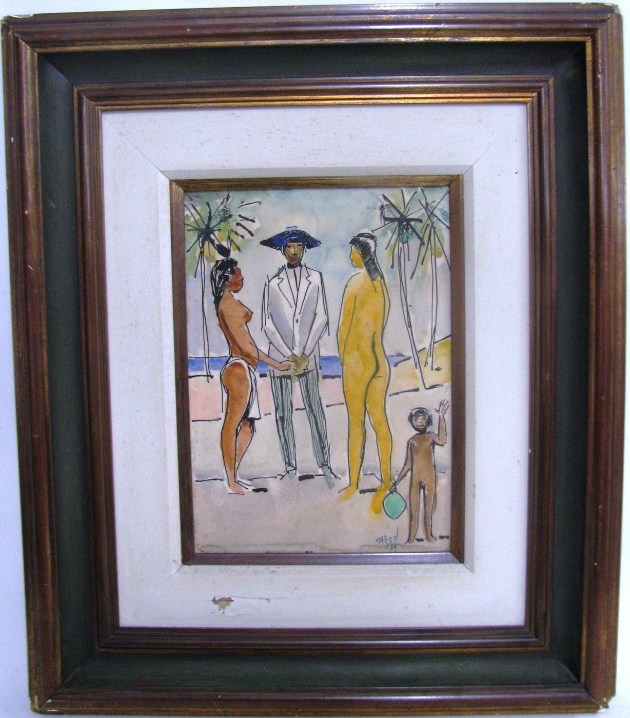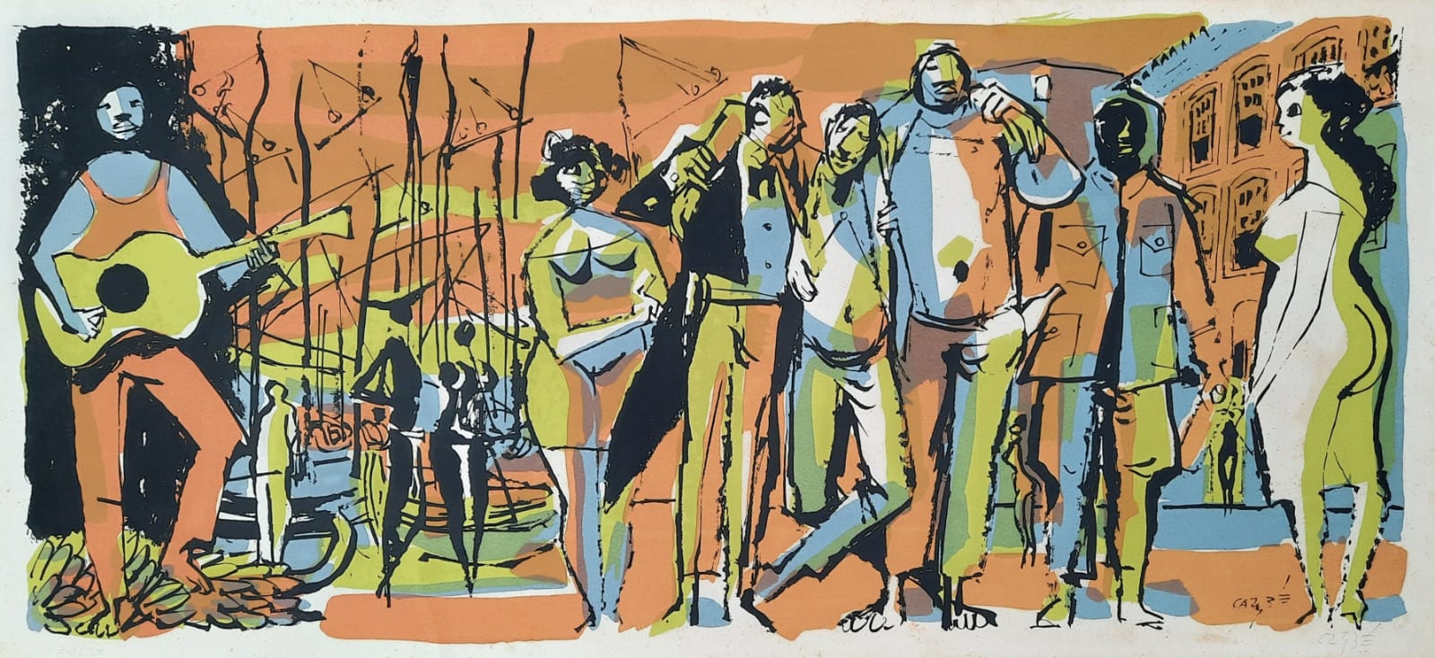Carybé - Figuras - Prova do impressor. Serigrafia, 61x44 cm, sem data, A.C.I.D. a lápis. Com moldura