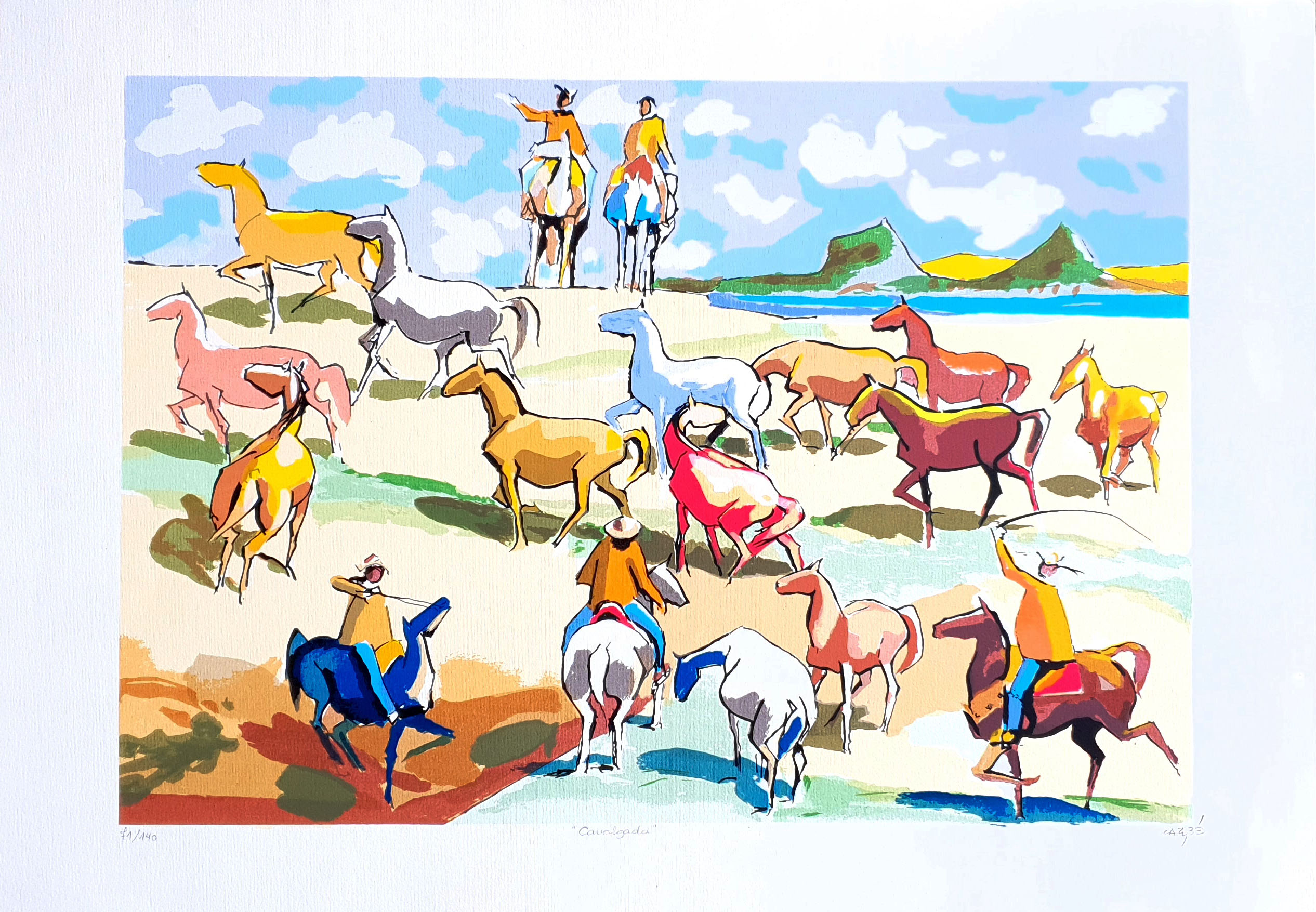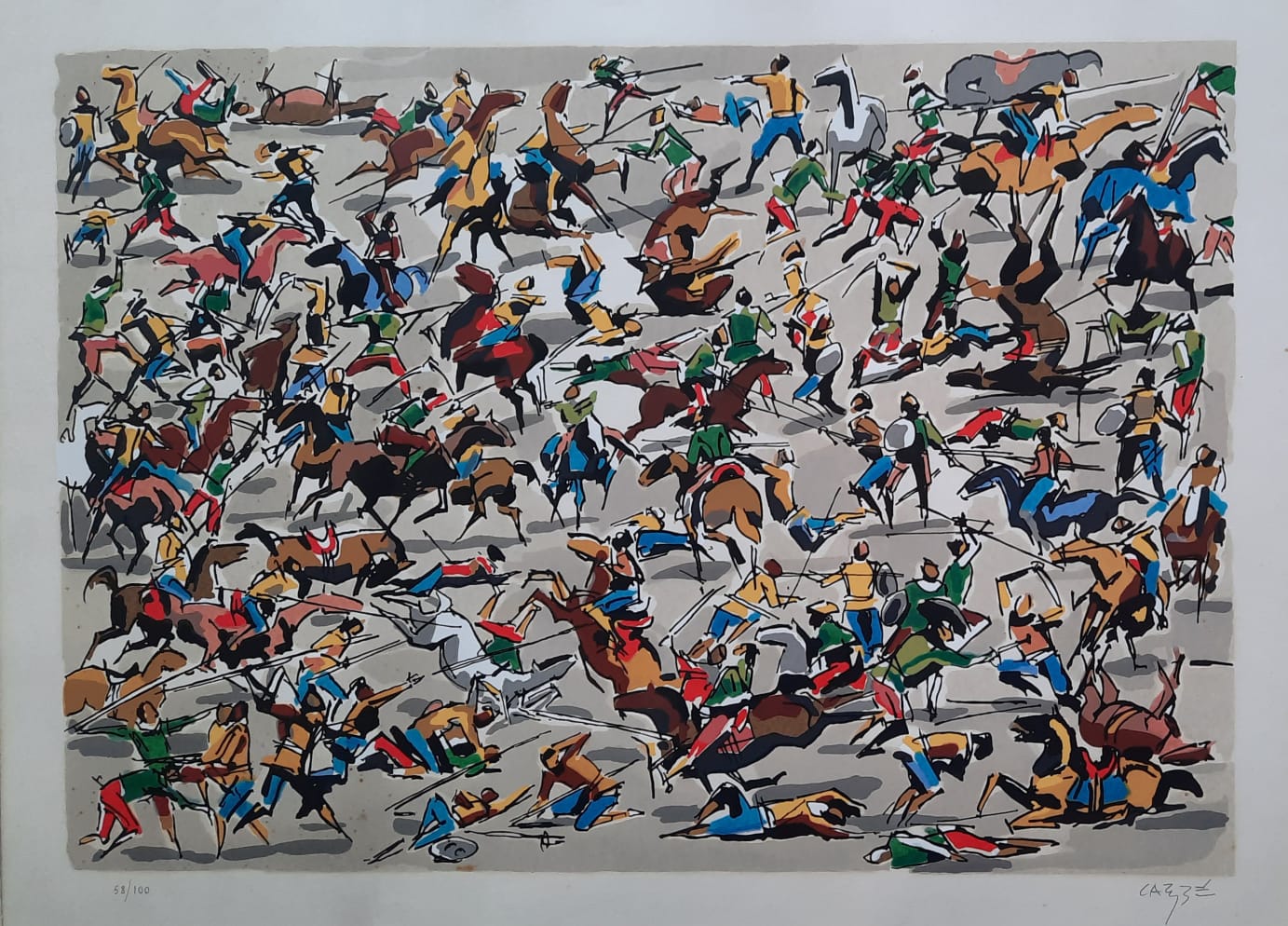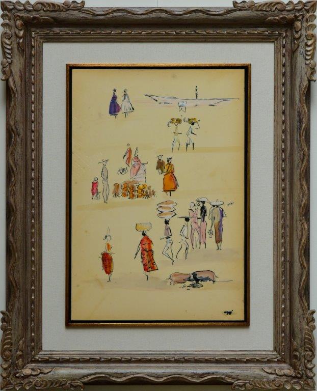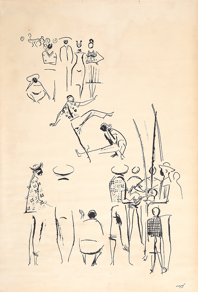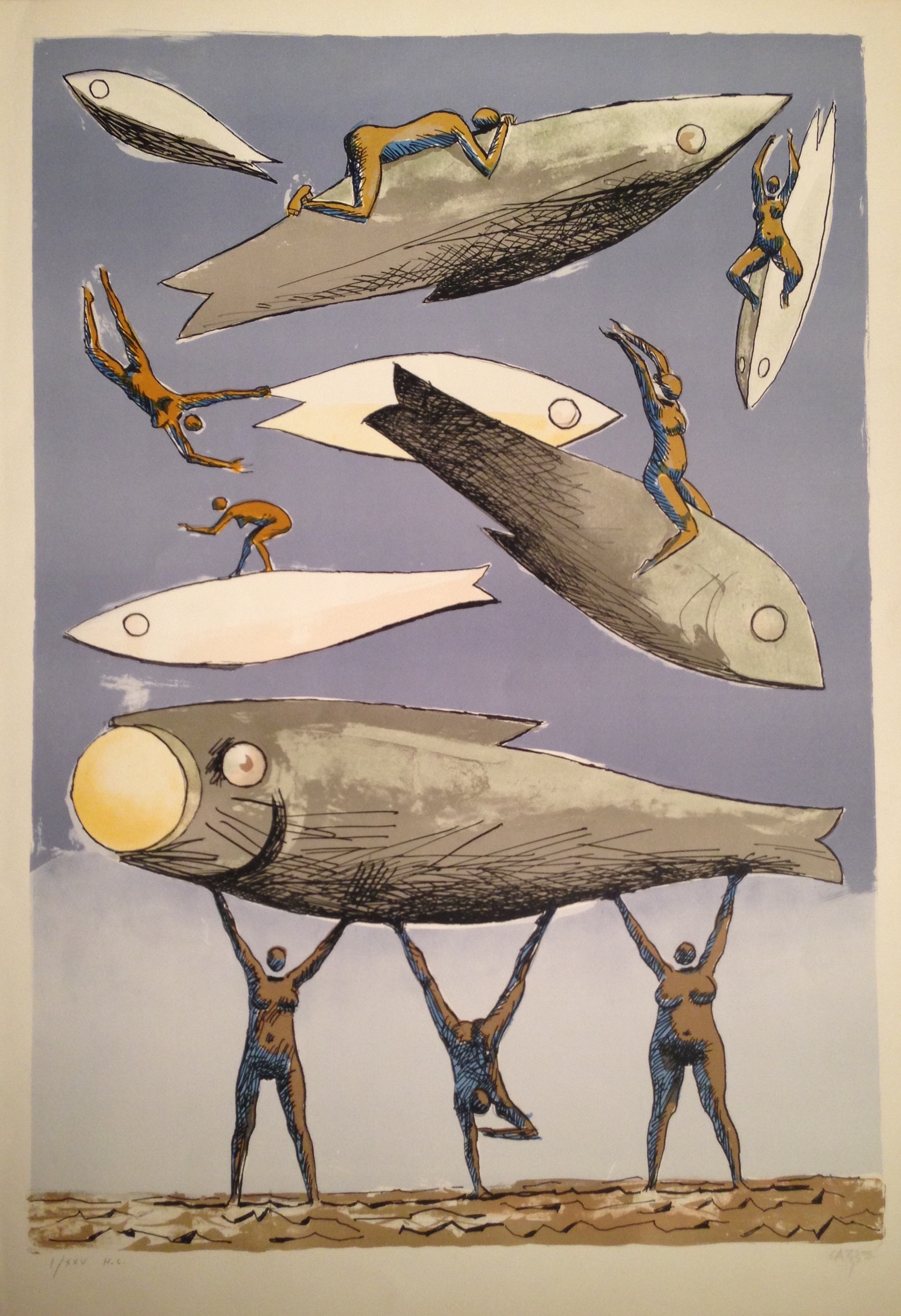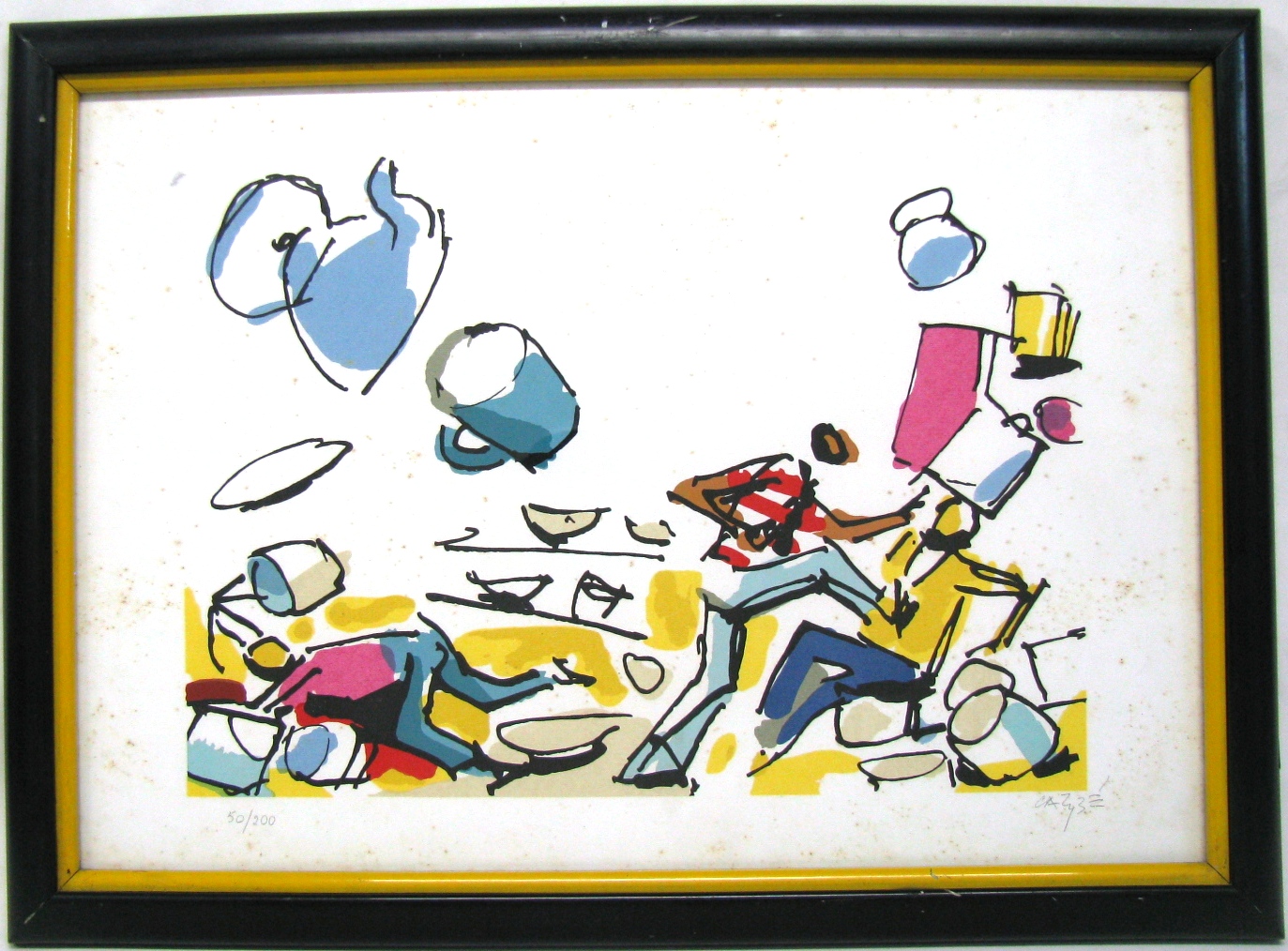 Carybé - Figuras - Prova do impressor. Serigrafia, 61x44 cm, sem data, A.C.I.D. a lápis. Com moldura
