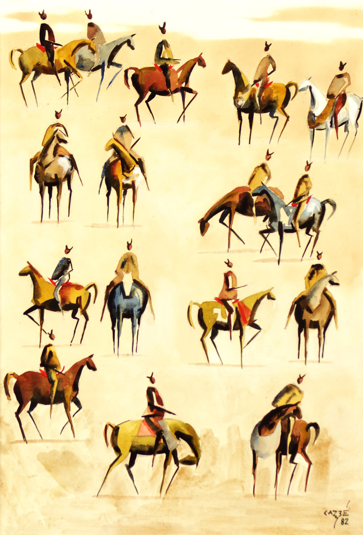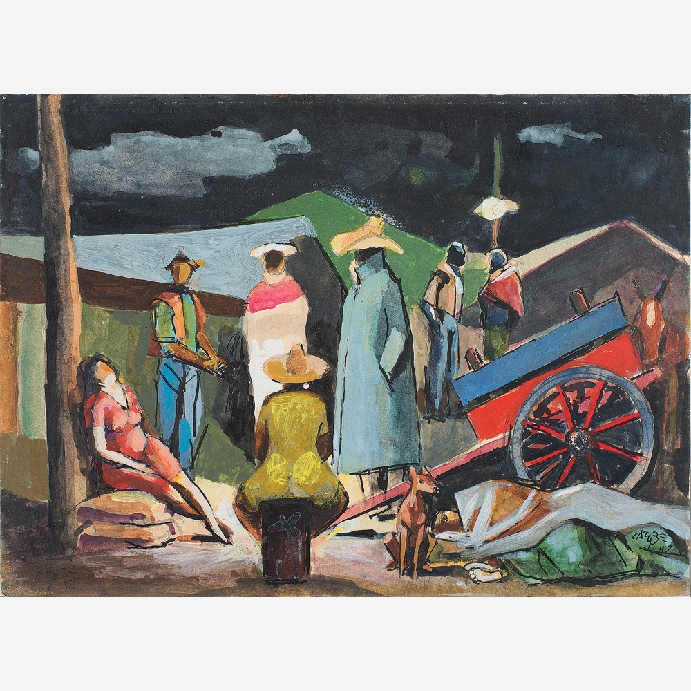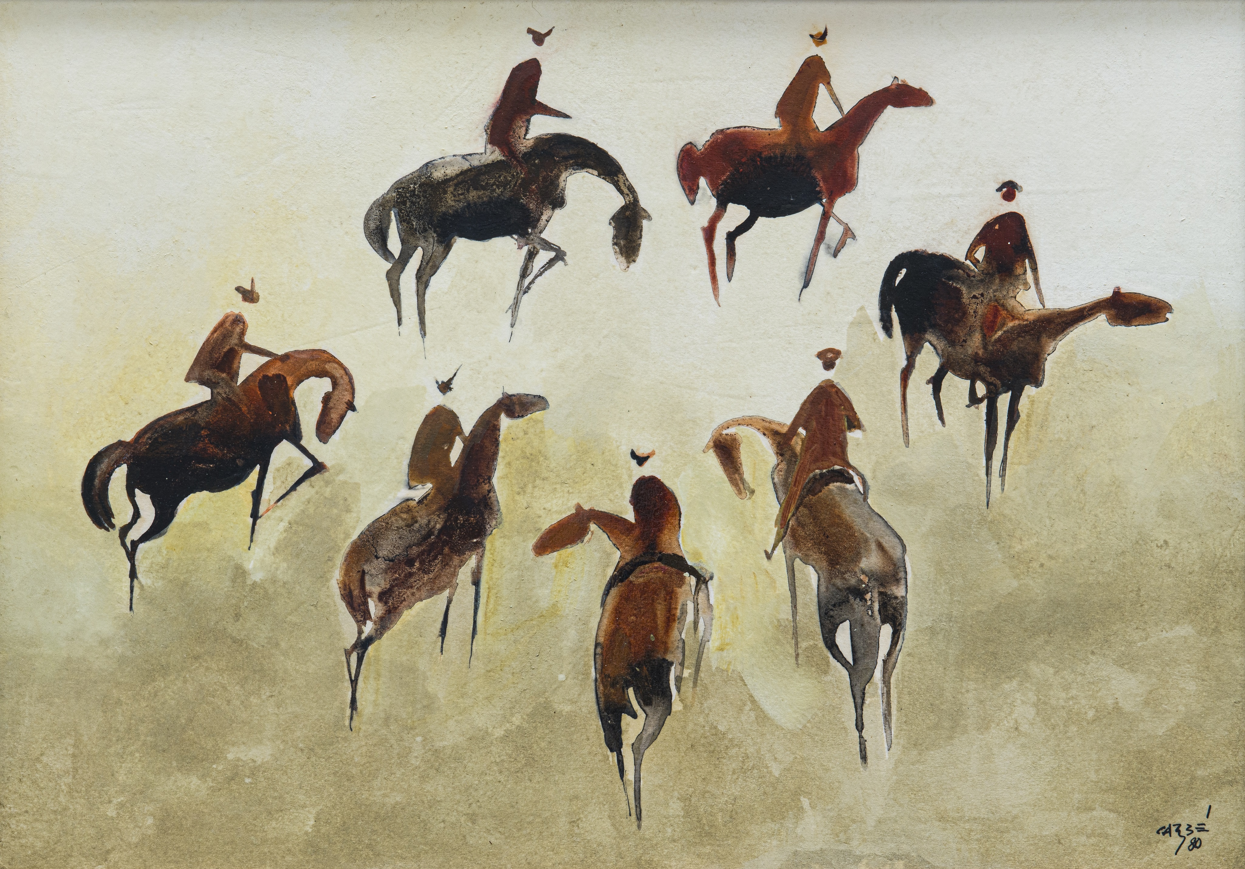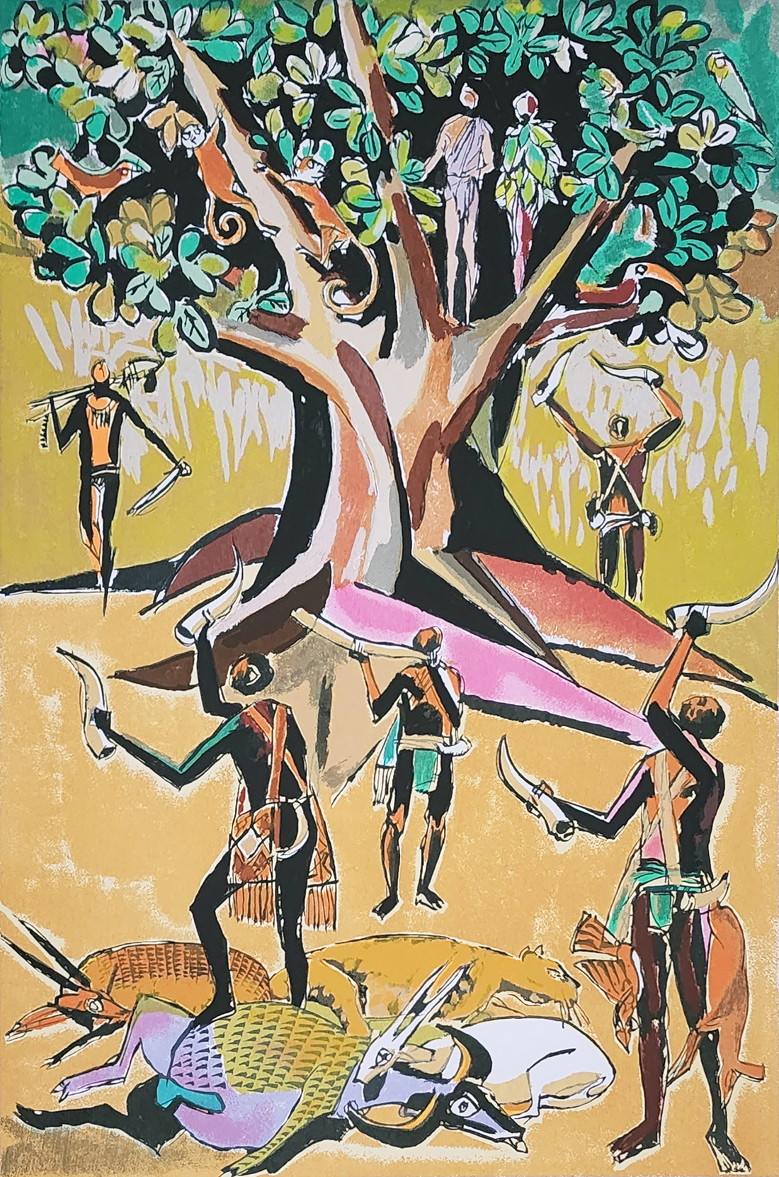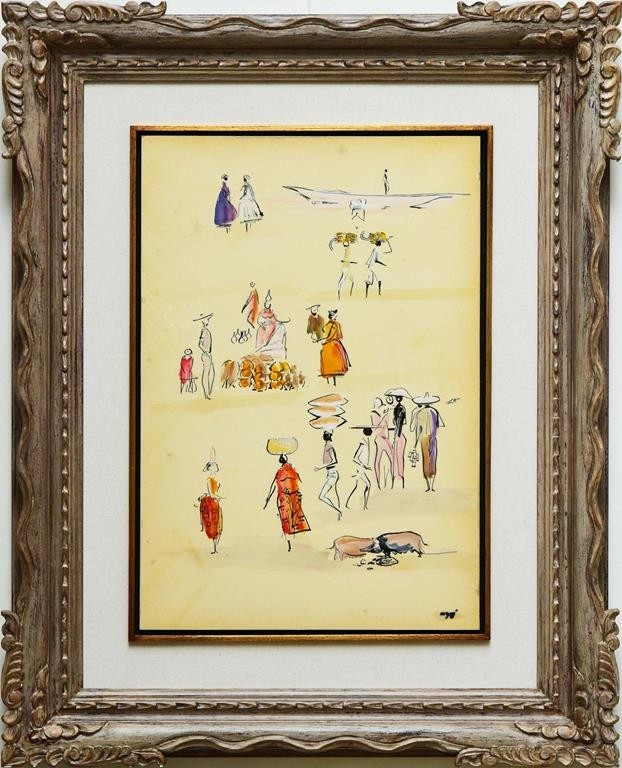Carybé - Figuras - Prova do impressor. Serigrafia, 61x44 cm, sem data, A.C.I.D. a lápis. Com moldura