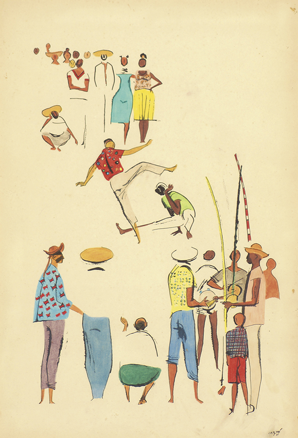 De volta à Argentina, traduz com Raul Brié, para o espanhol, o livro Macunaíma, de Mário de Andrade (1893 - 1945), em 1943. Nesse mesmo ano, realiza sua primeira individual na Galeria Nordiska Kompainiet, em Buenos Aires. Em 1944, vai a Salvador, e se interessa pela religiosidade e cultura locais. No Rio de Janeiro, auxilia na montagem do jornal Diário Carioca, em 1946. É chamado pelo jornalista Carlos Lacerda (1914 - 1977) para trabalhar no jornal Tribuna da Imprensa, entre 1949 e 1950. Em 1950, muda-se para Salvador para realizar painéis para o Centro Educacional Carneiro Ribeiro, com recomendação feita pelo escritor Rubem Braga (1913 - 1990) ao secretário da Educação do Estado da Bahia, Anísio Teixeira (1900 - 1971).