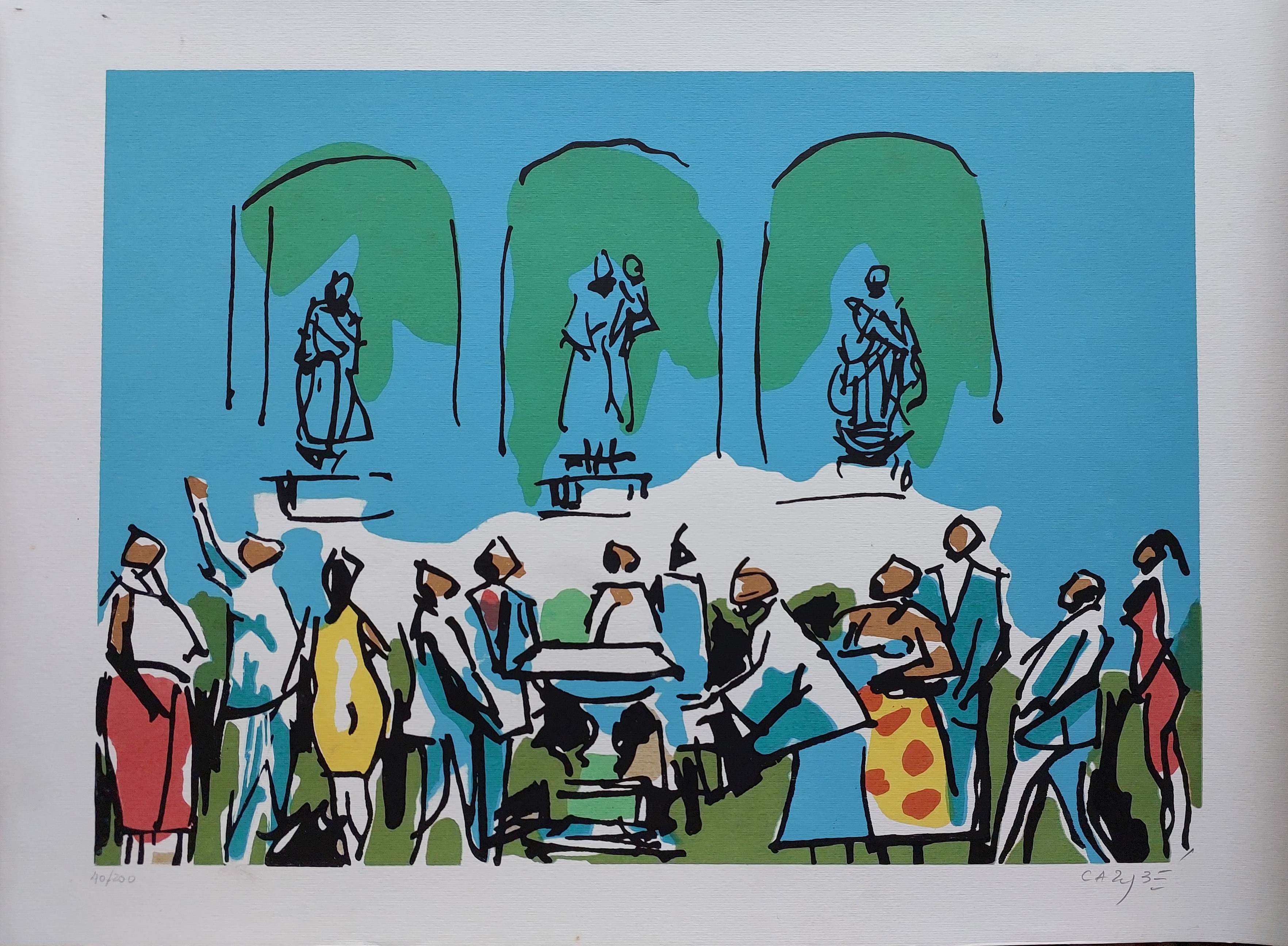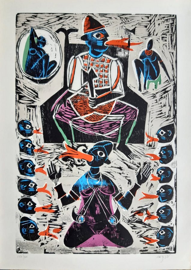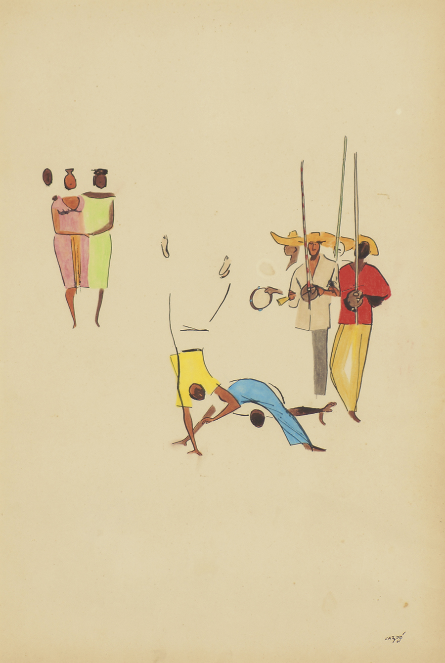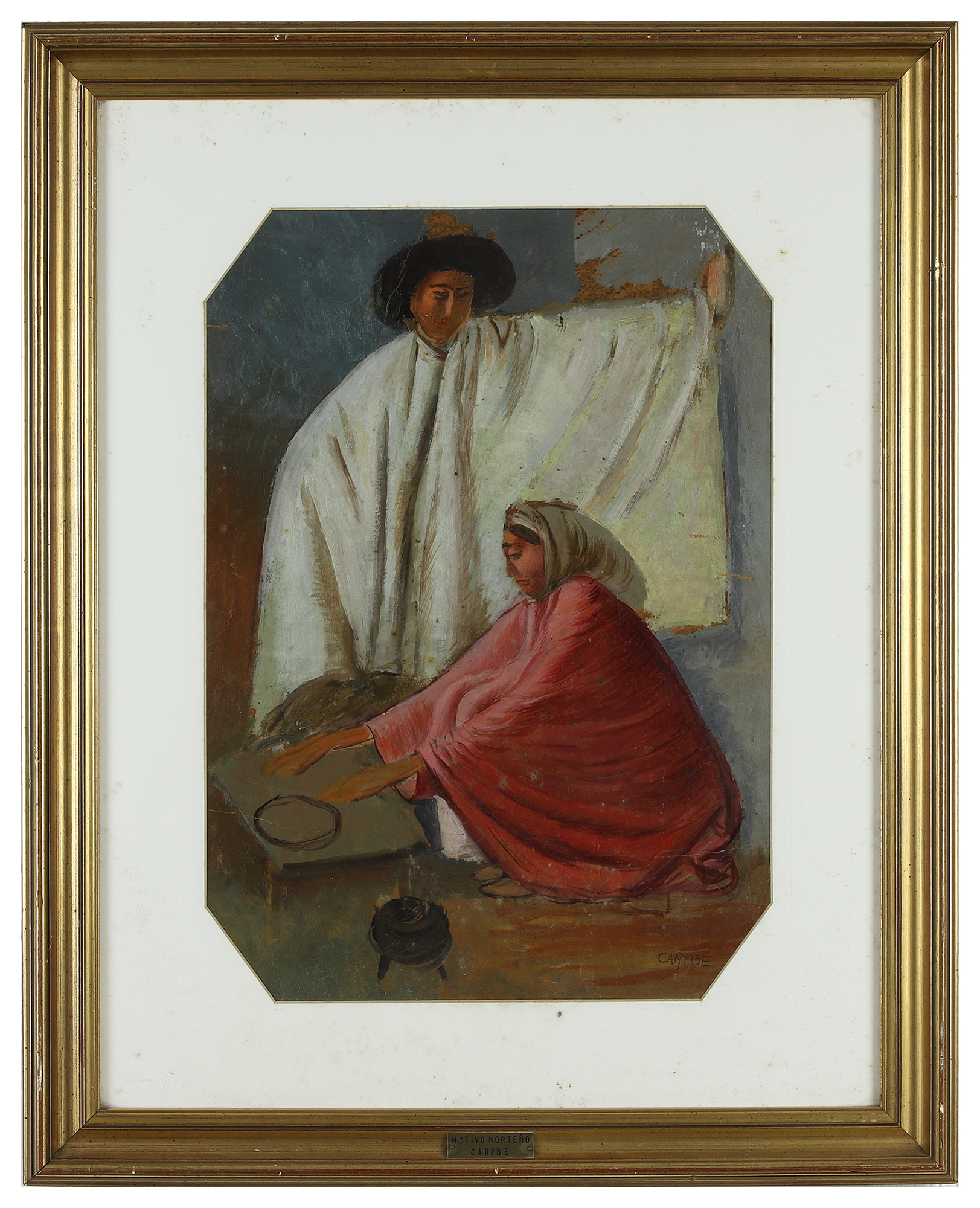 Carybé - Figuras - Prova do impressor. Serigrafia, 61x44 cm, sem data, A.C.I.D. a lápis. Com moldura