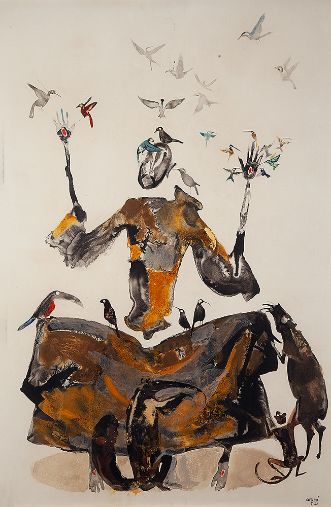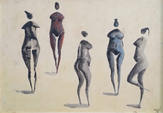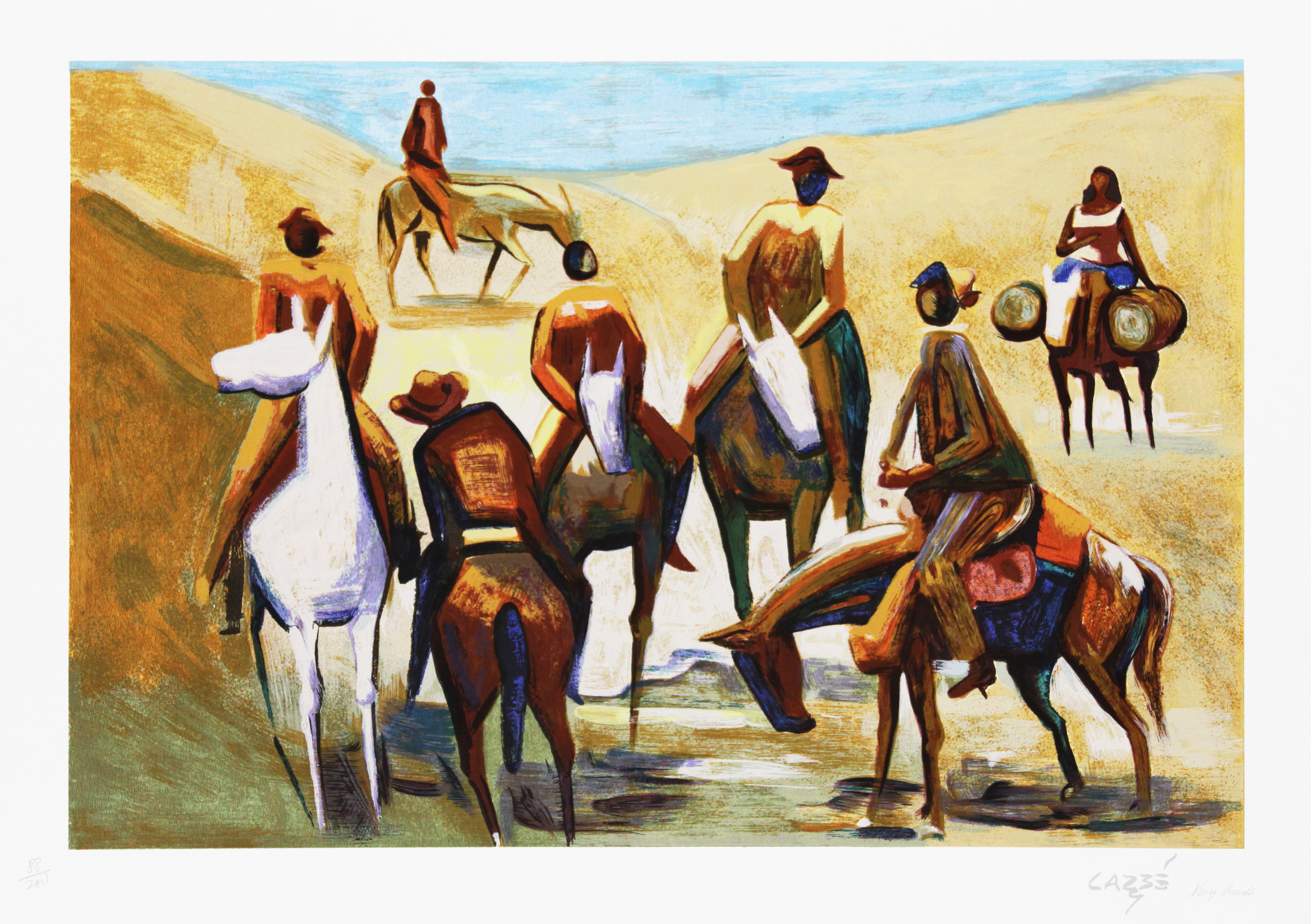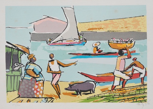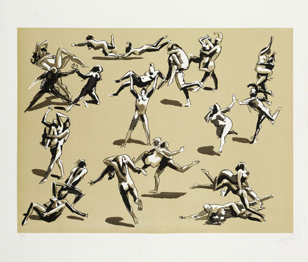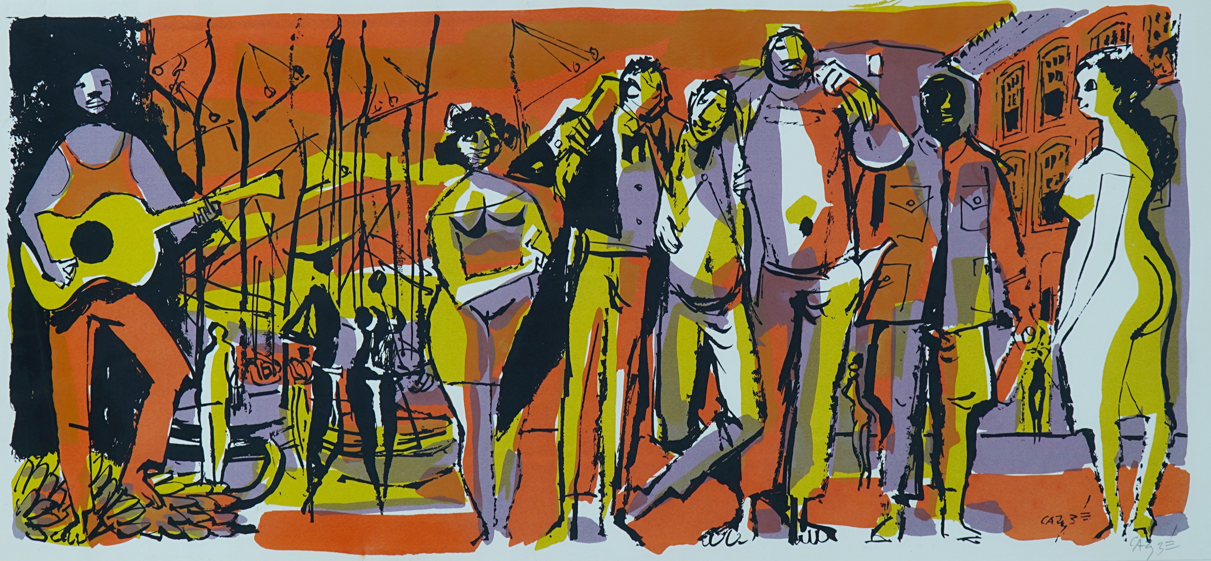 Carybé - Figuras - Prova do impressor. Serigrafia, 61x44 cm, sem data, A.C.I.D. a lápis. Com moldura
