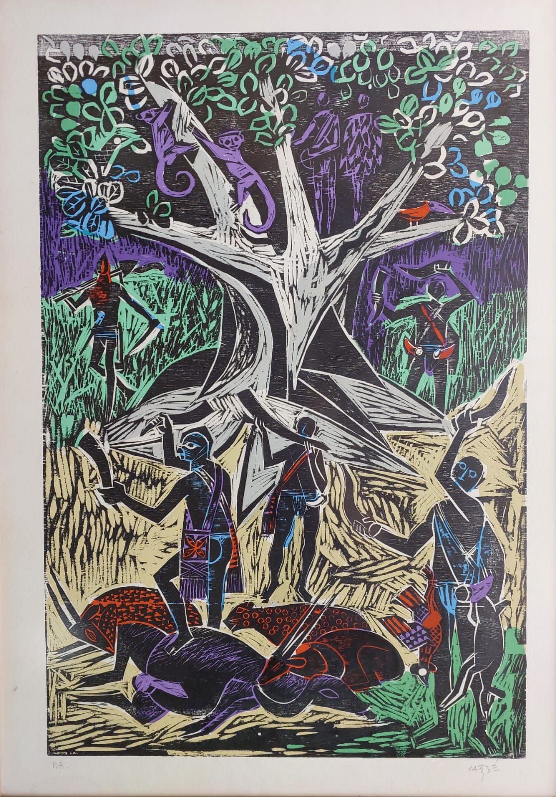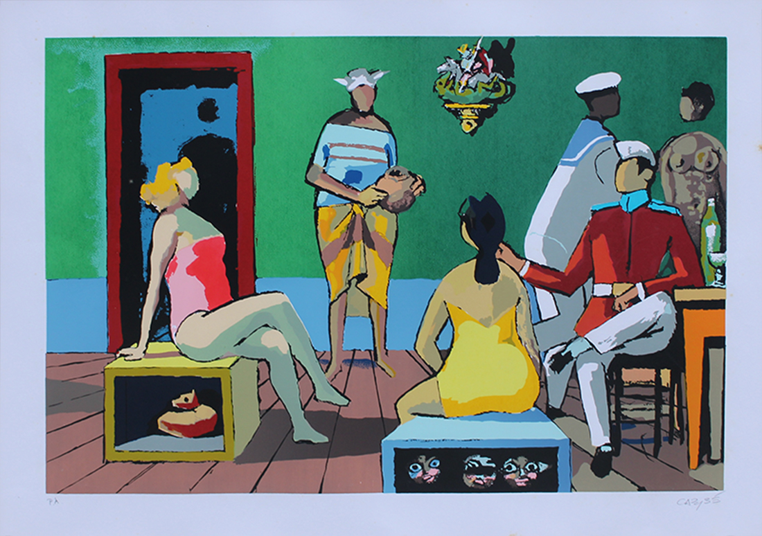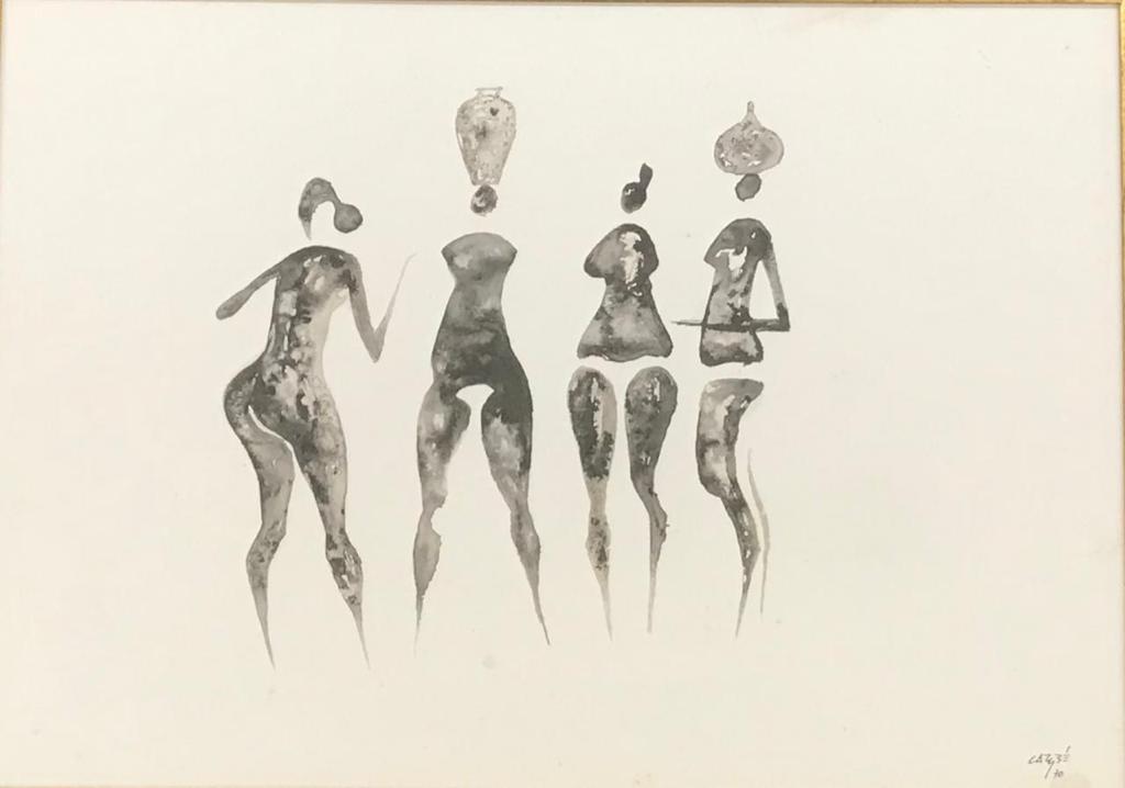Carybé - Figuras - Prova do impressor. Serigrafia, 61x44 cm, sem data, A.C.I.D. a lápis. Com moldura