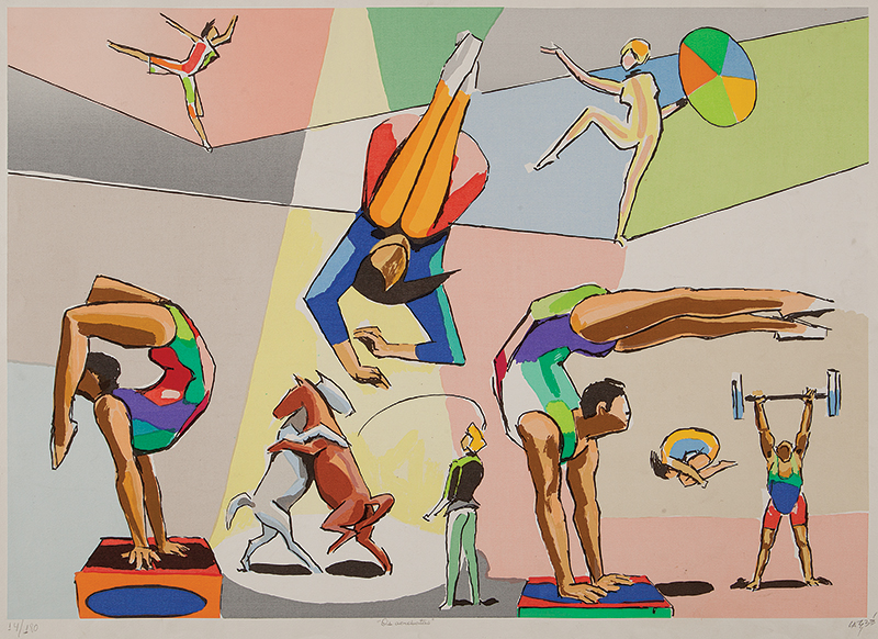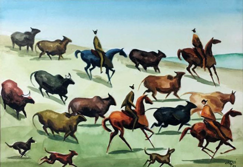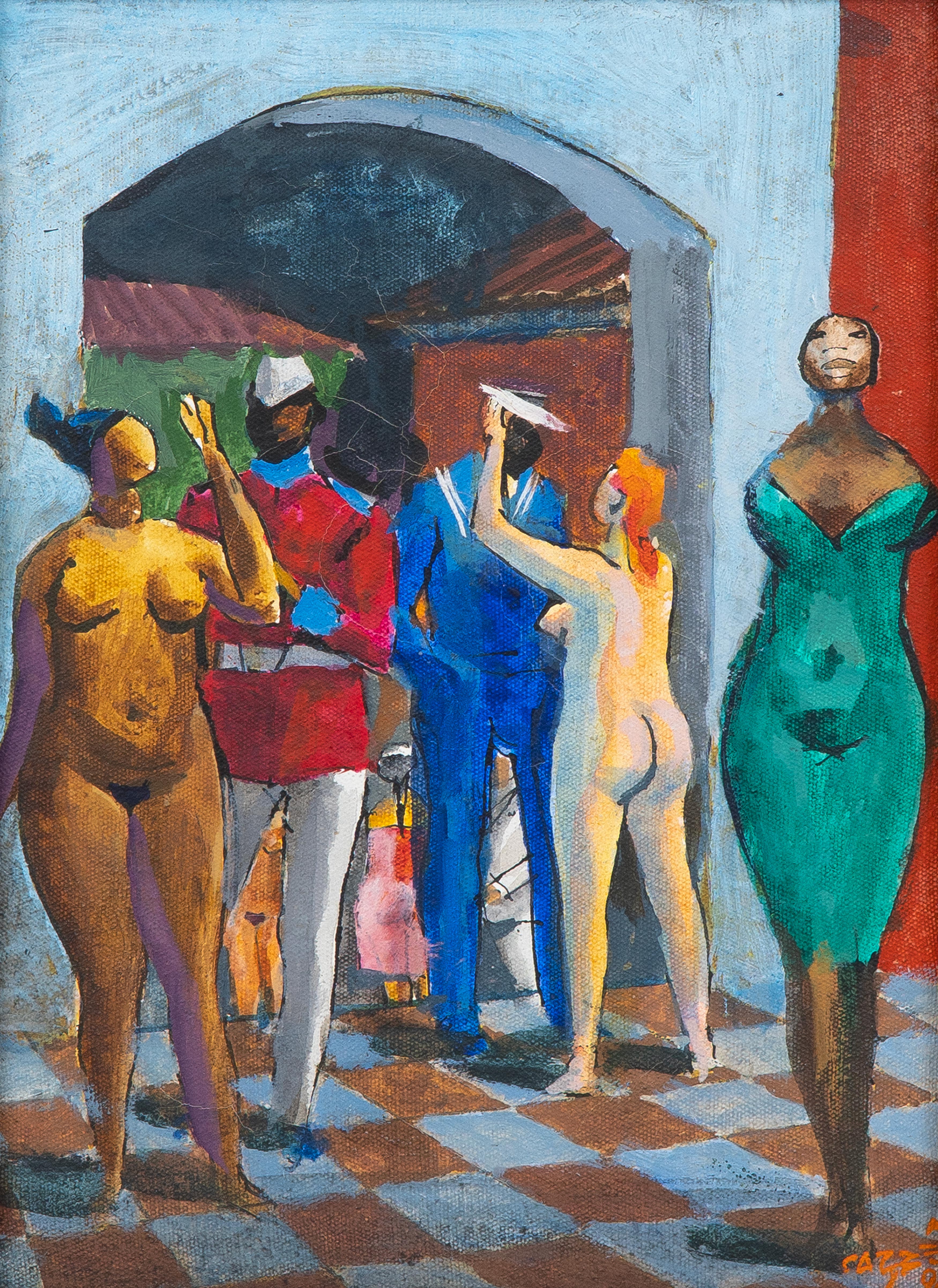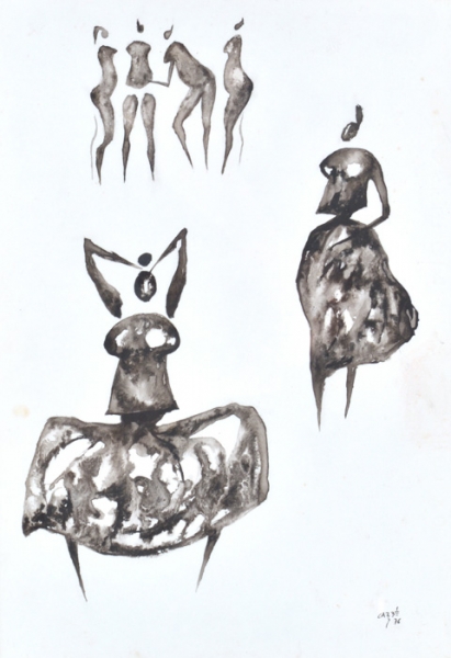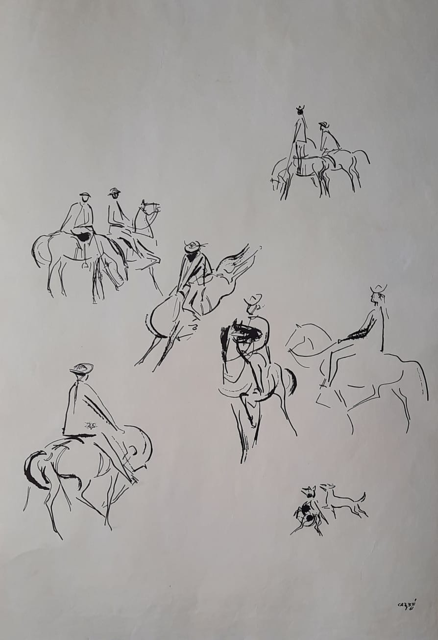Carybé - Figuras - Prova do impressor. Serigrafia, 61x44 cm, sem data, A.C.I.D. a lápis. Com moldura