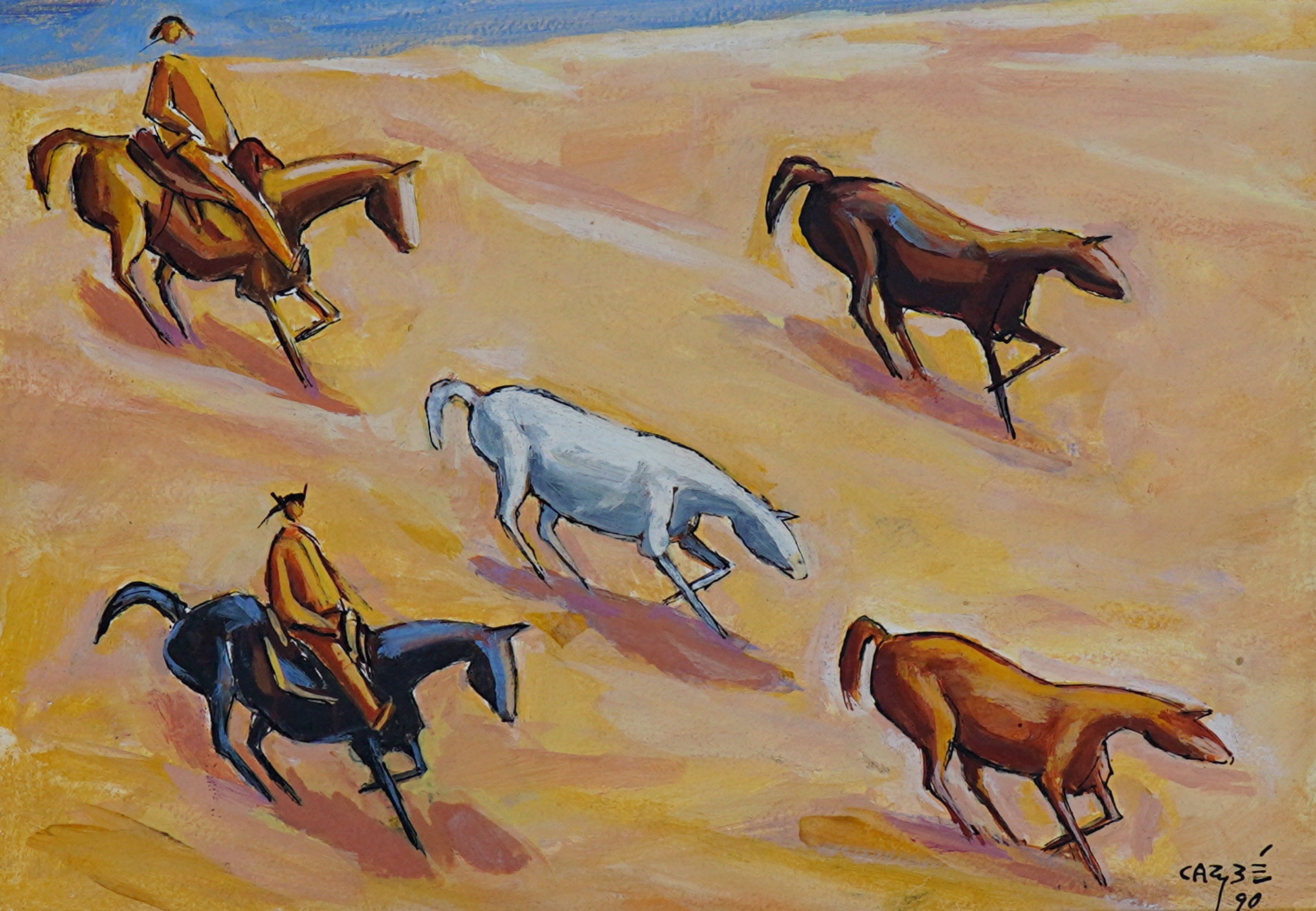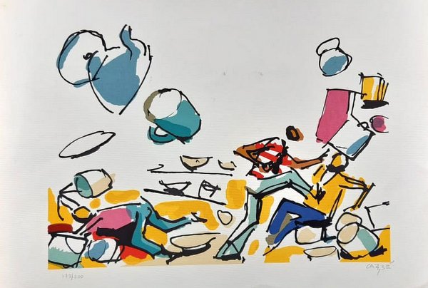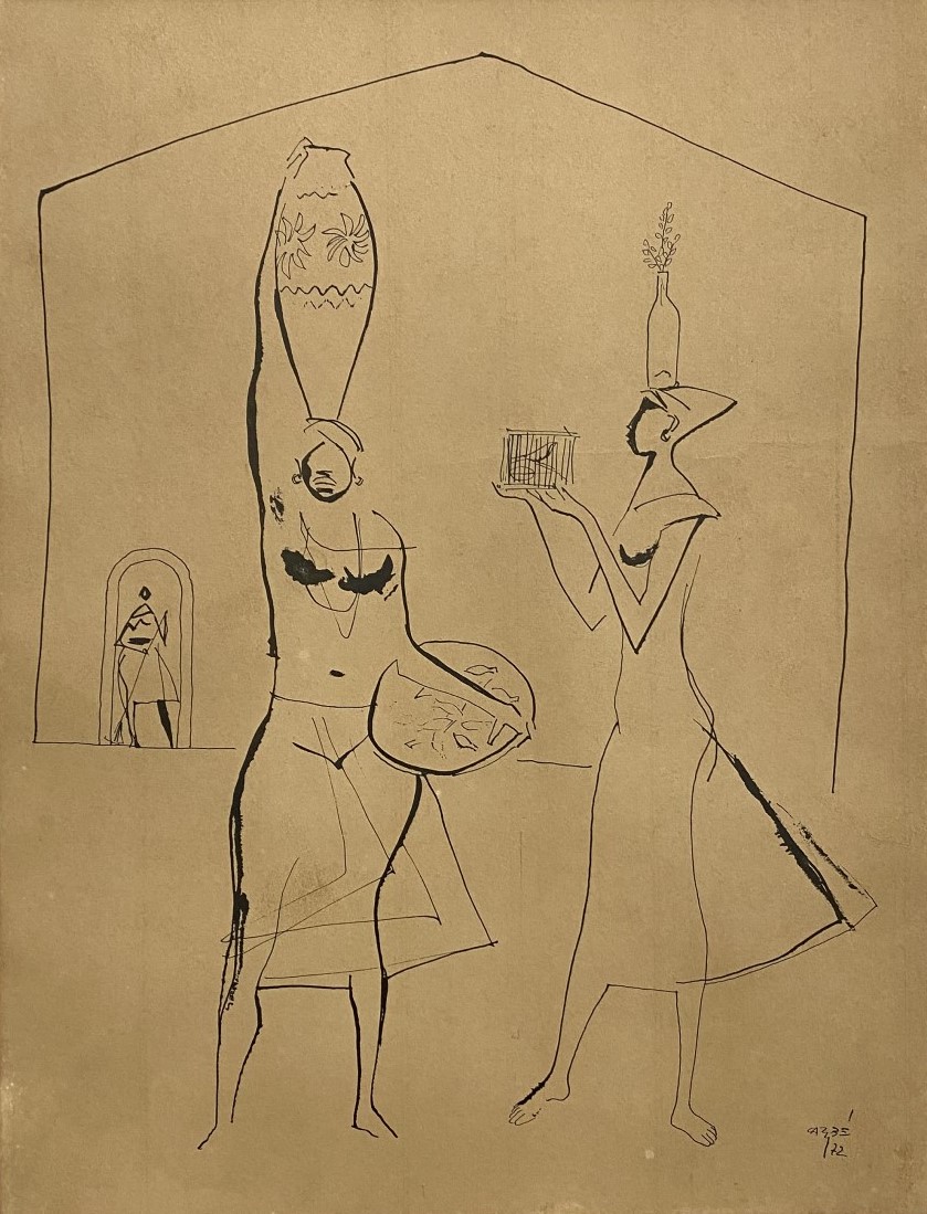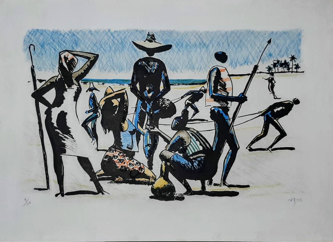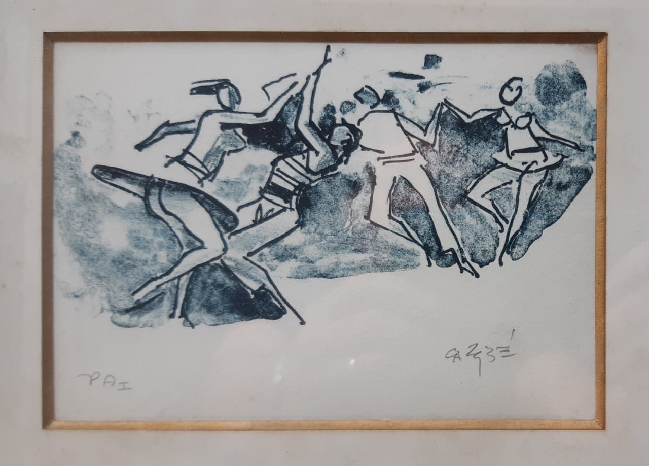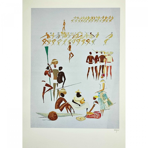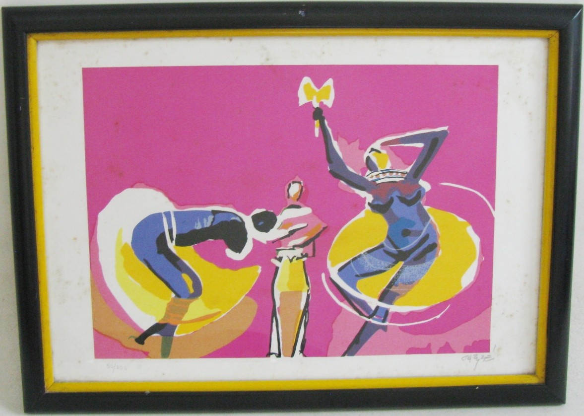 Carybé - Figuras - Prova do impressor. Serigrafia, 61x44 cm, sem data, A.C.I.D. a lápis. Com moldura