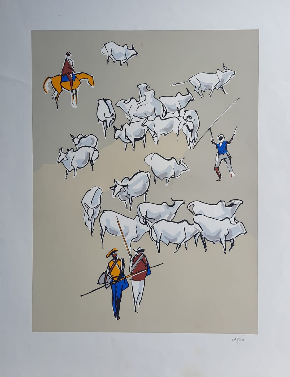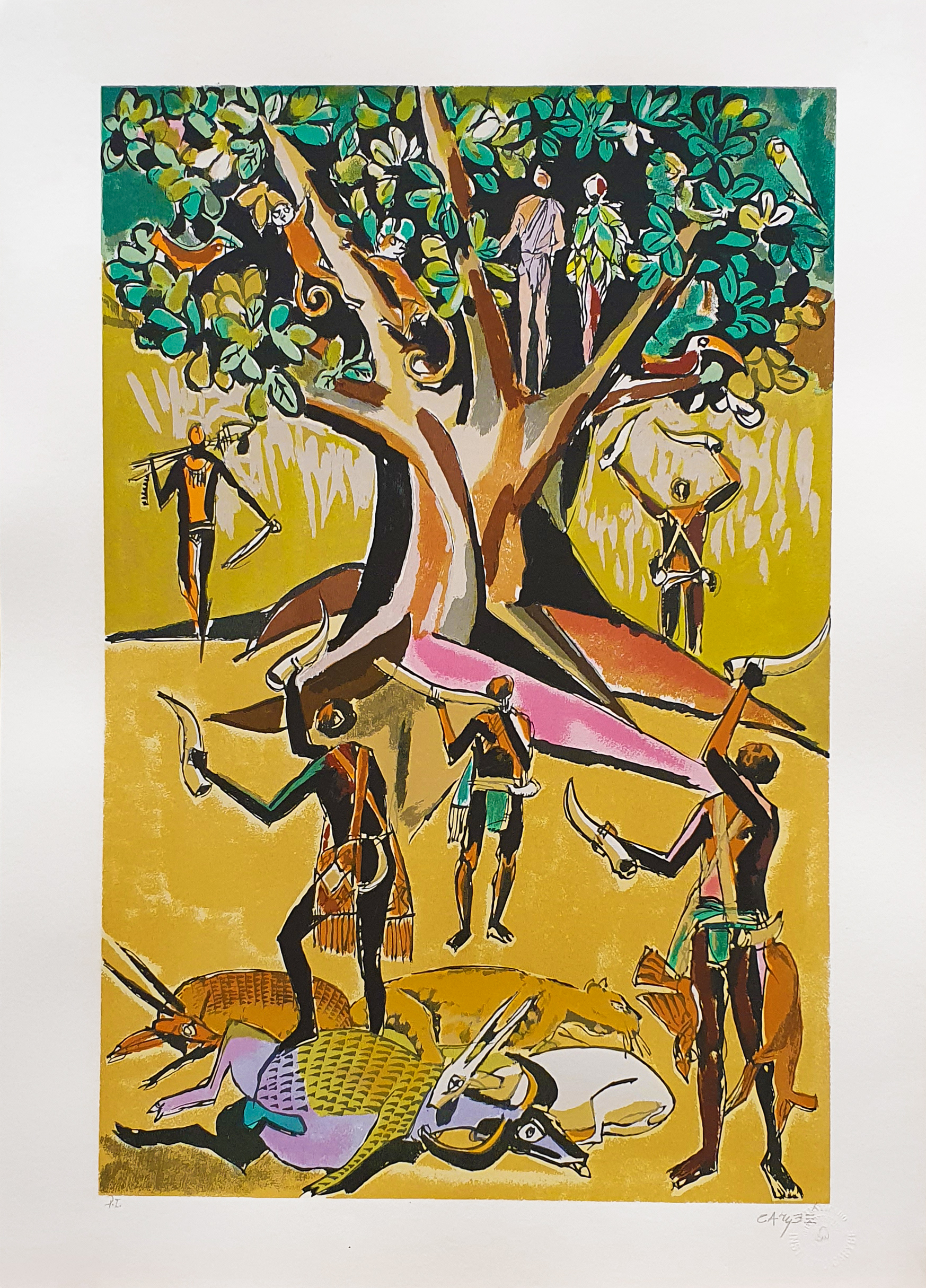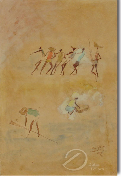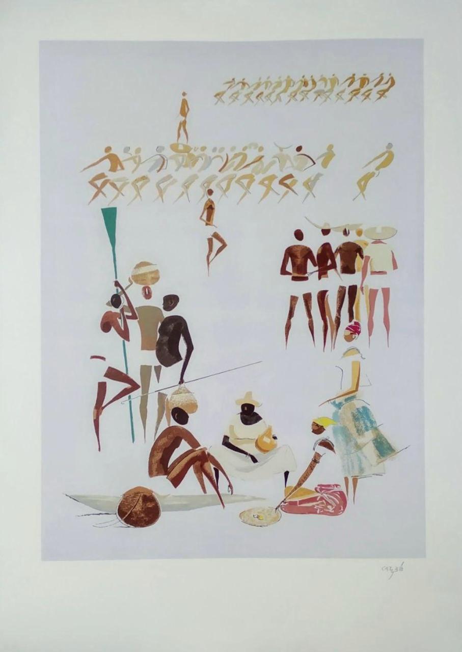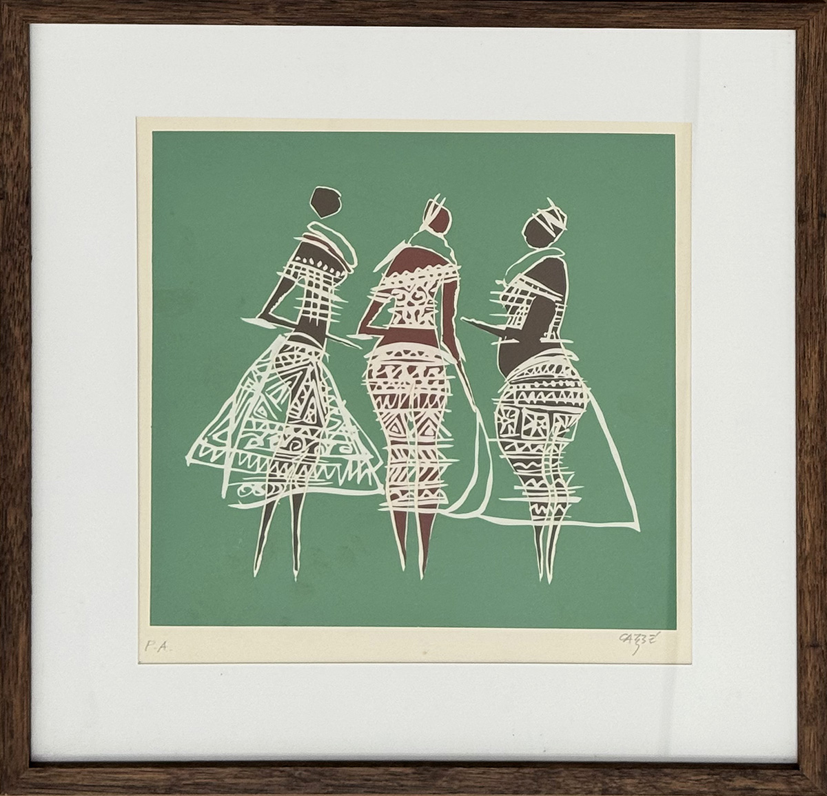 Carybé - Figuras - Prova do impressor. Serigrafia, 61x44 cm, sem data, A.C.I.D. a lápis. Com moldura