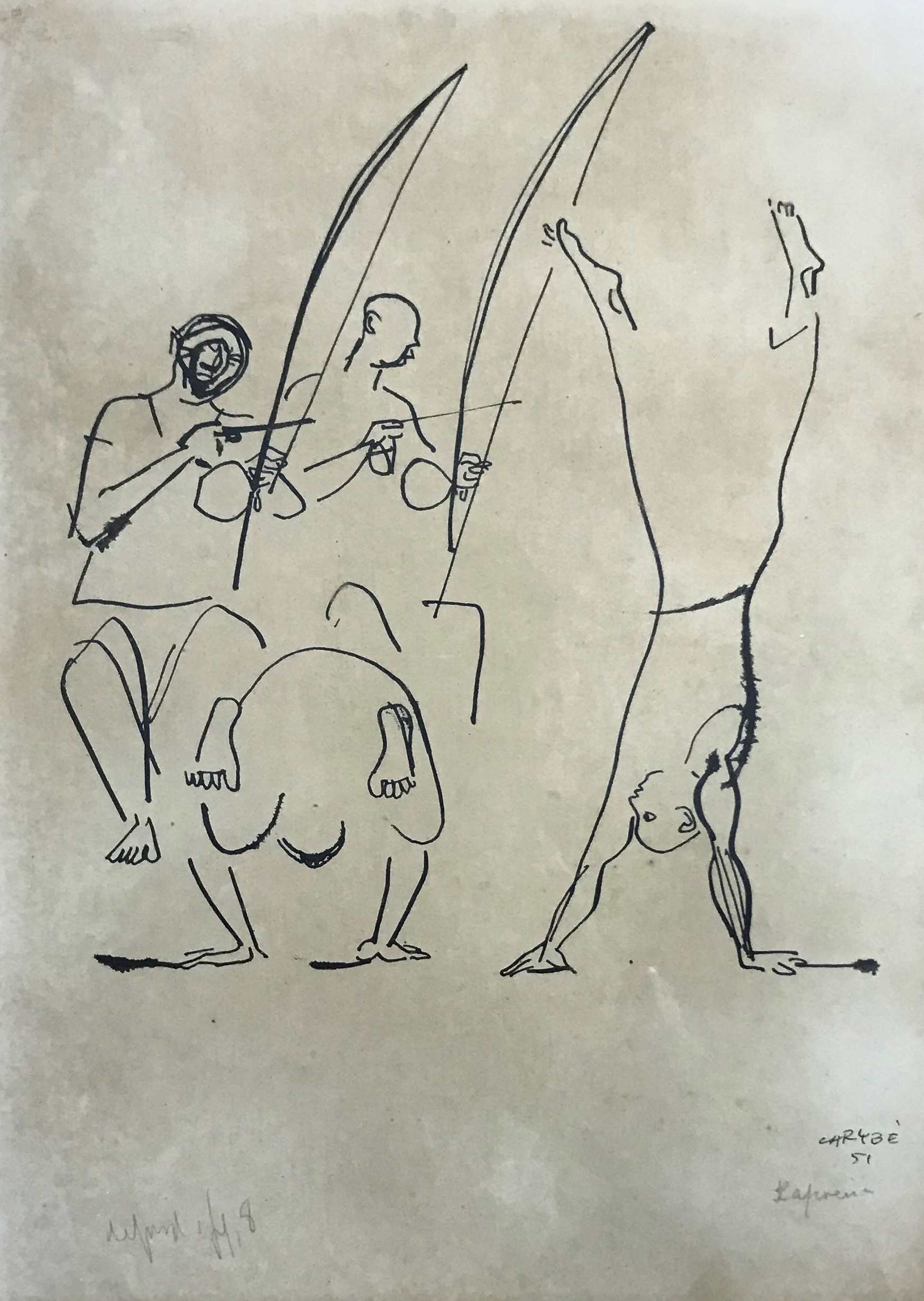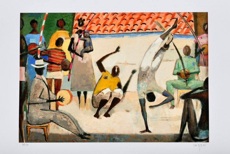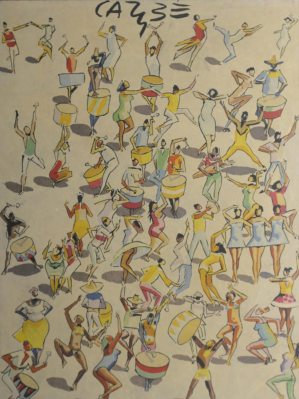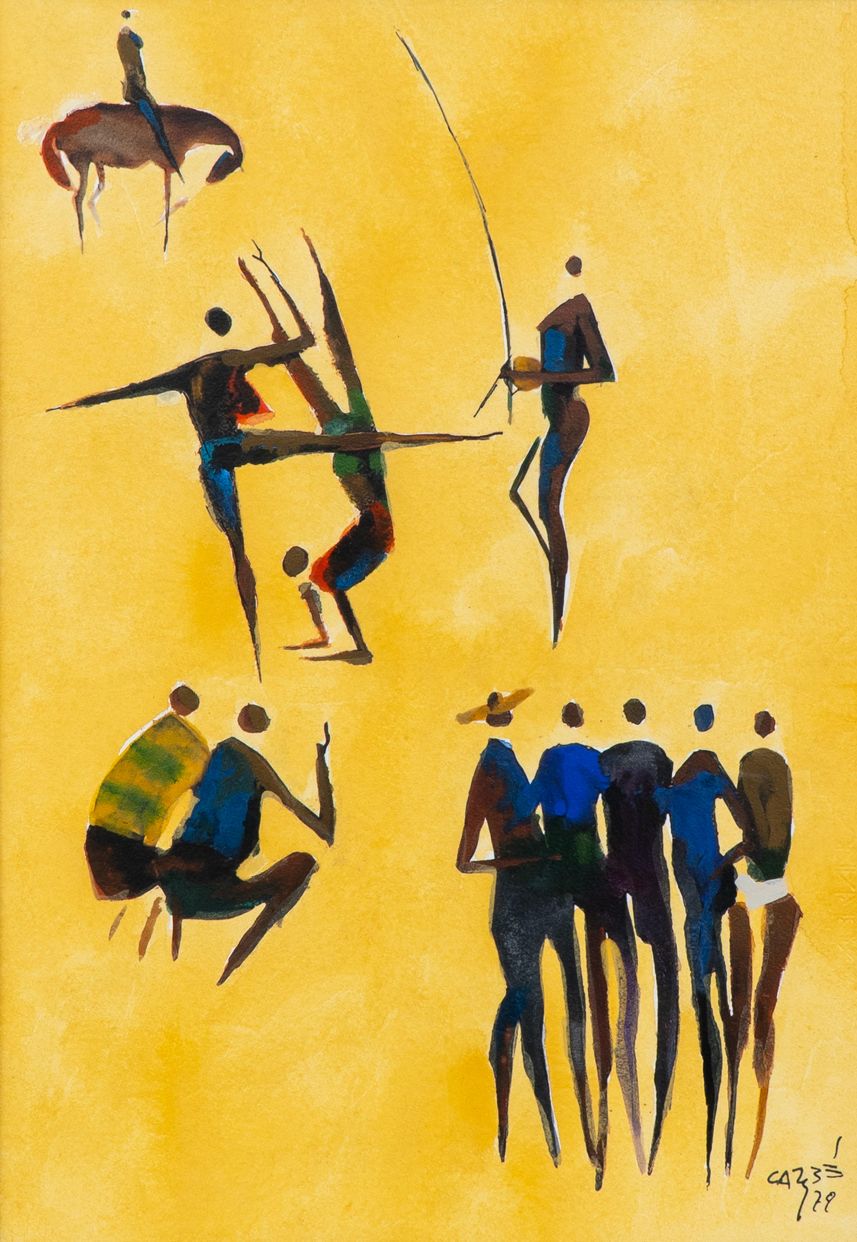 Carybé - Figuras - Prova do impressor. Serigrafia, 61x44 cm, sem data, A.C.I.D. a lápis. Com moldura