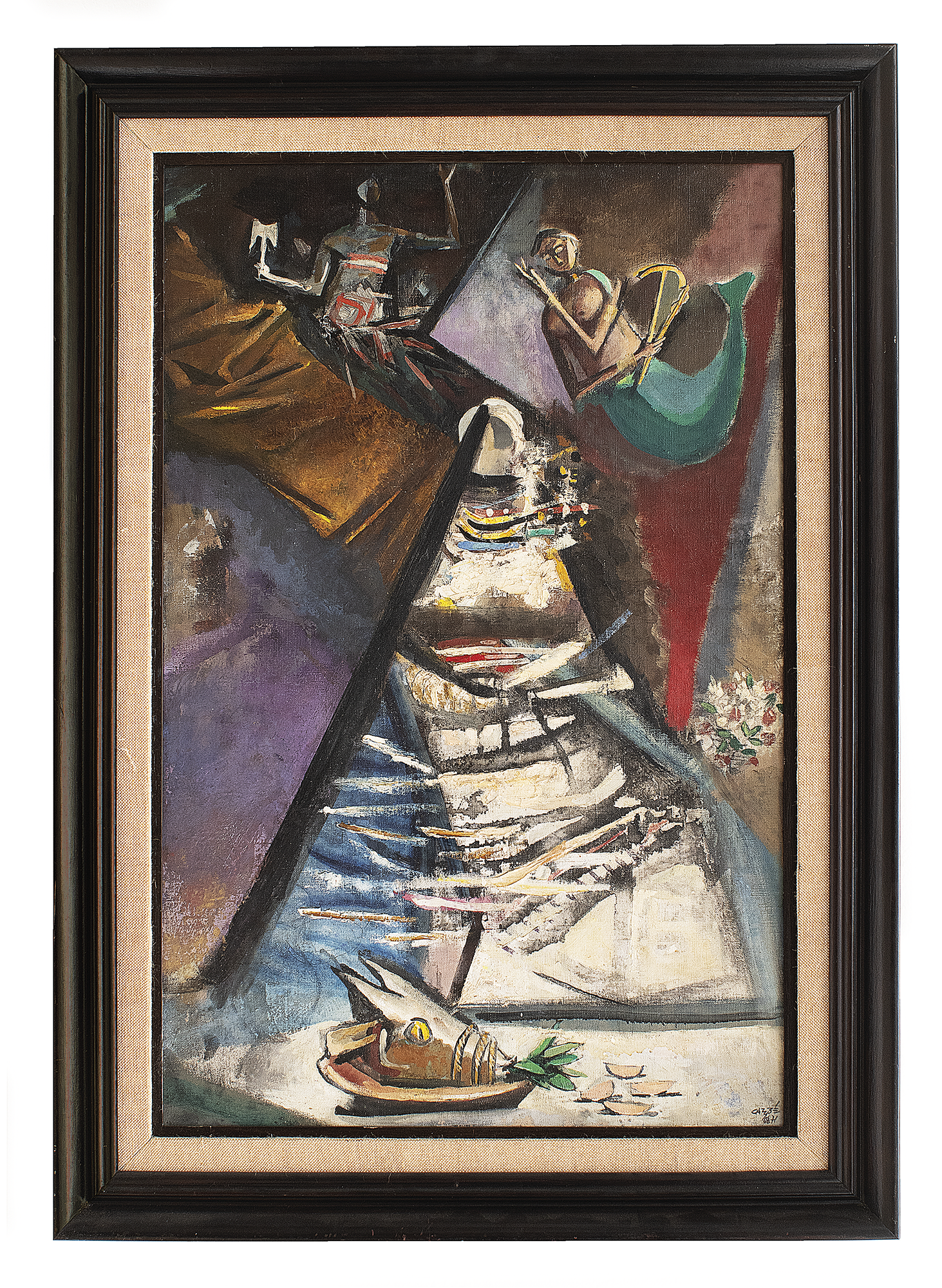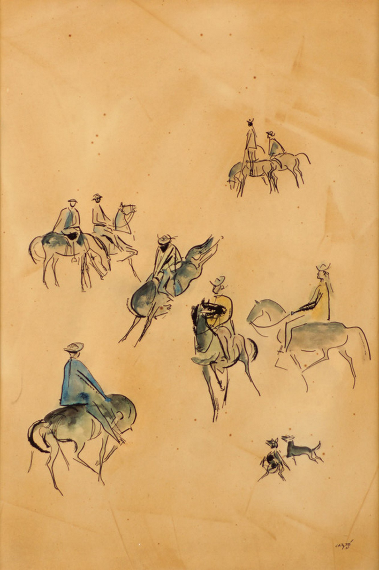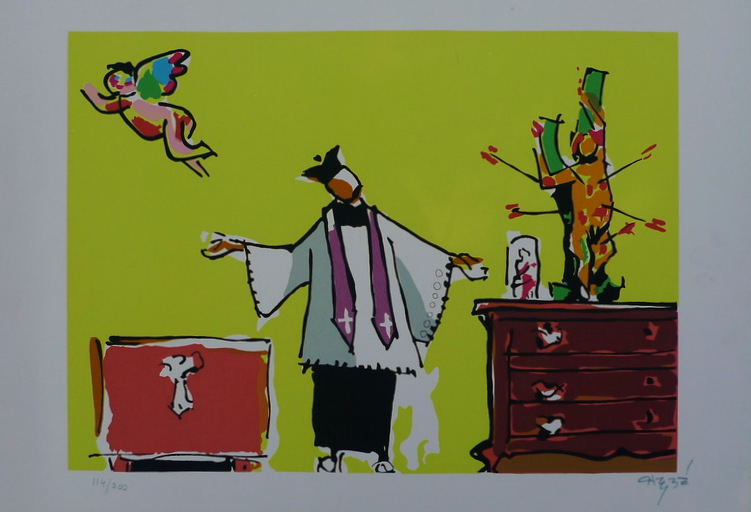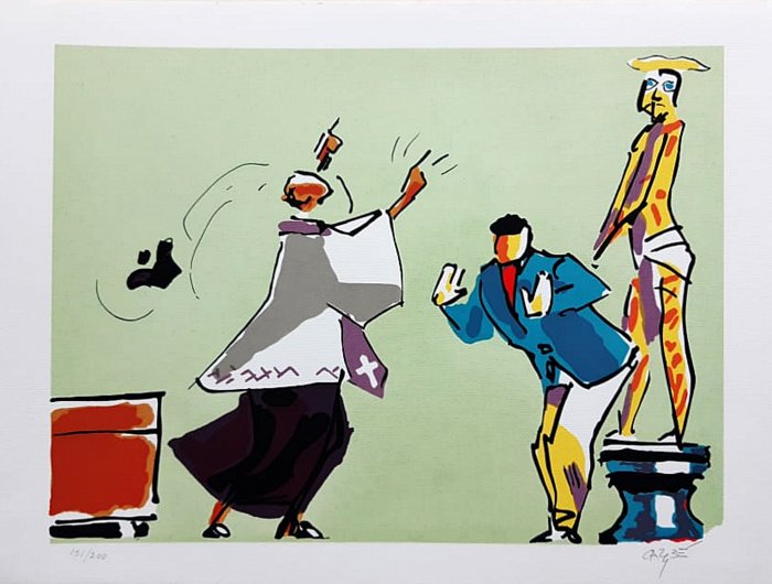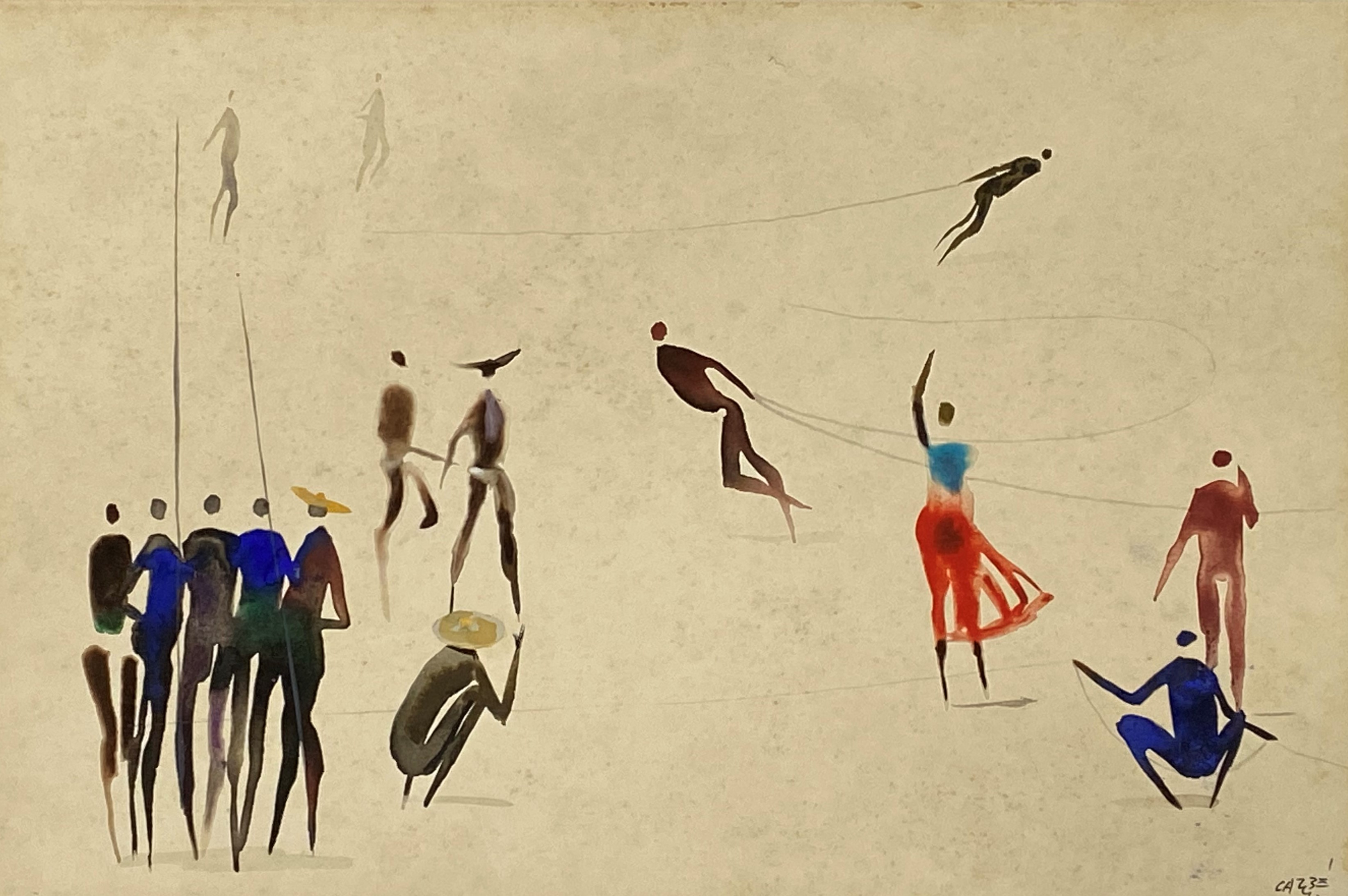Carybé - Figuras - Prova do impressor. Serigrafia, 61x44 cm, sem data, A.C.I.D. a lápis. Com moldura