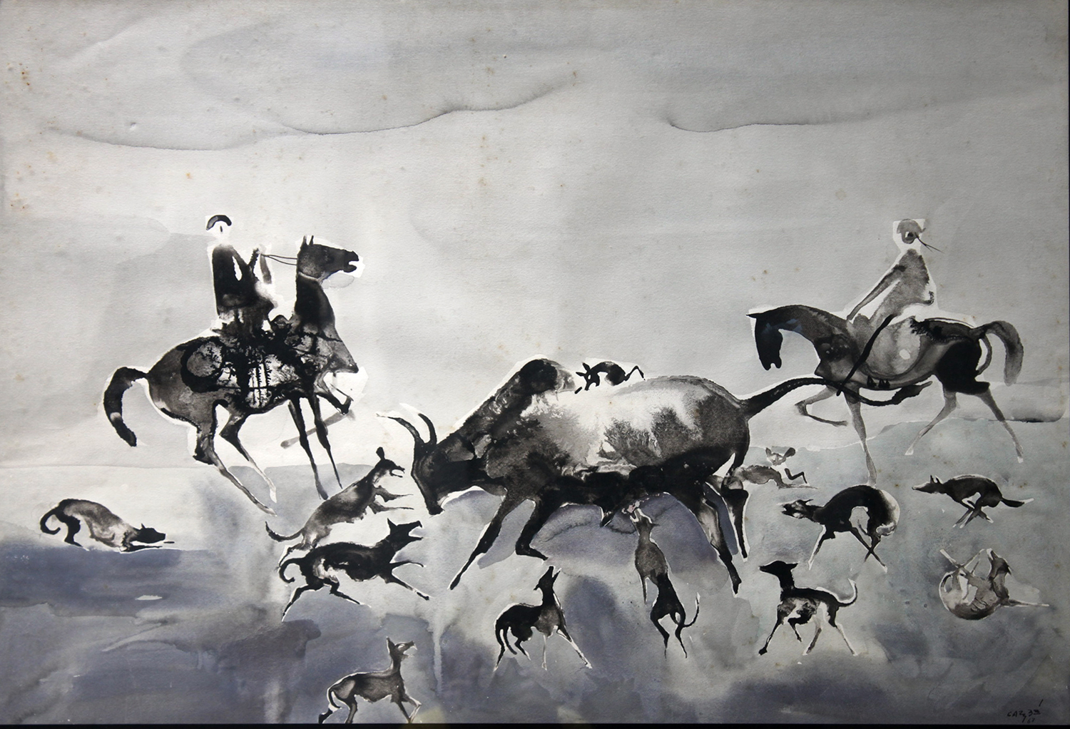 Héctor Carybé - Cavaleiro - Giz de cera s/ papel - 46  alt x 31 larg - acid -  obra apresenta detalhes