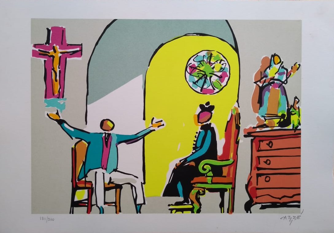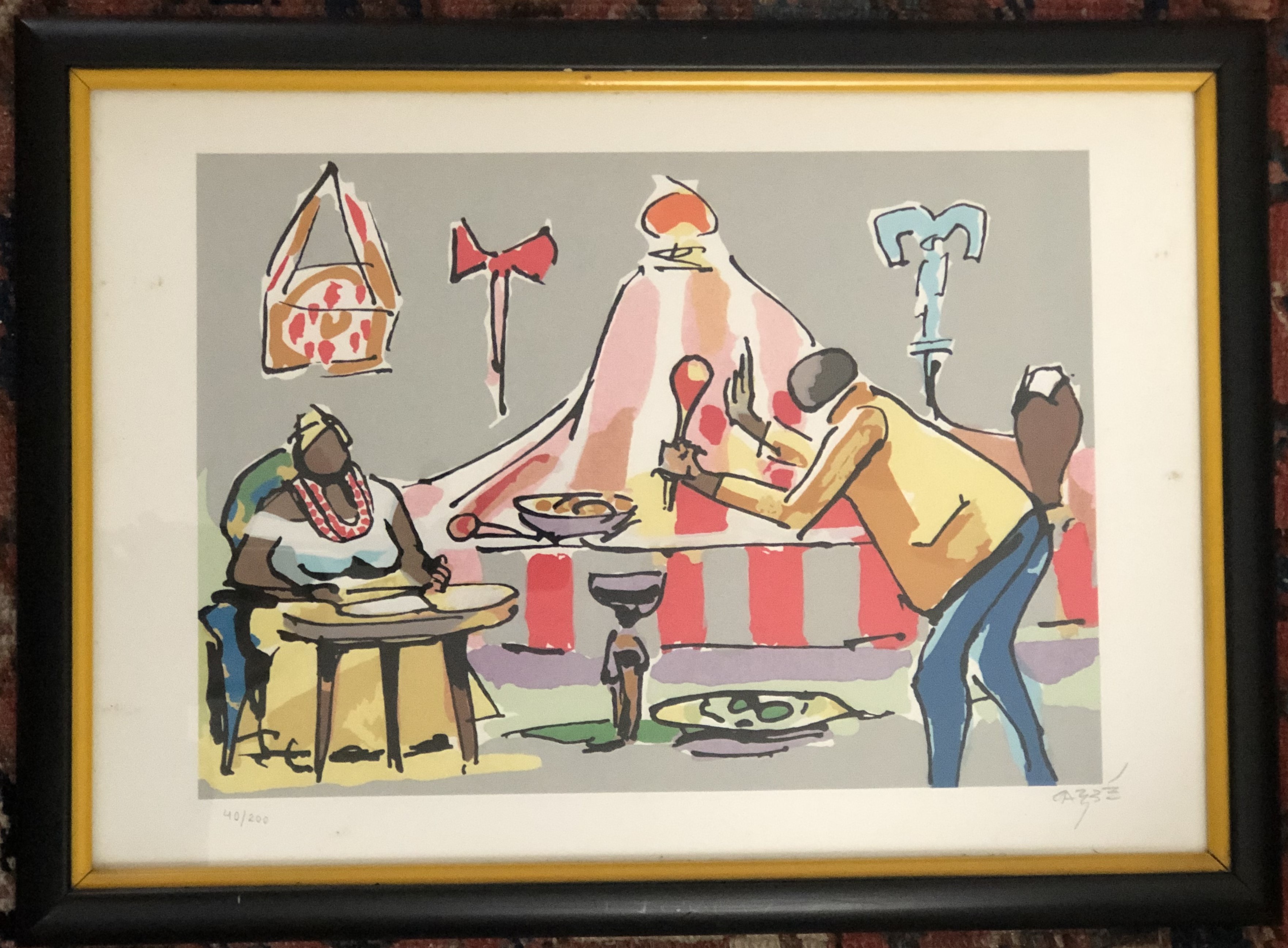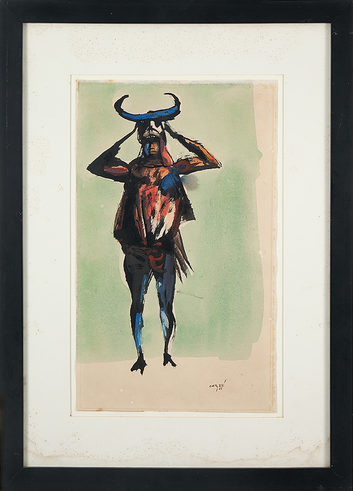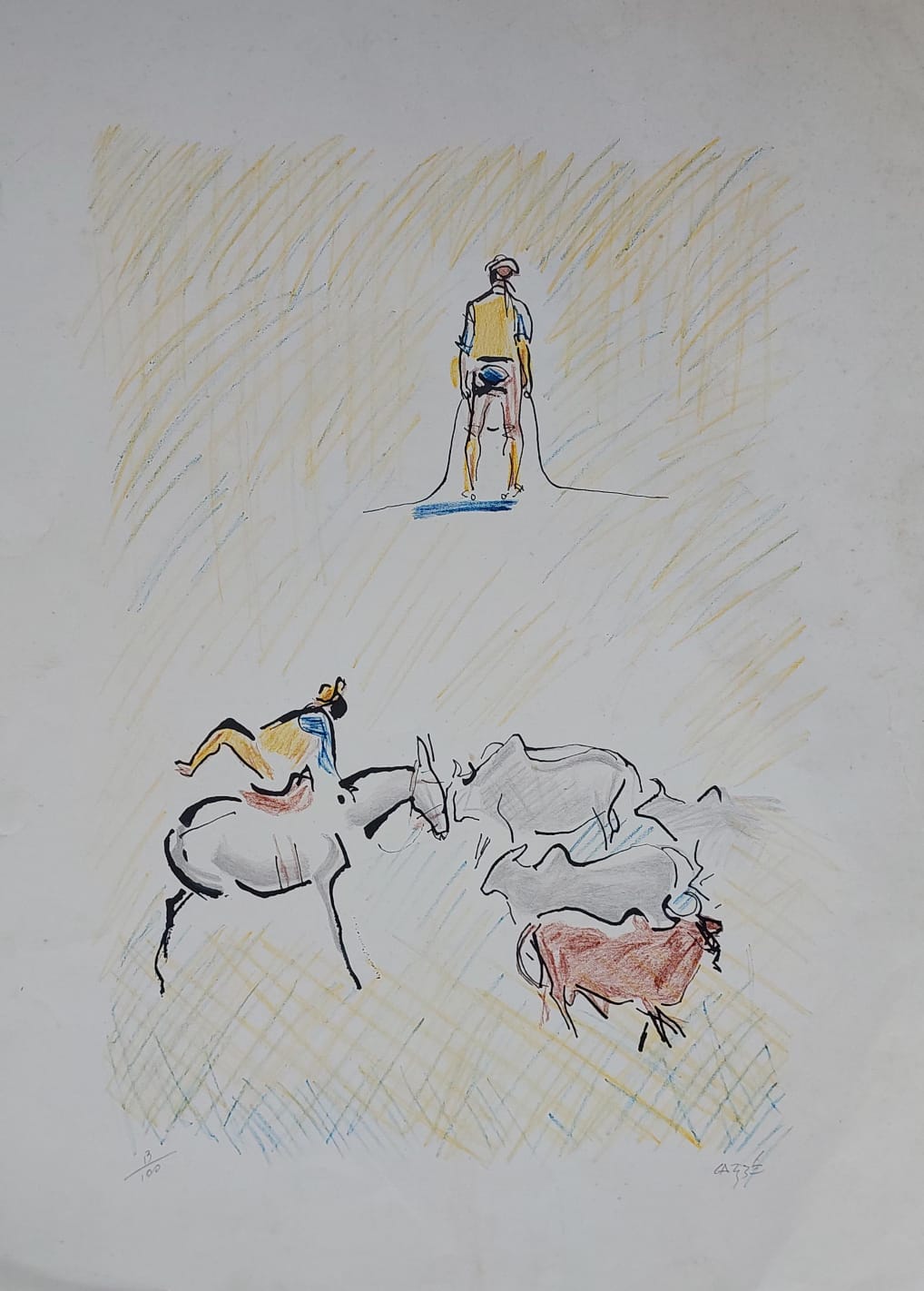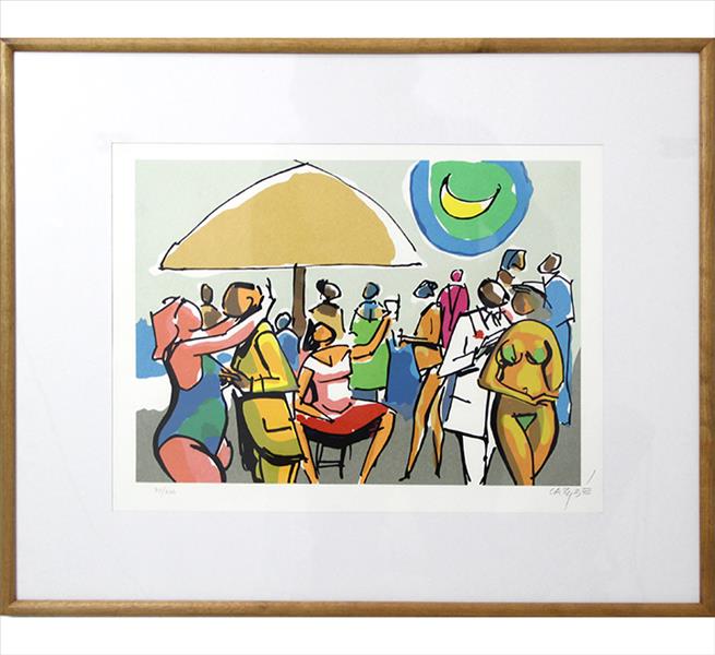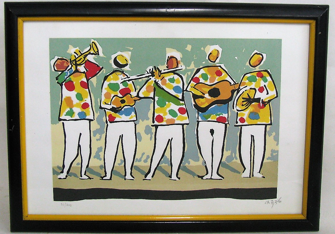 Carybé - Figuras - Prova do impressor. Serigrafia, 61x44 cm, sem data, A.C.I.D. a lápis. Com moldura