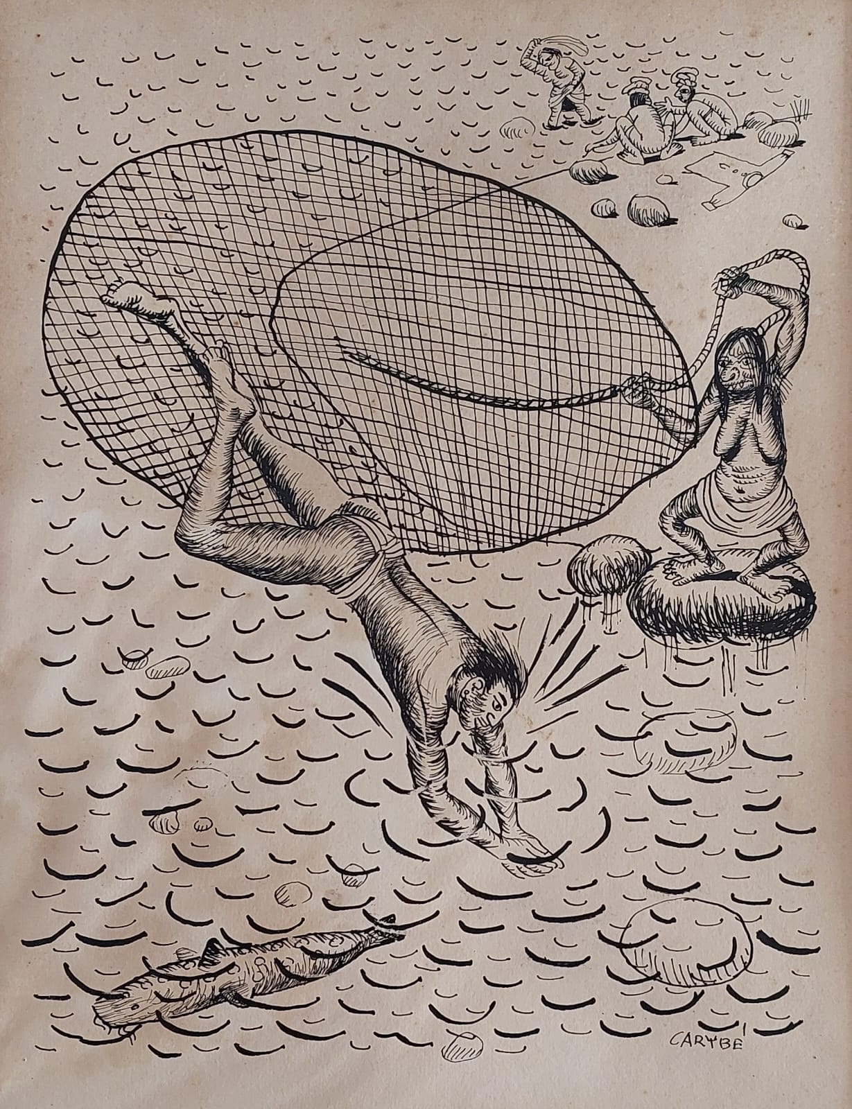 Carybé - Tempestade - 35,5 x 50,5 cm - Vinil Encerado Sobre Cartão Colado em Eucatex - Ass. Canto Inferior Direito e Dat. 1989