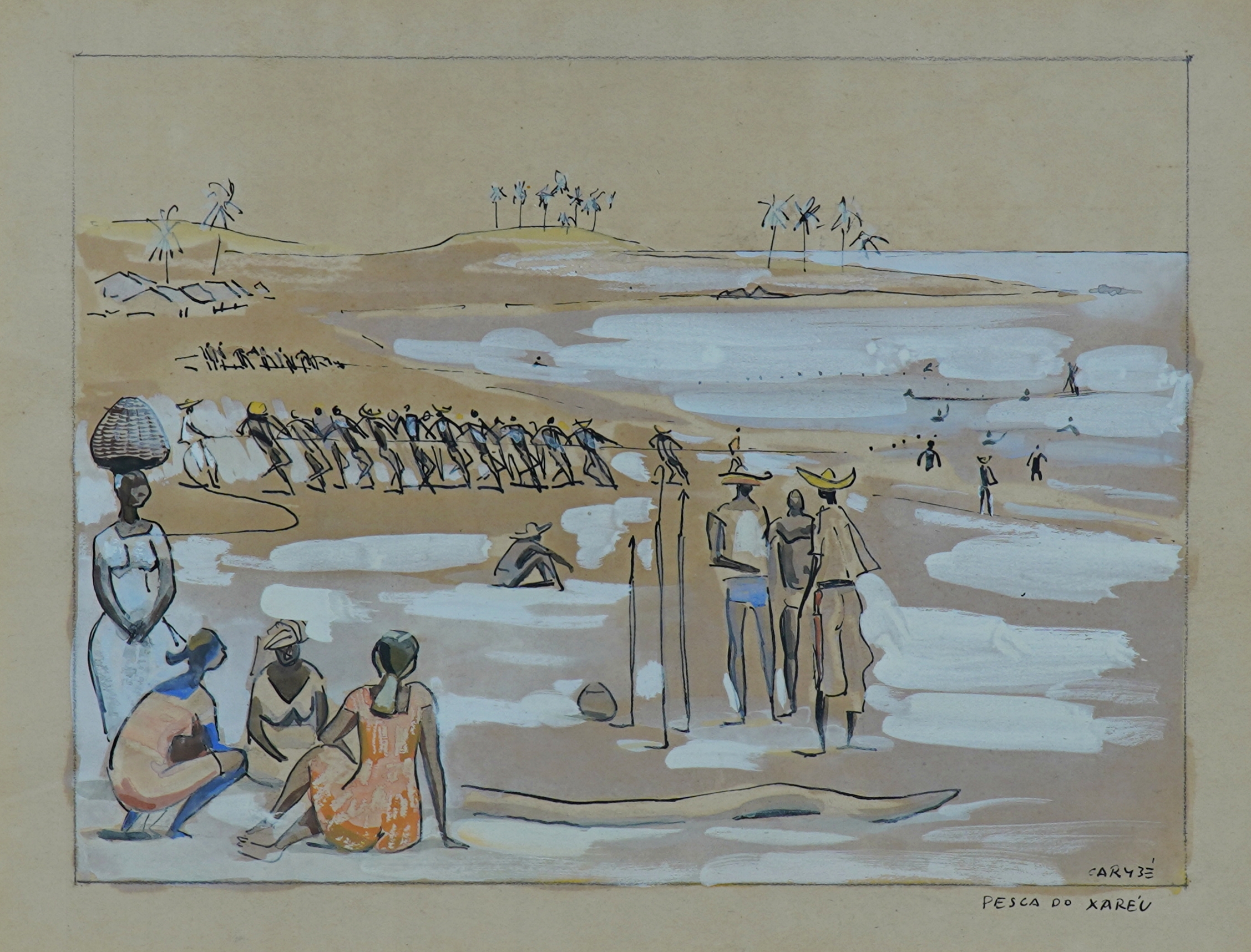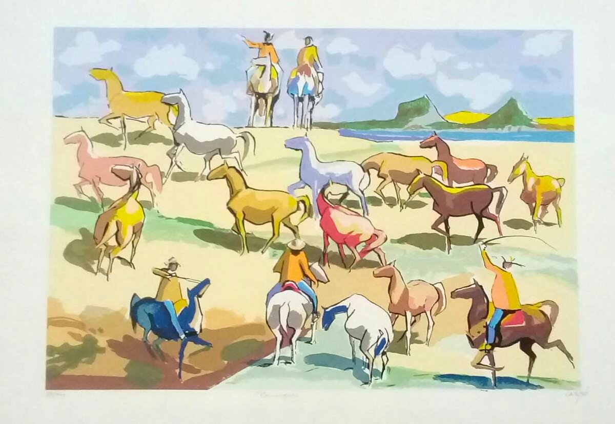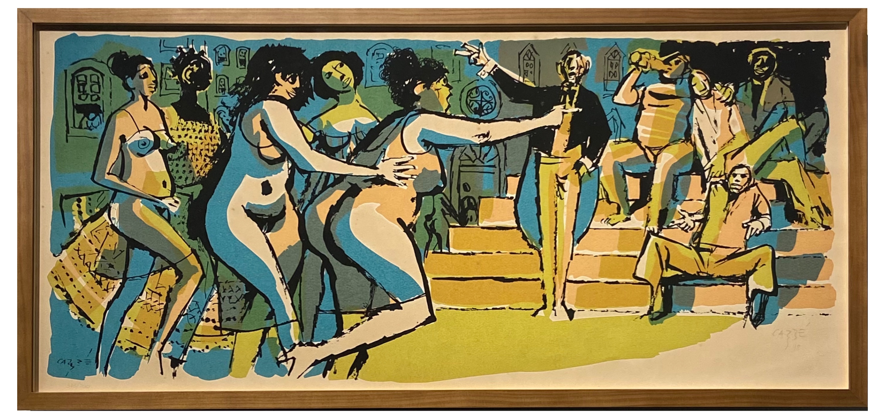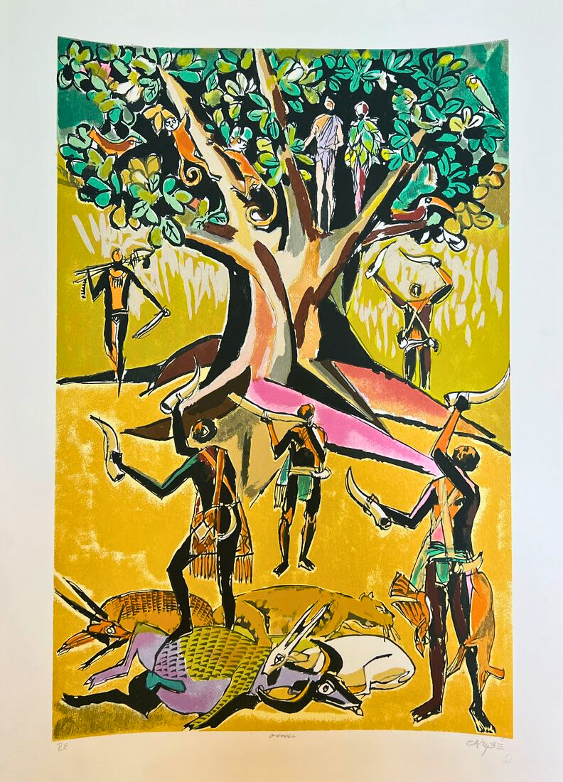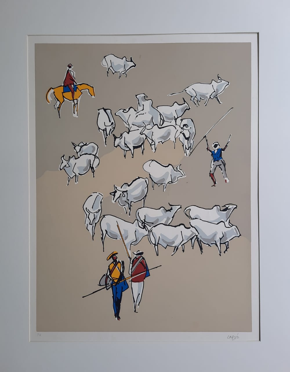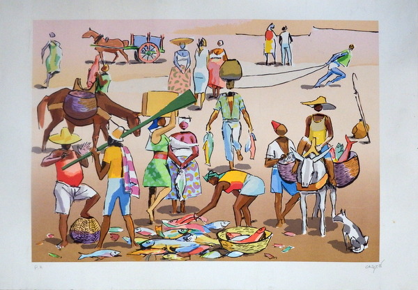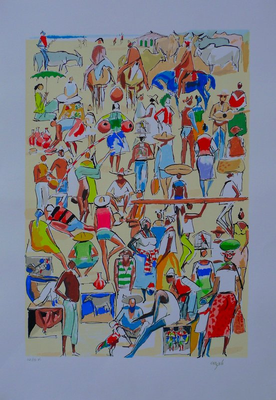 Carybé - Figuras - Prova do impressor. Serigrafia, 61x44 cm, sem data, A.C.I.D. a lápis. Com moldura