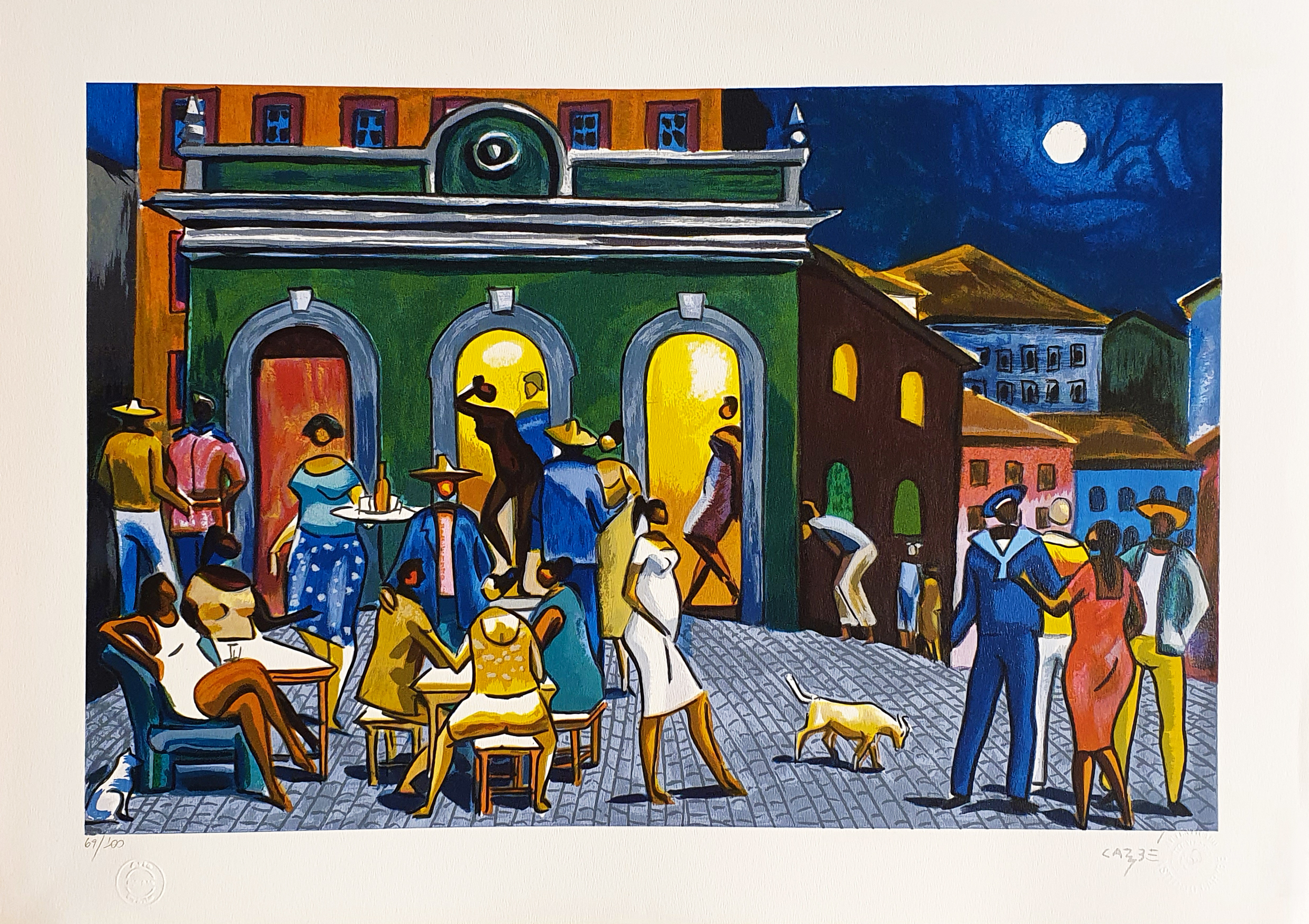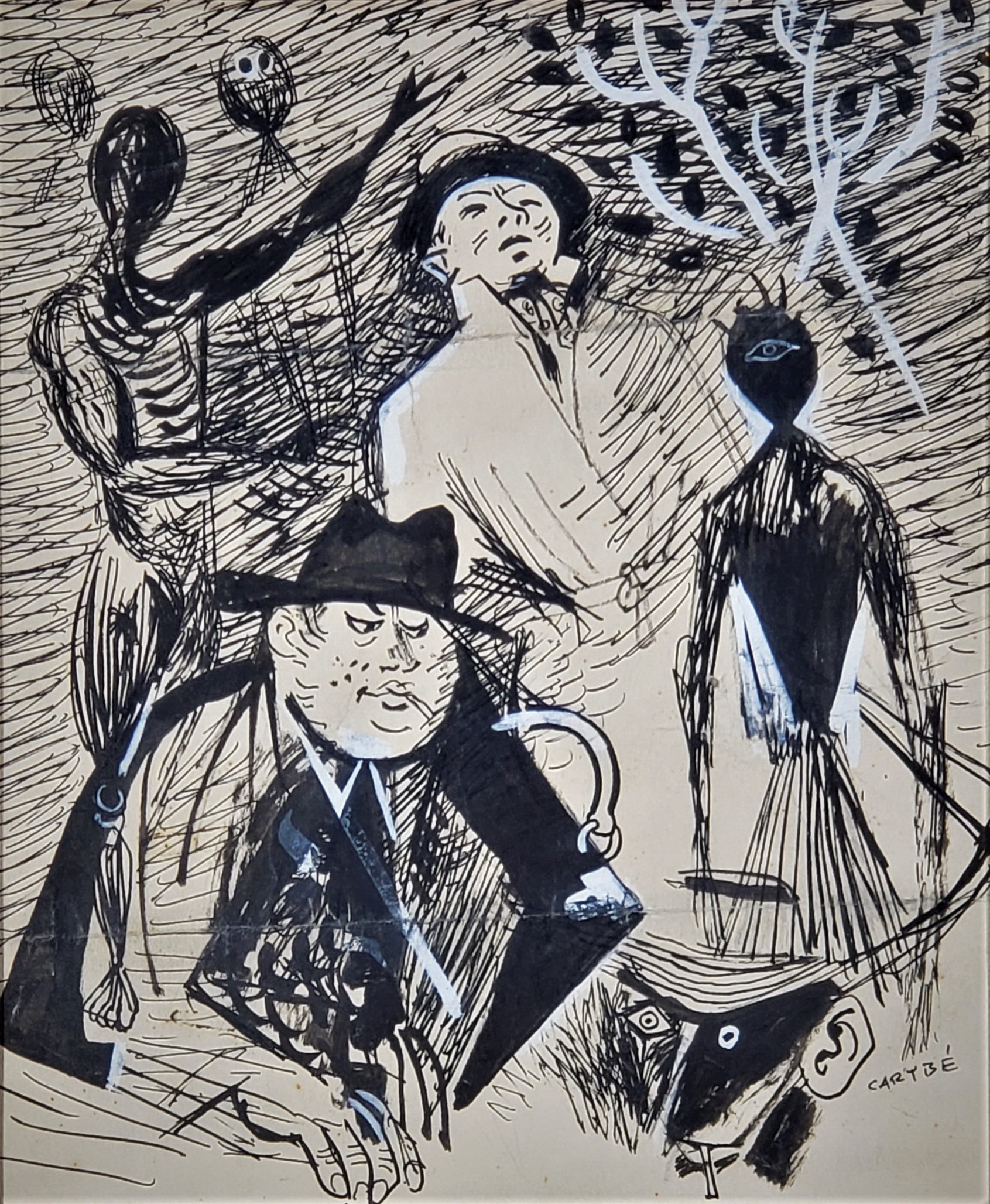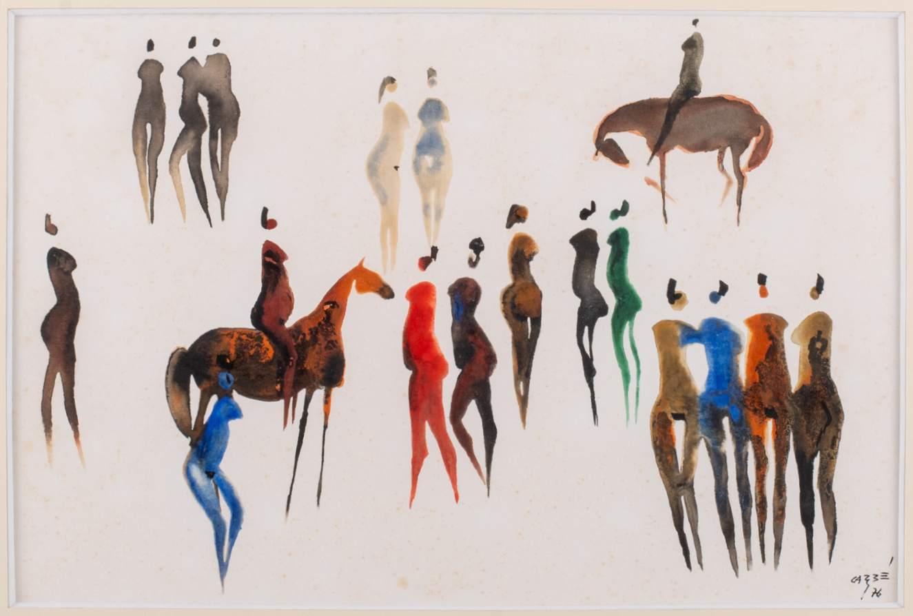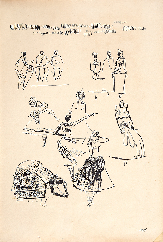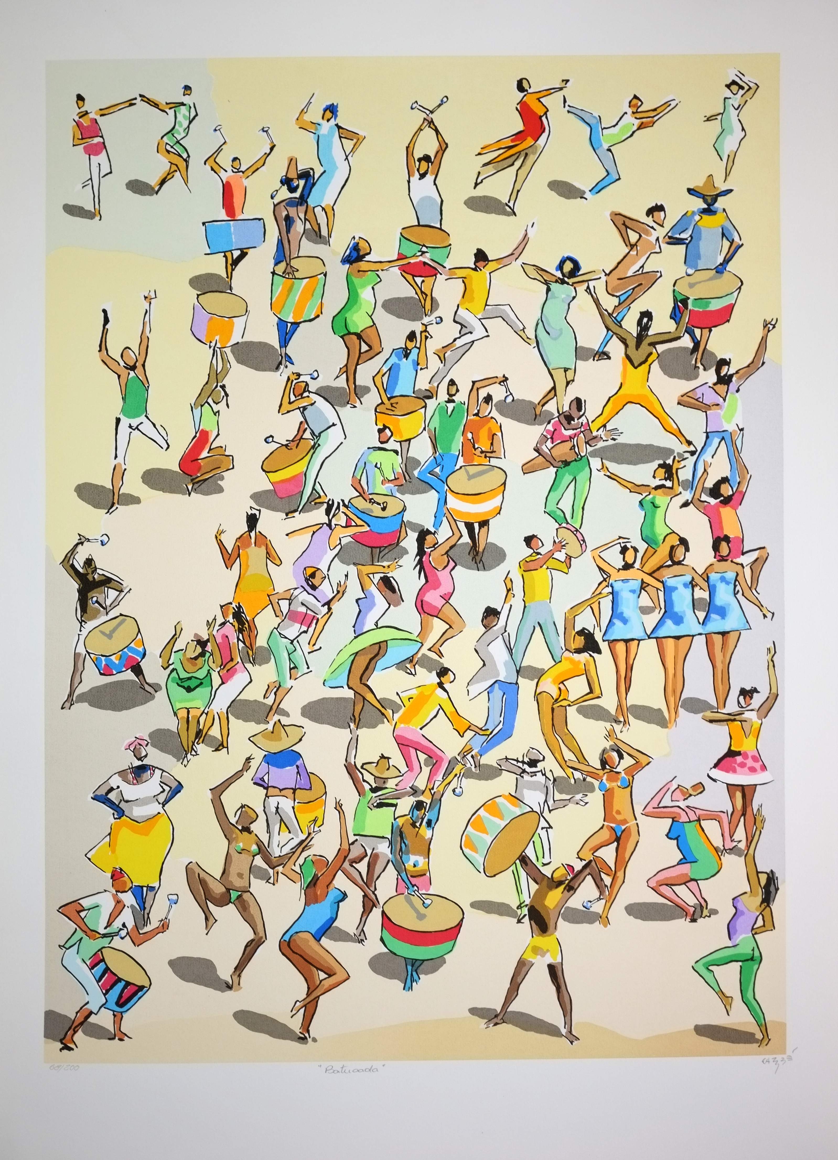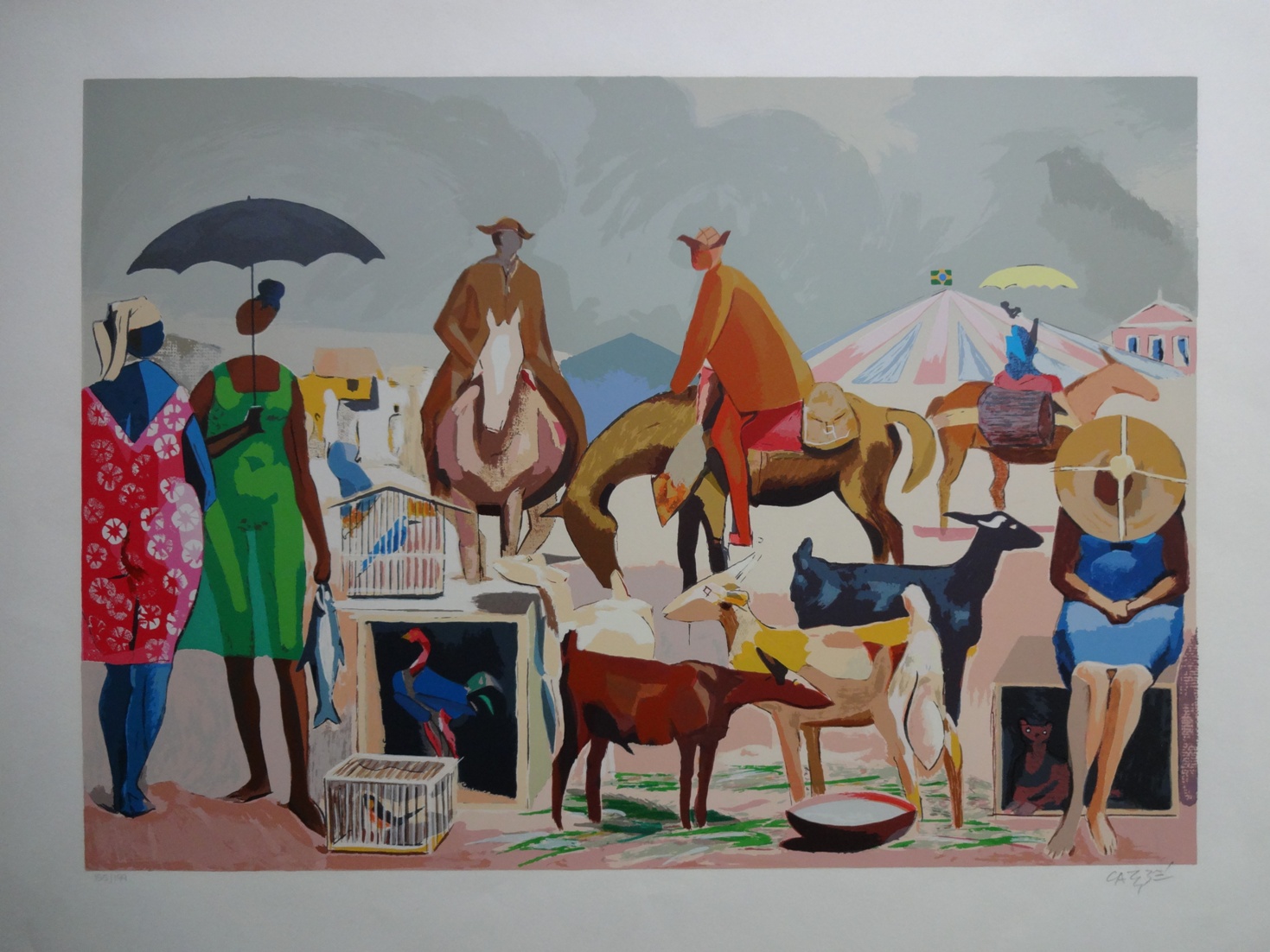 Carybé - Figuras - Prova do impressor. Serigrafia, 61x44 cm, sem data, A.C.I.D. a lápis. Com moldura