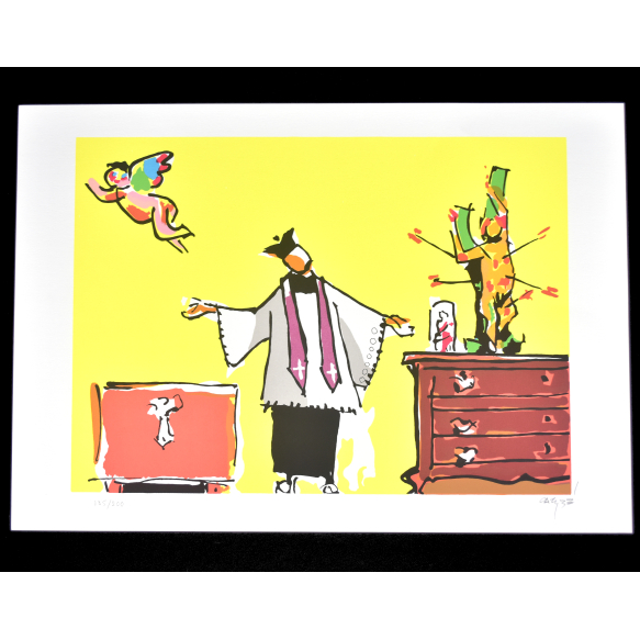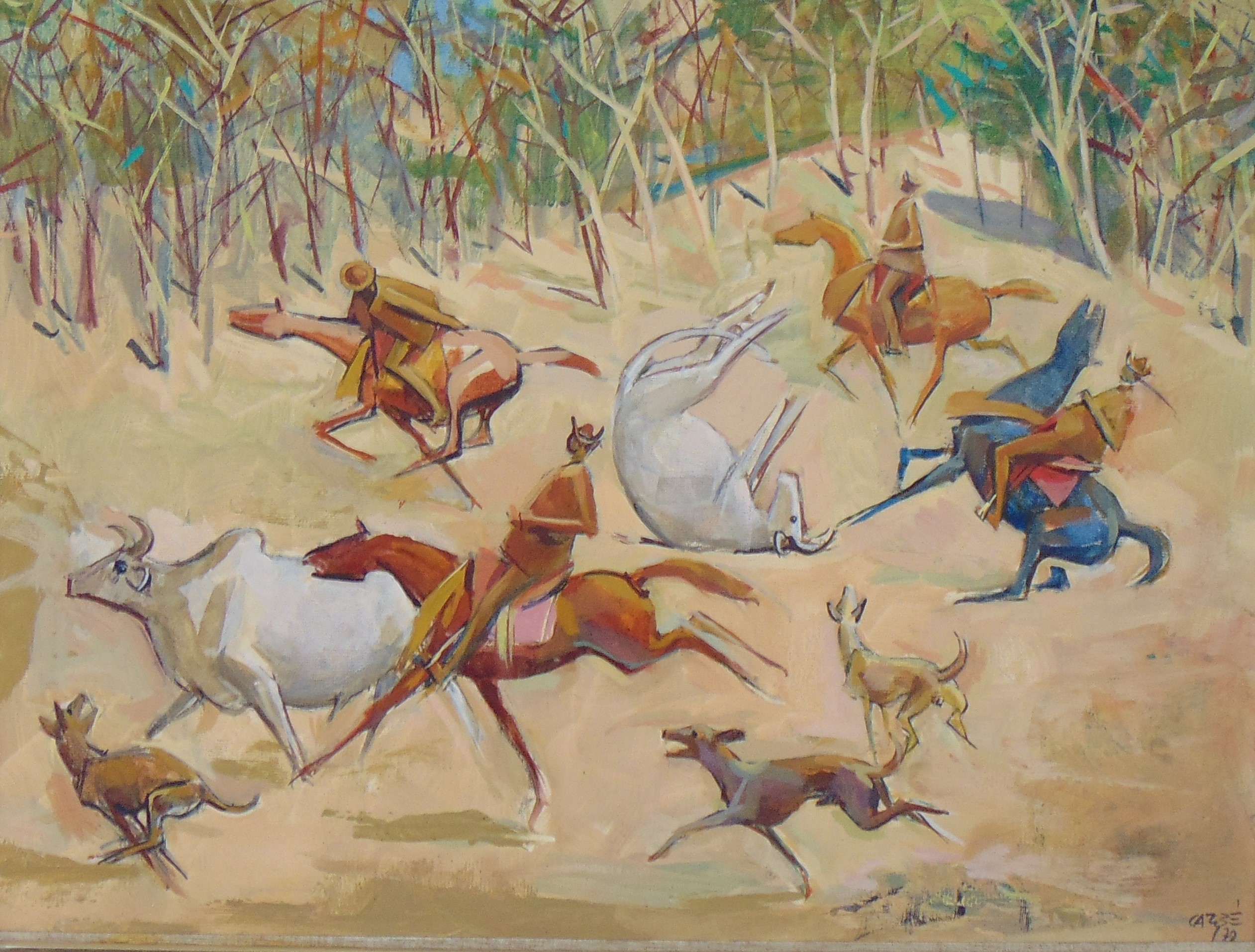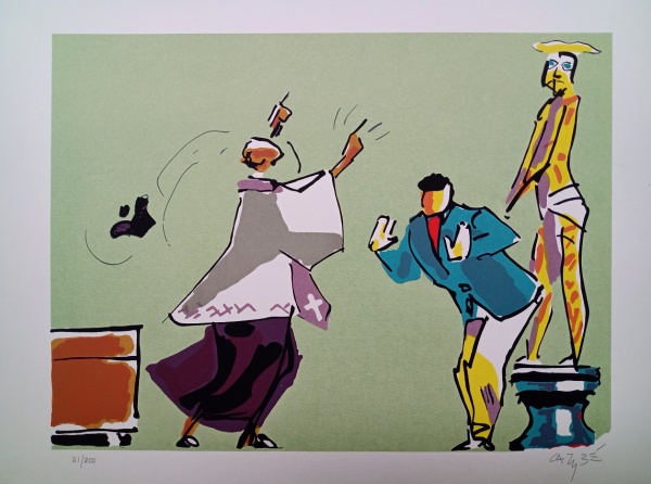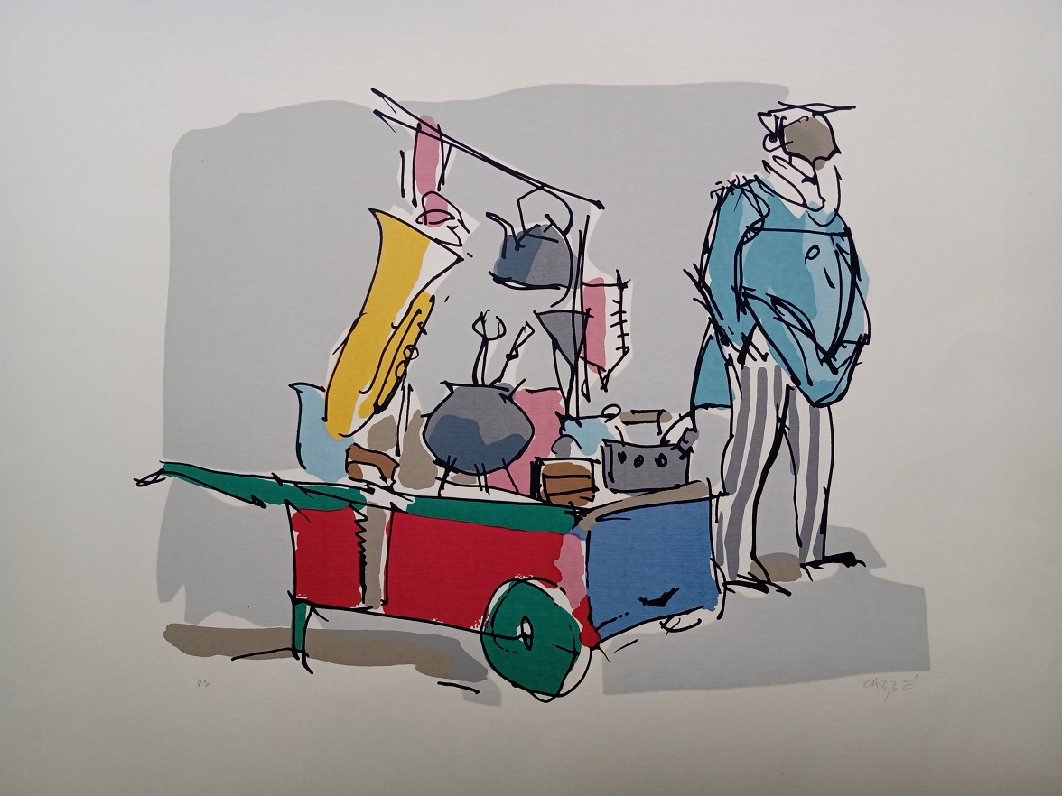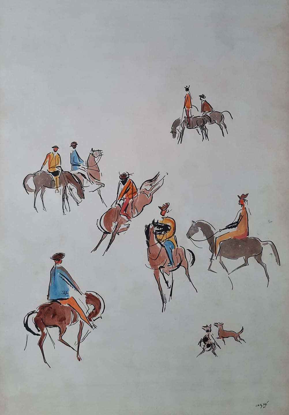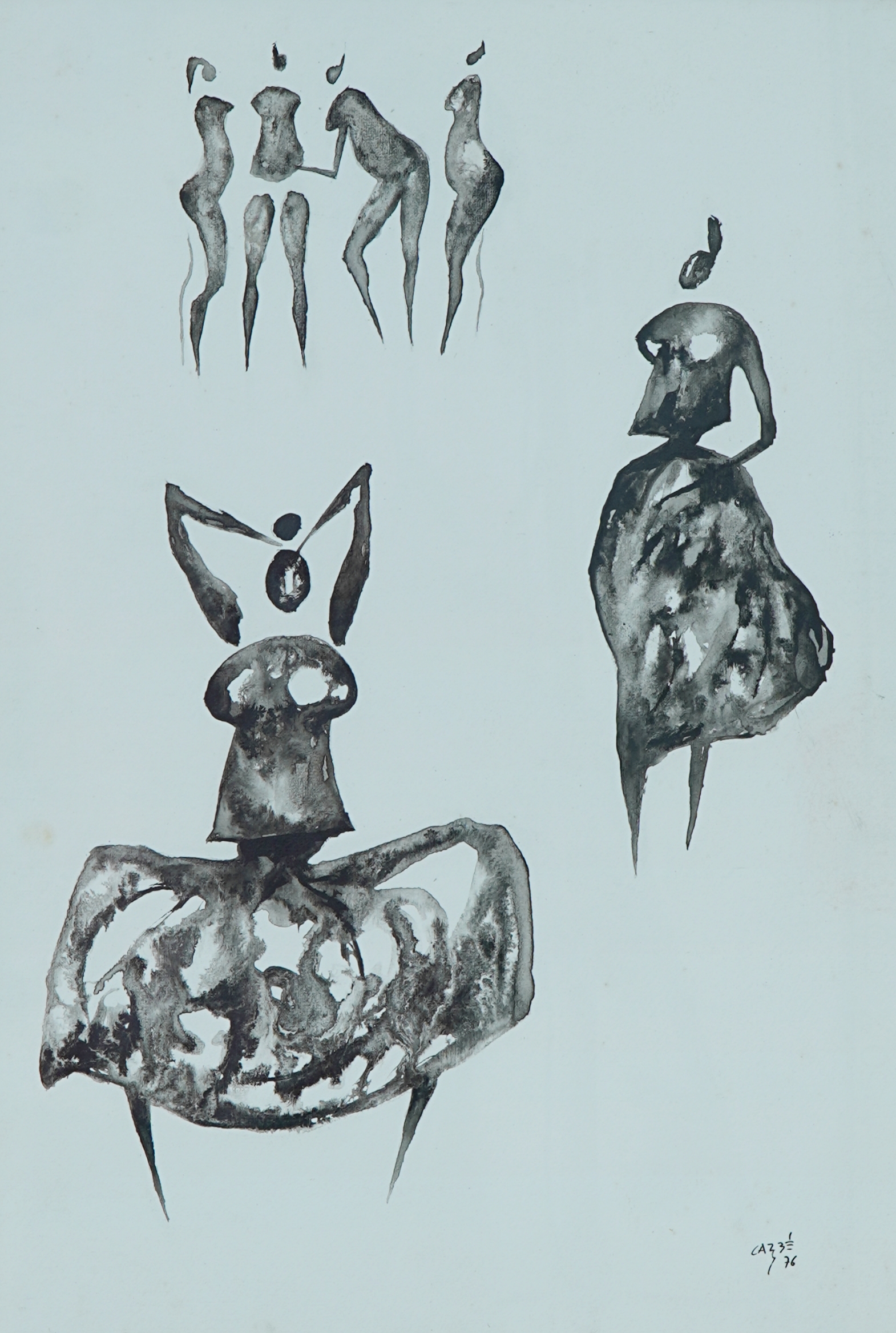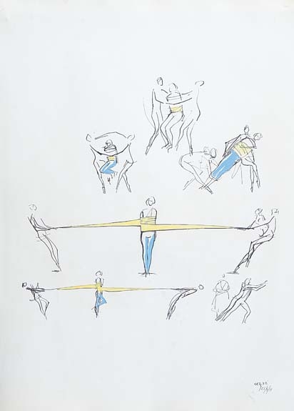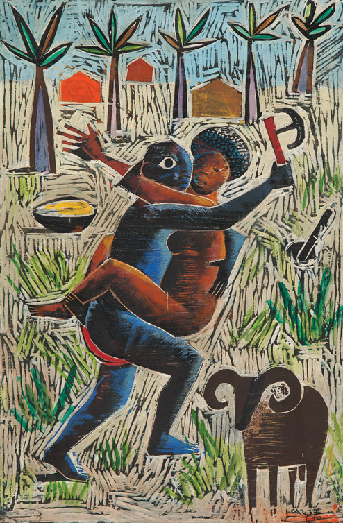 Carybé - Figuras - Prova do impressor. Serigrafia, 61x44 cm, sem data, A.C.I.D. a lápis. Com moldura