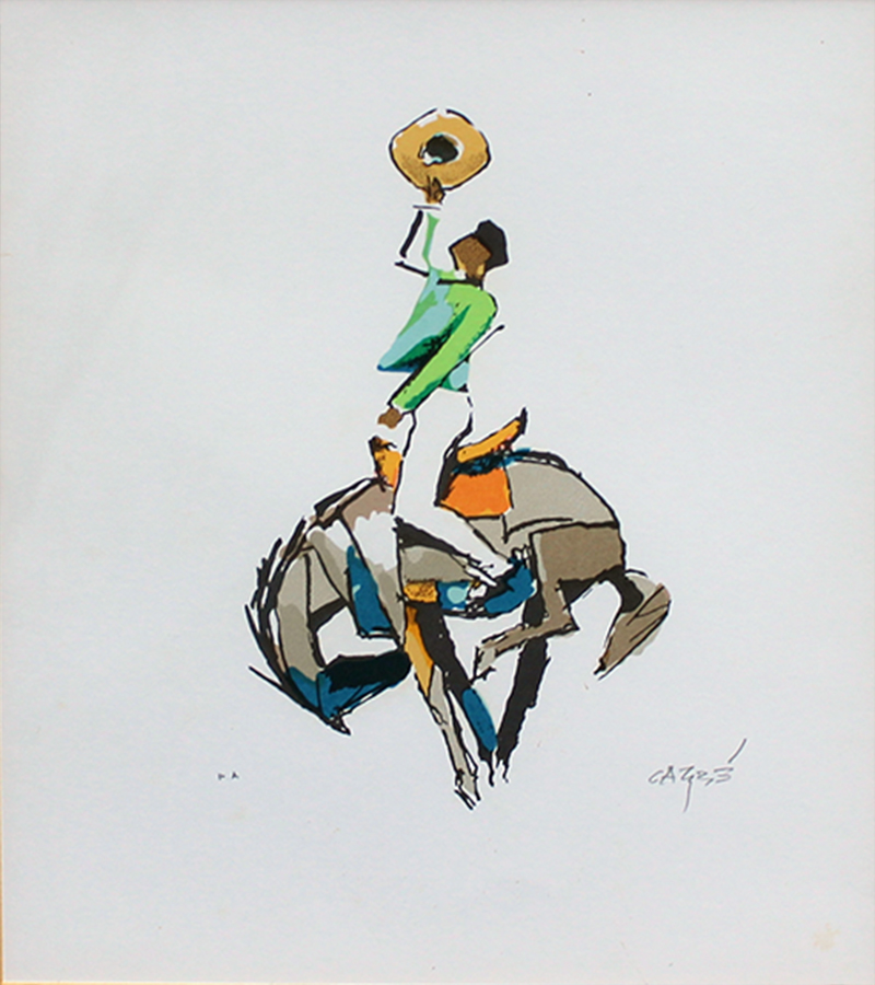 Héctor Carybé - Cavaleiro - Giz de cera s/ papel - 46  alt x 31 larg - acid -  obra apresenta detalhes