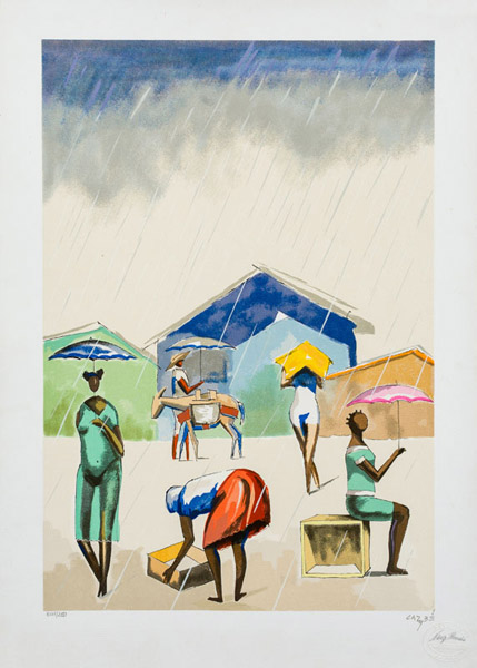 Carybé - Tempestade - 35,5 x 50,5 cm - Vinil Encerado Sobre Cartão Colado em Eucatex - Ass. Canto Inferior Direito e Dat. 1989