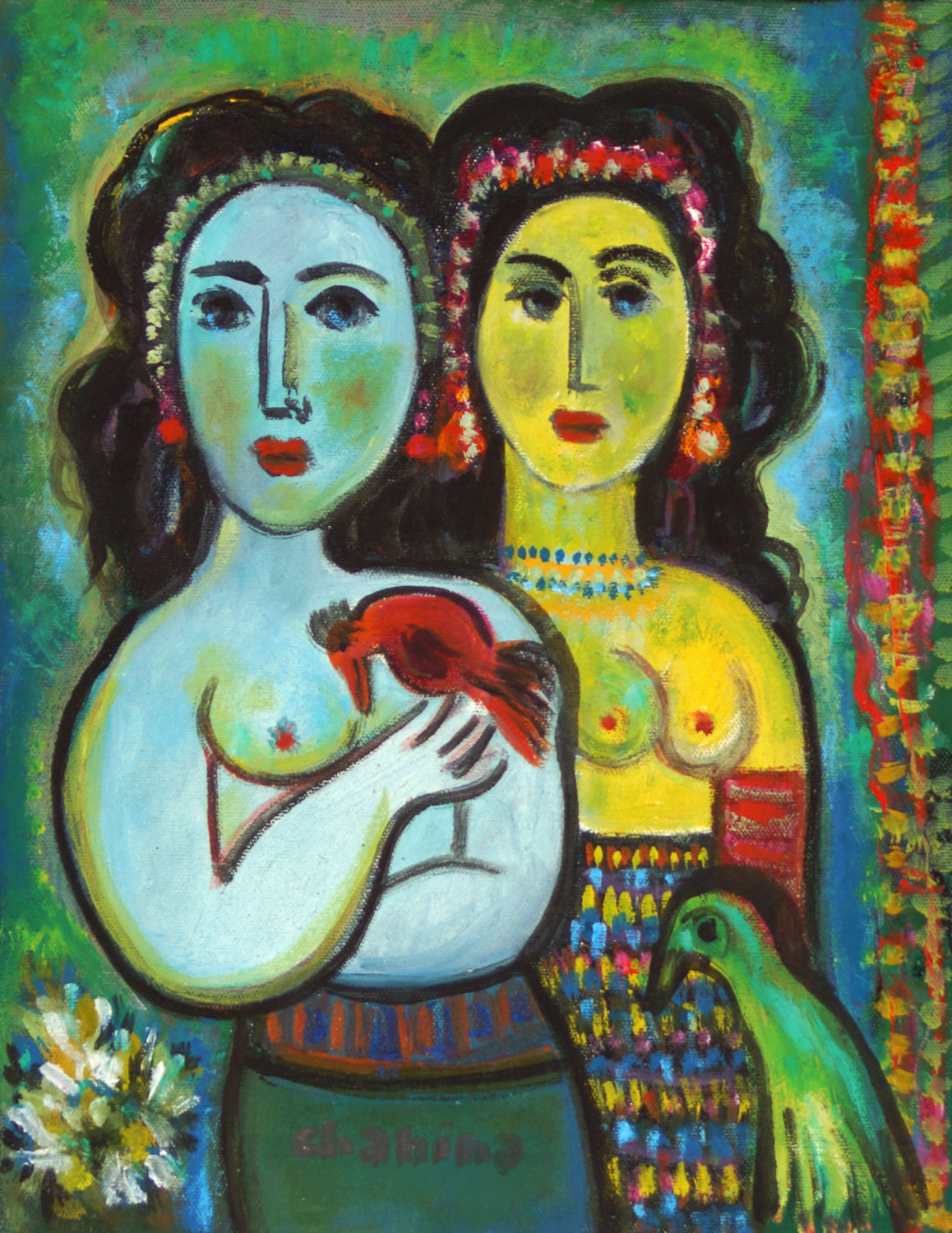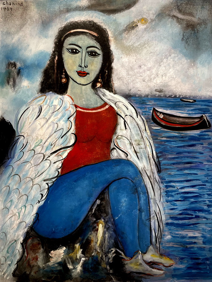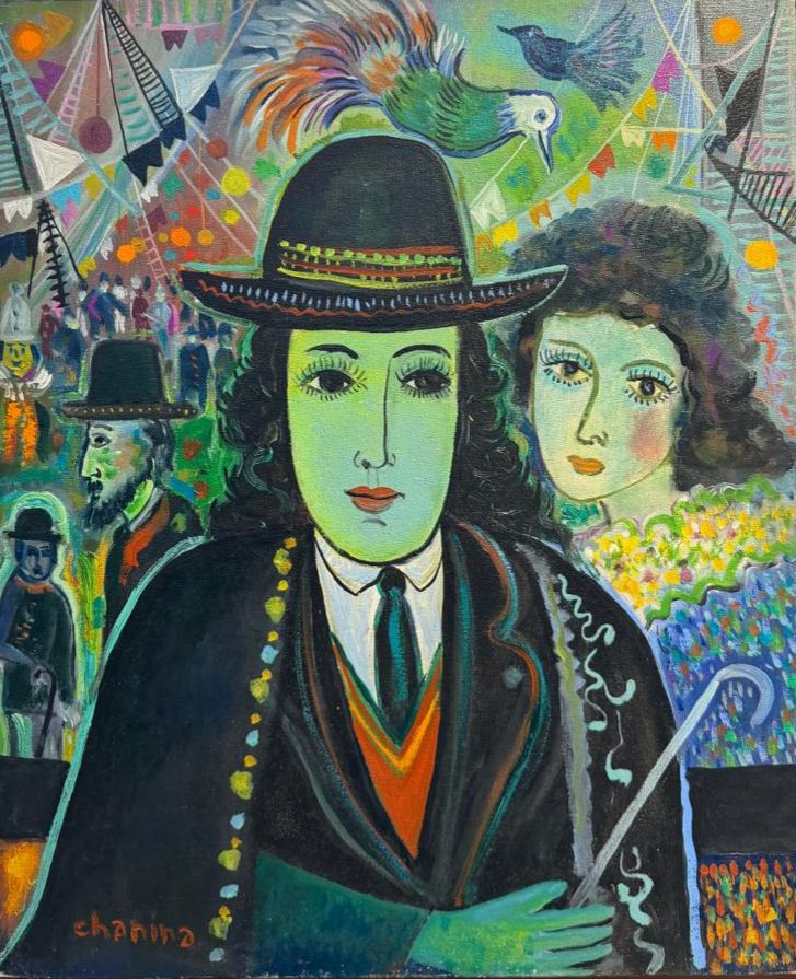 Chanina - A festa da colombina apaixonada - Homenagem a Chagall - 46 x 38 cm - Óleo sobre tela - Assinatura canto inferior esquerdo e Data década de 60 - Obra reproduzida no livro escrito por Jaboc Klintowitz