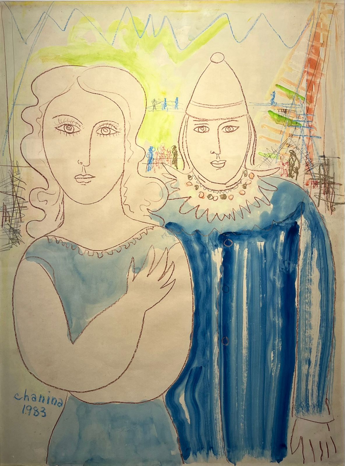 Chanina - Circo - Pierrot e a Colombina - 66 x 51 cm - Técnica mista - Assinatura canto inferior esquerdo e Data 1983