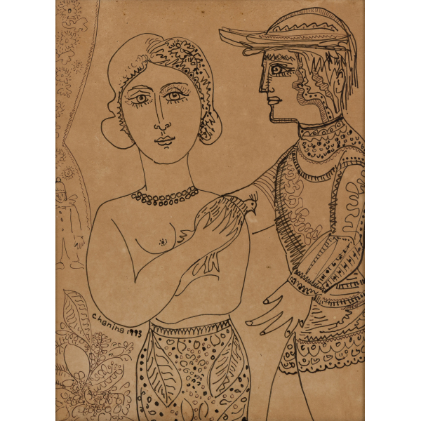 Chanina -Casal picassiano – 29 x 21,5 cm – Desenho a caneta – Assinatura canto inferior esquerdo e Data 1993