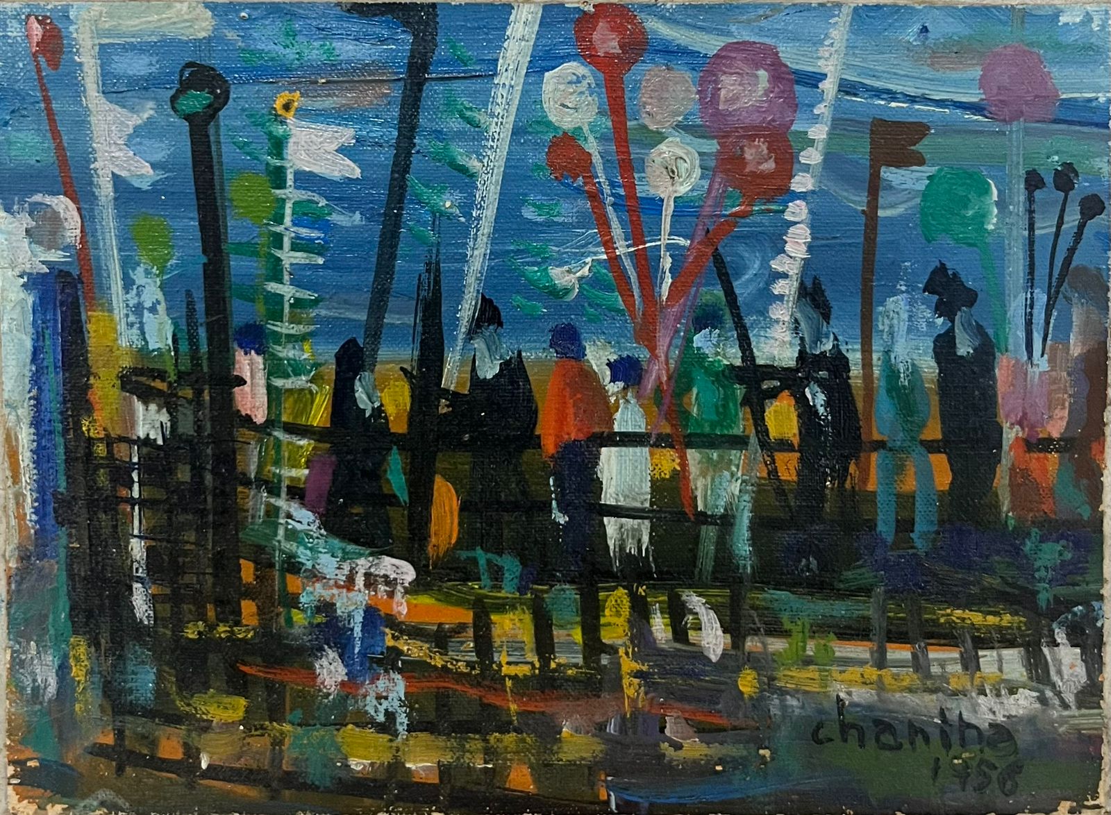 Chanina - Festa no Parque Municipal - 12 x 16,5 cm - Óleo sobre tela colado em madeira - Assinatura canto inferior direito e Data 1956 - Esta pertenceu a coleção particular do artista