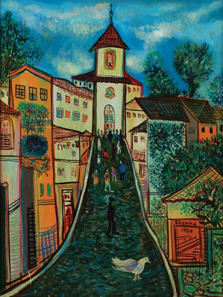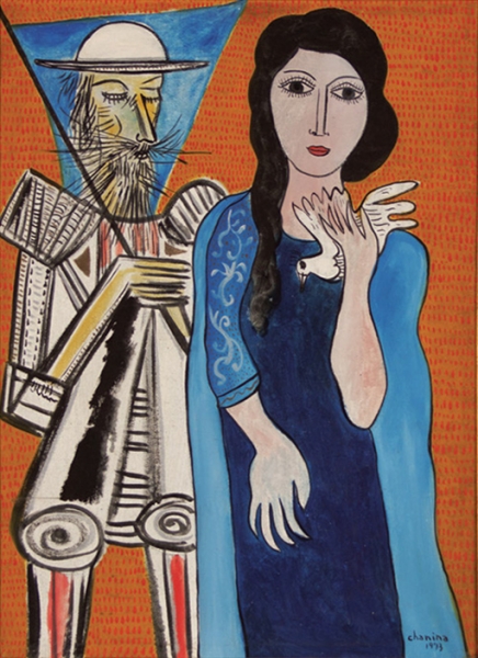 "A origem judaica, a formação e convivência em Minas, o ofício da medicina: na confluência dessas forças, o pintor Chanina realiza uma obra fortemente humanista, densa, dramática, carregada de uma sensibilidade peculiar, não se descartando de um certo lirismo que corresponde, dentro de sua visão-de-mundo, ao reconhecimento das próprias possibilidades redentoras da arte. O expressionismo que marcará toda a sua obra - figurativa ou não - tem origem nas próprias raízes culturais do artista que, como em Chagall, sobrepondo-se ao sentimento trágico da vida, há de fazer de sua pintura: poesia. Lírico, Chanina pinta com o coração, fazendo fluir, da malha de acentuados grafismos, iluminada pelo magnífico colorido, a constelação de imagens-símbolos que rompem os limites da realidade para aninhar-se nos páramos de fantásticas regiões. Suas personagens míticas - mulheres com pombas e flores, cavaleiros medievais, cavalos estelares e feiticeiros - e as suas paisagens mineiras e de outros reinos, tudo se inscreve dentro desse círculo de sonho e fantasia, que a cor e o rico tessituramento da matéria pictórica mais acentuam".