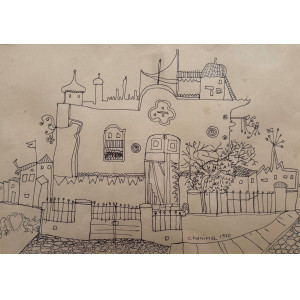 Chanina - Castelo - Nanquim sobre Papel - 20 x 30 cm - Ass. CID - Emoldurada - Doação do colecionador Sérgio Pereira, obra 0178 de seu acervo