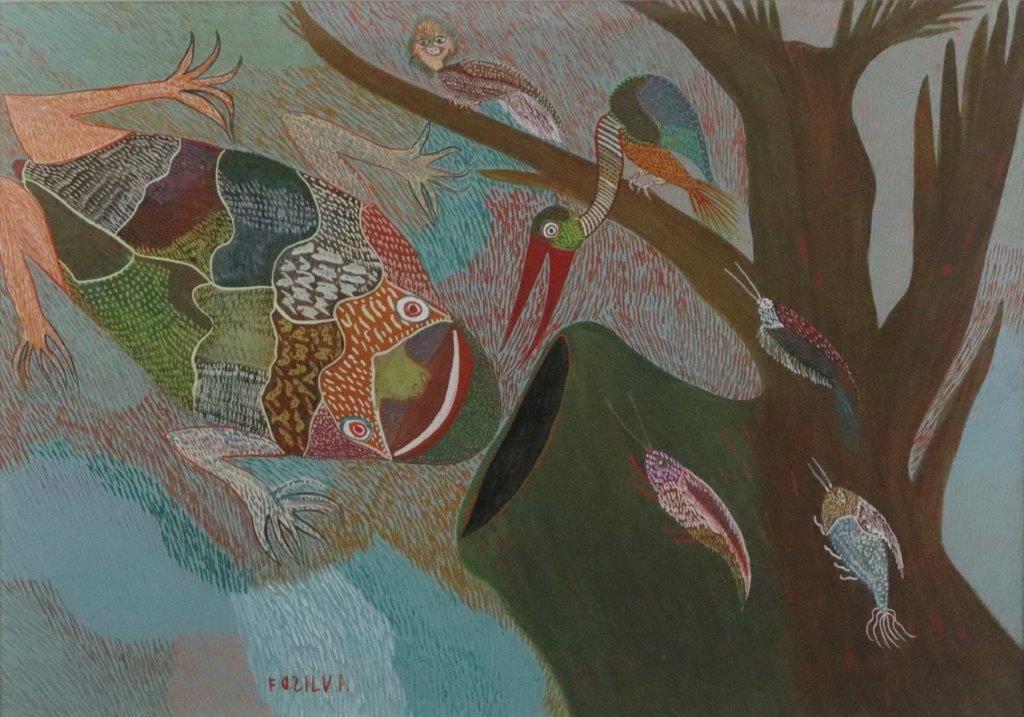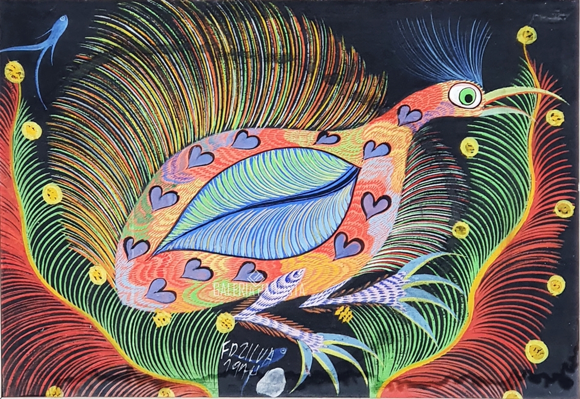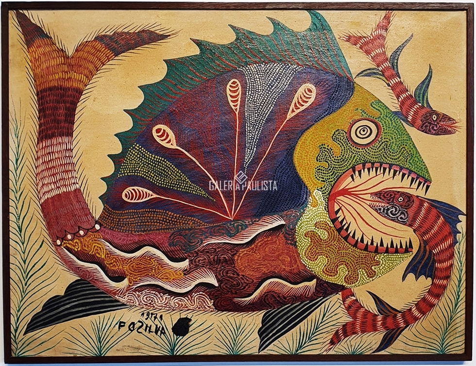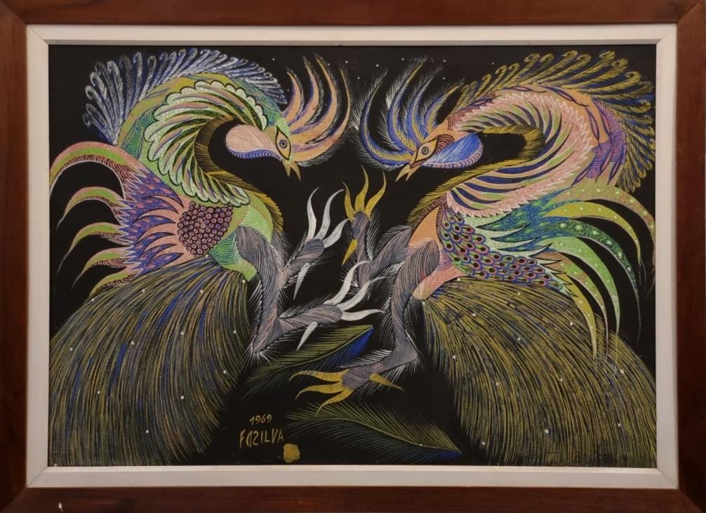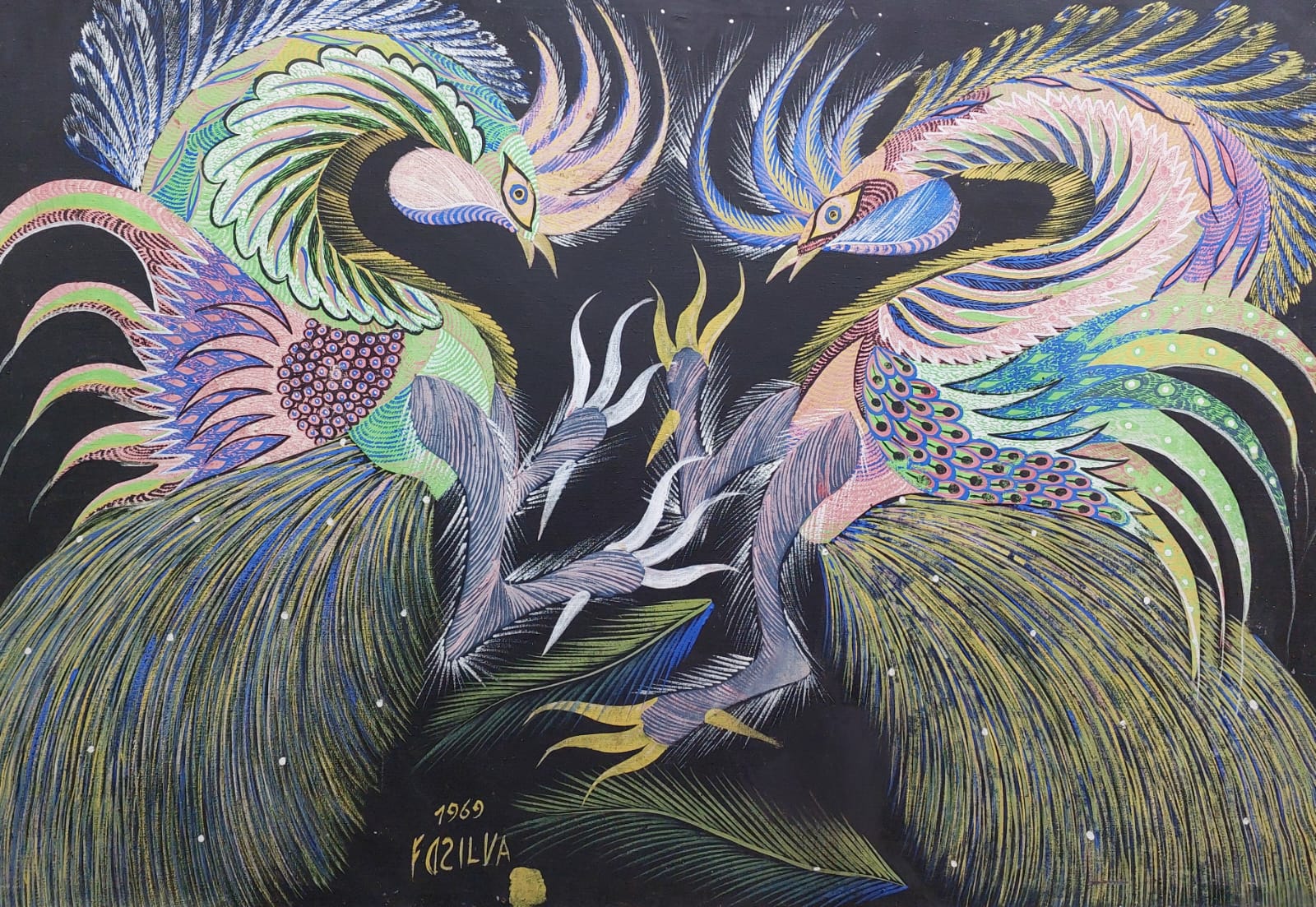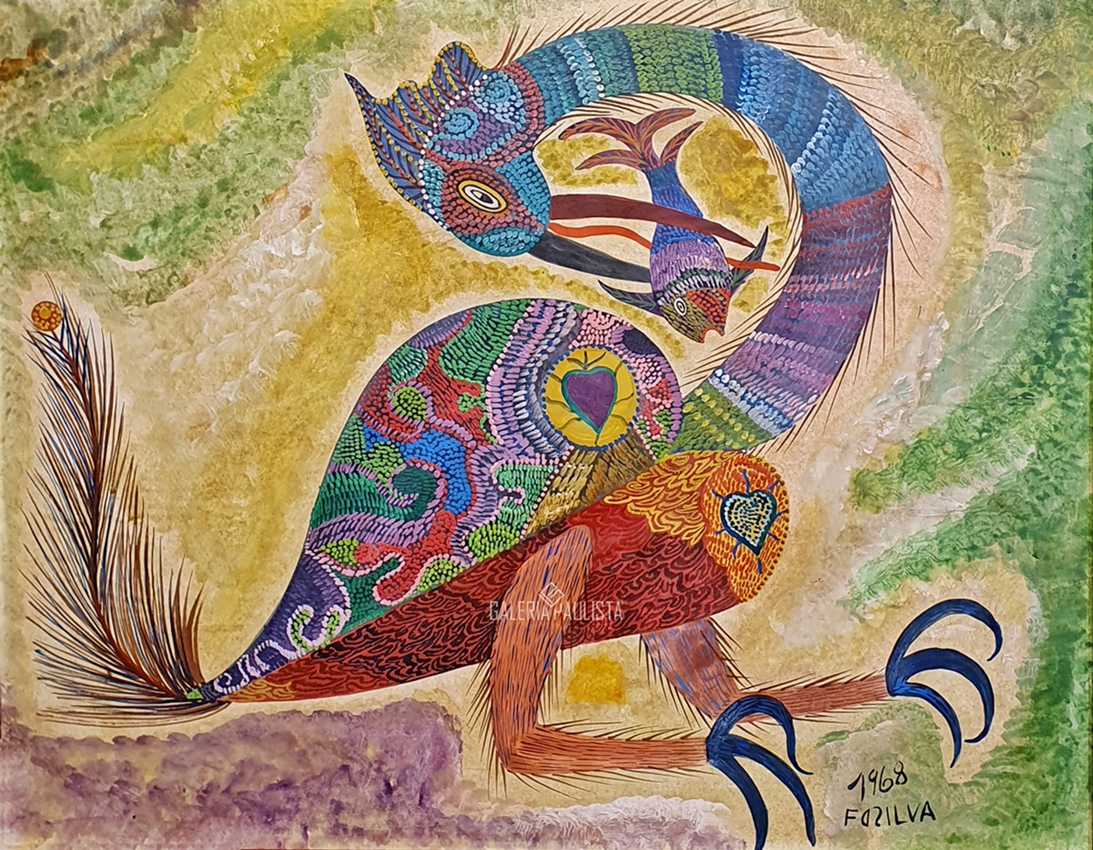 Francisco da Silva - Pavão Fantastico - Óleo sobre tela - 50 alt x 70 larg - acid - 1973