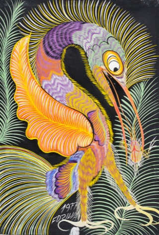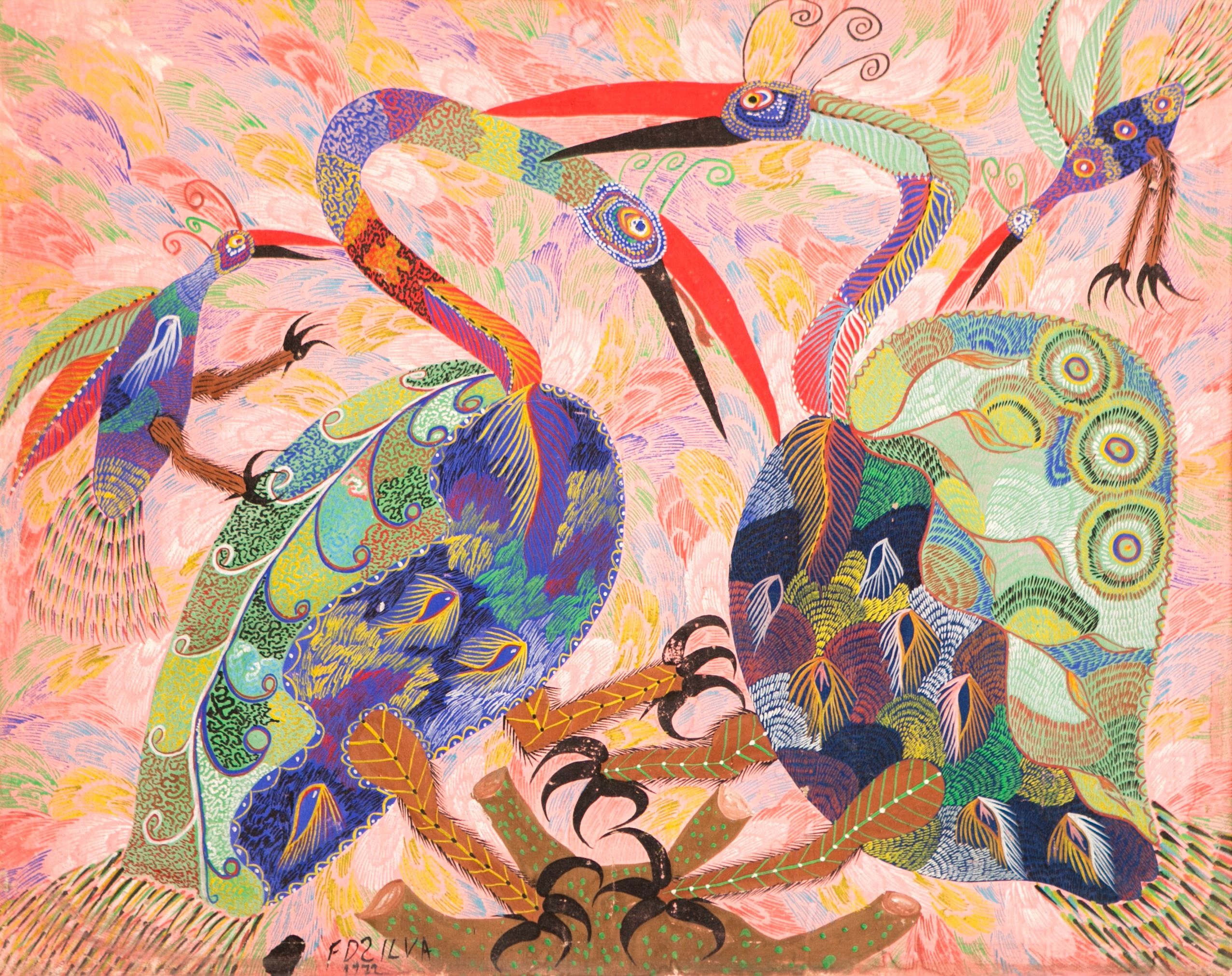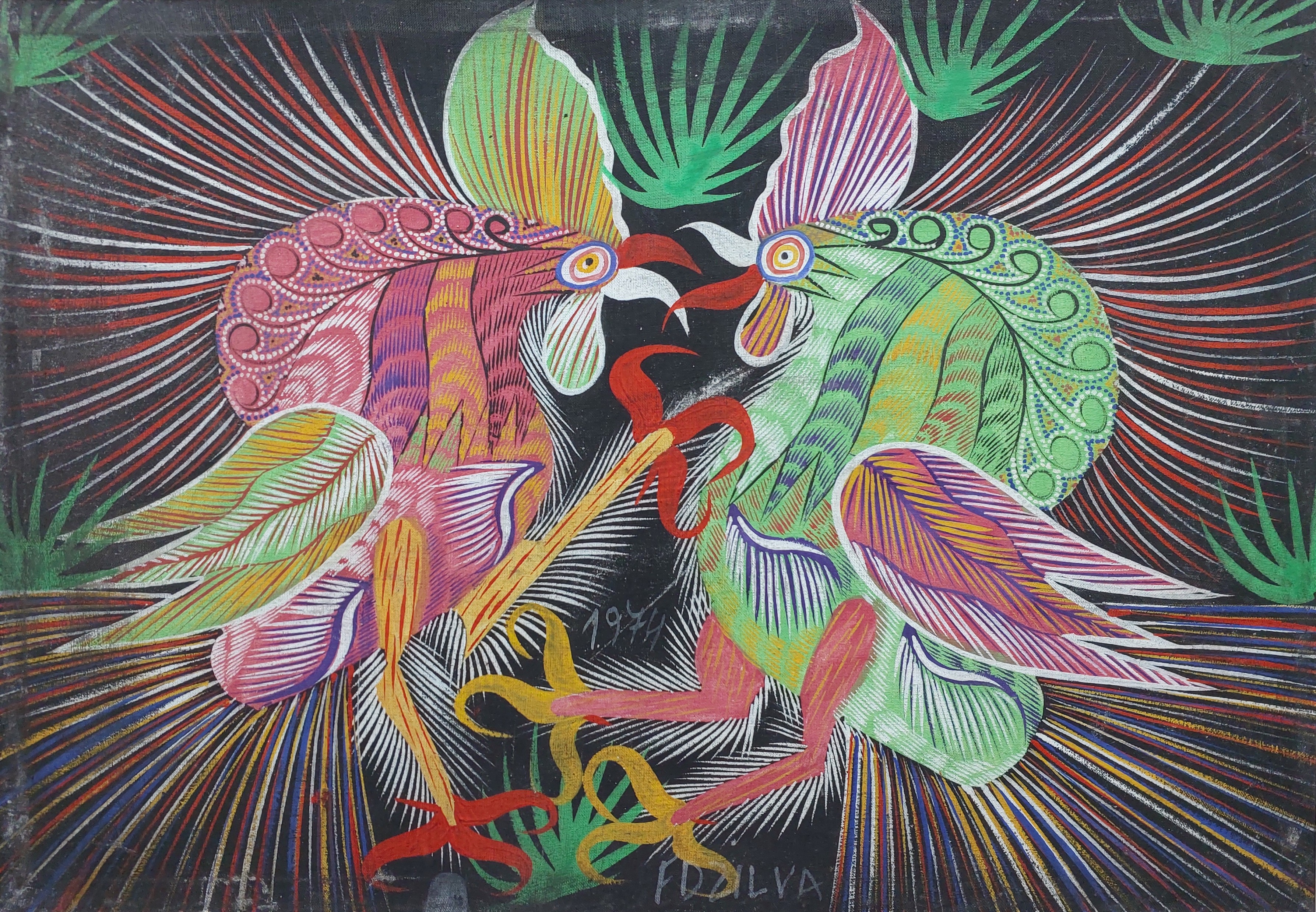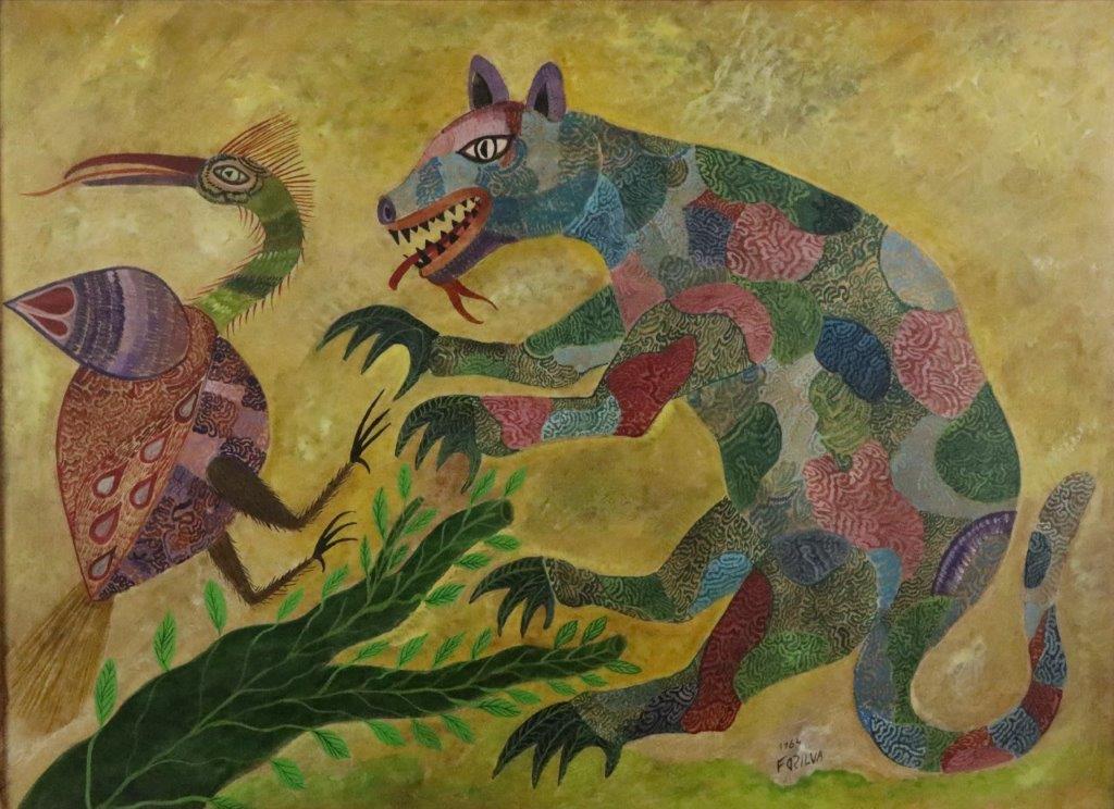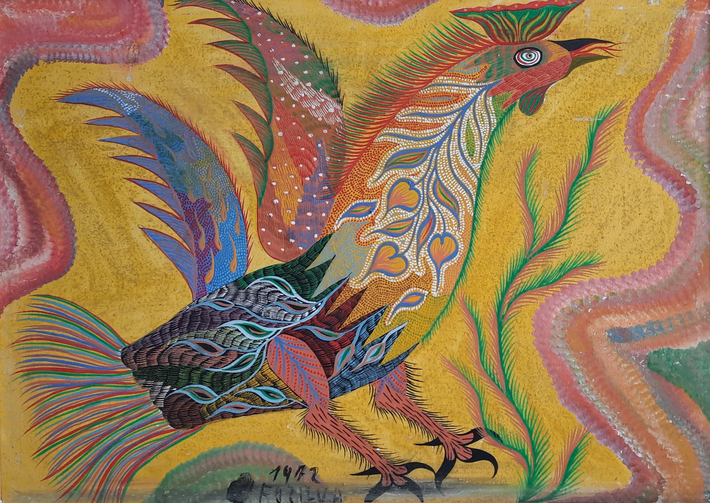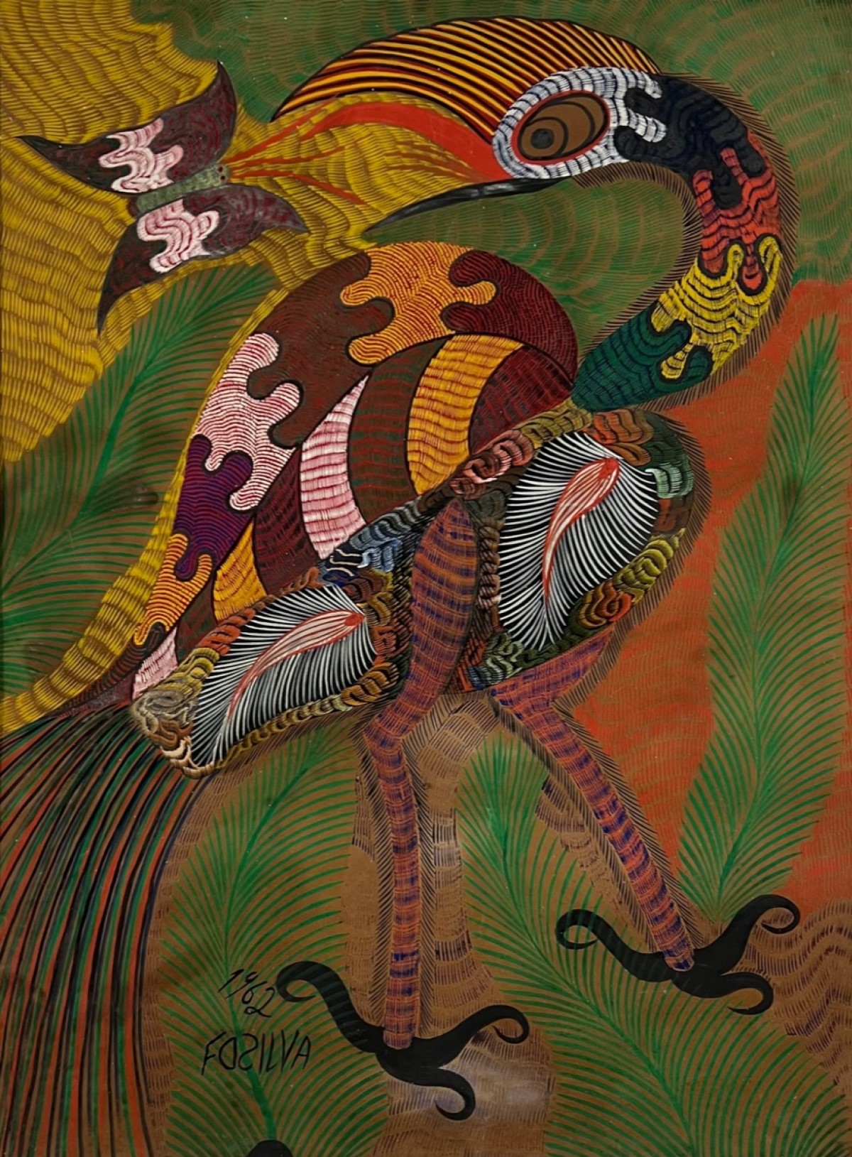 Francisco da Silva - Pavão Fantastico - Óleo sobre tela - 50 alt x 70 larg - acid - 1973