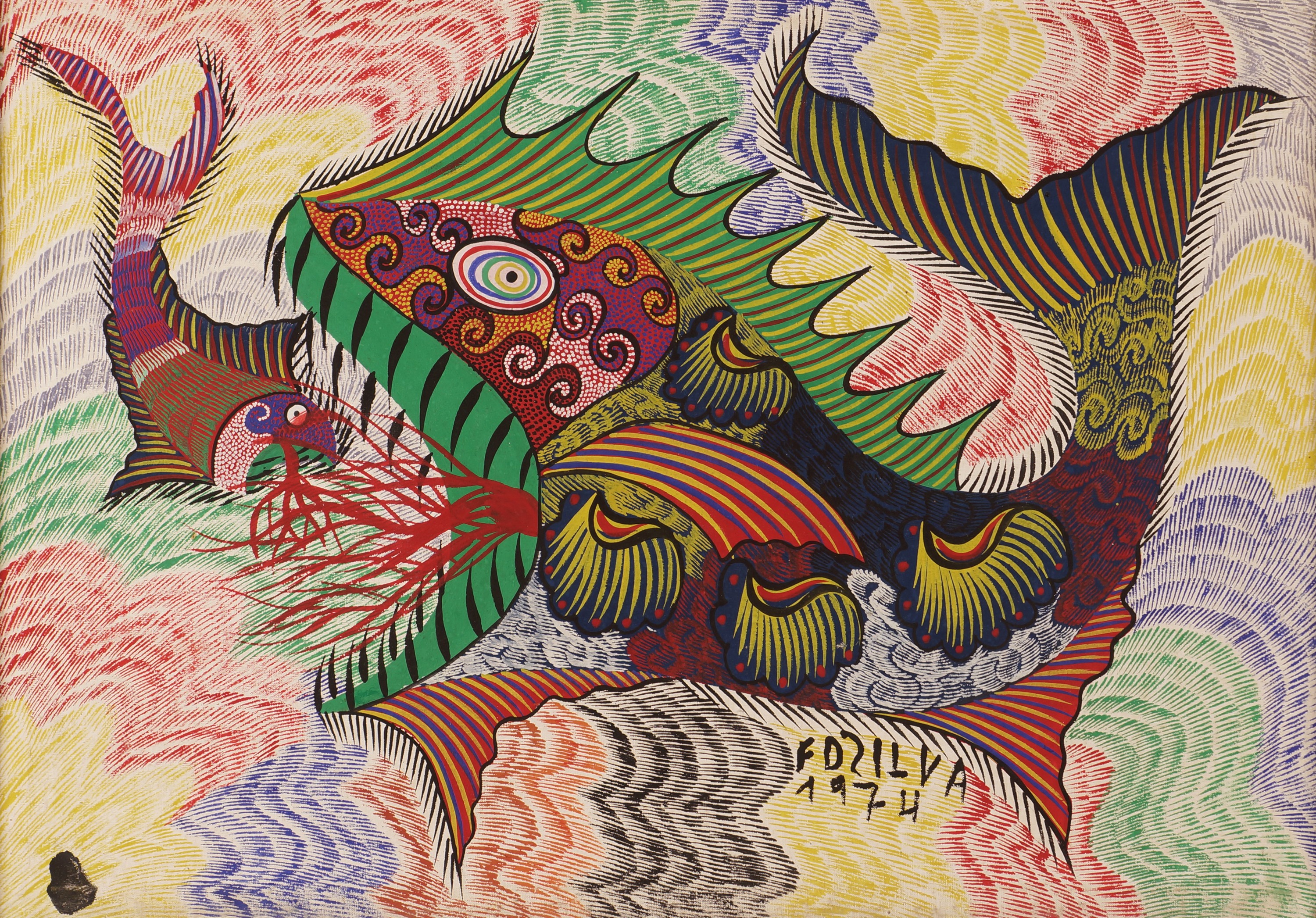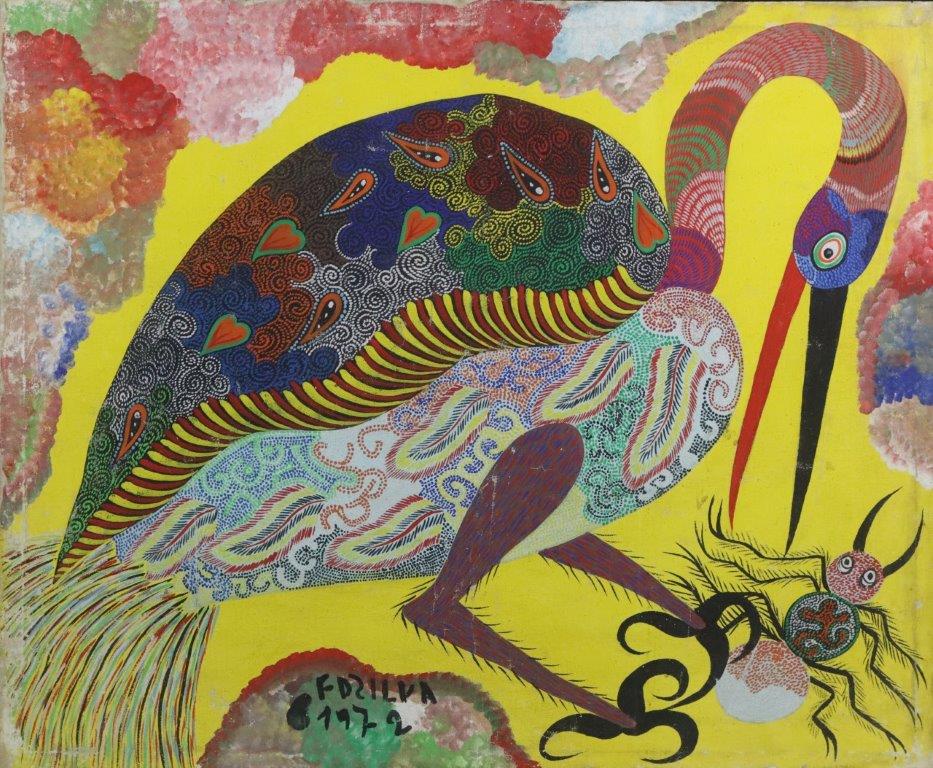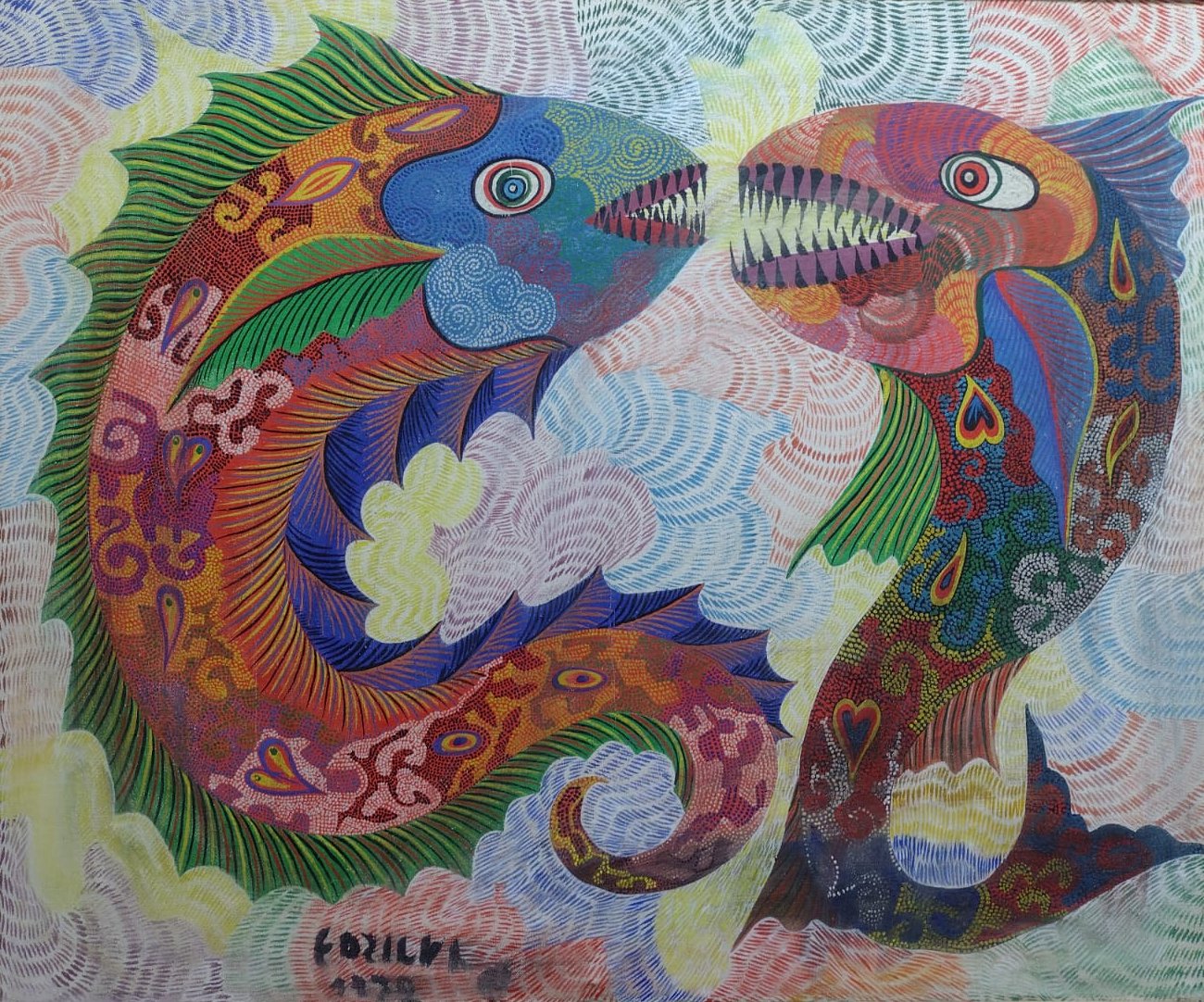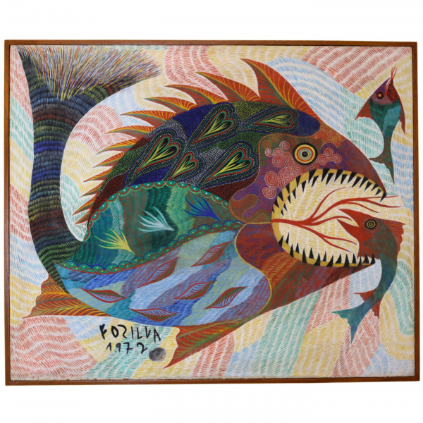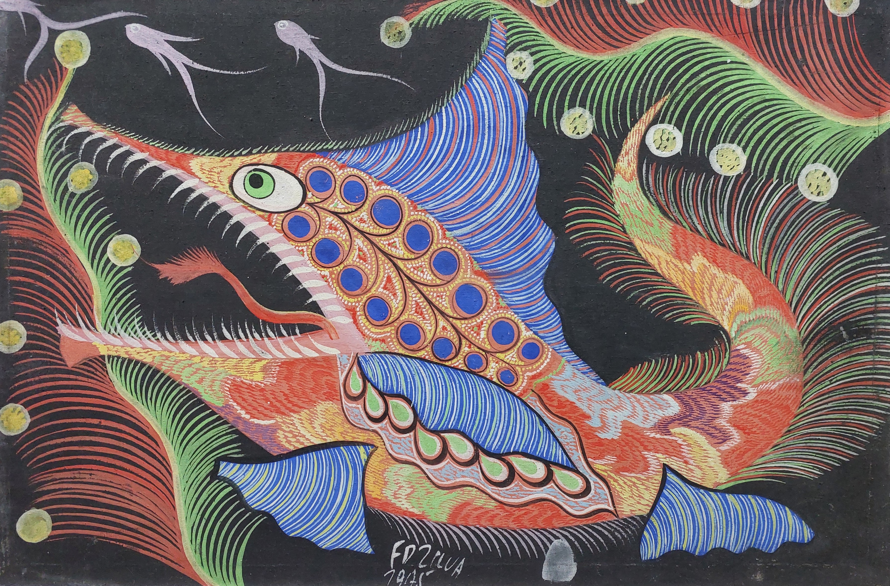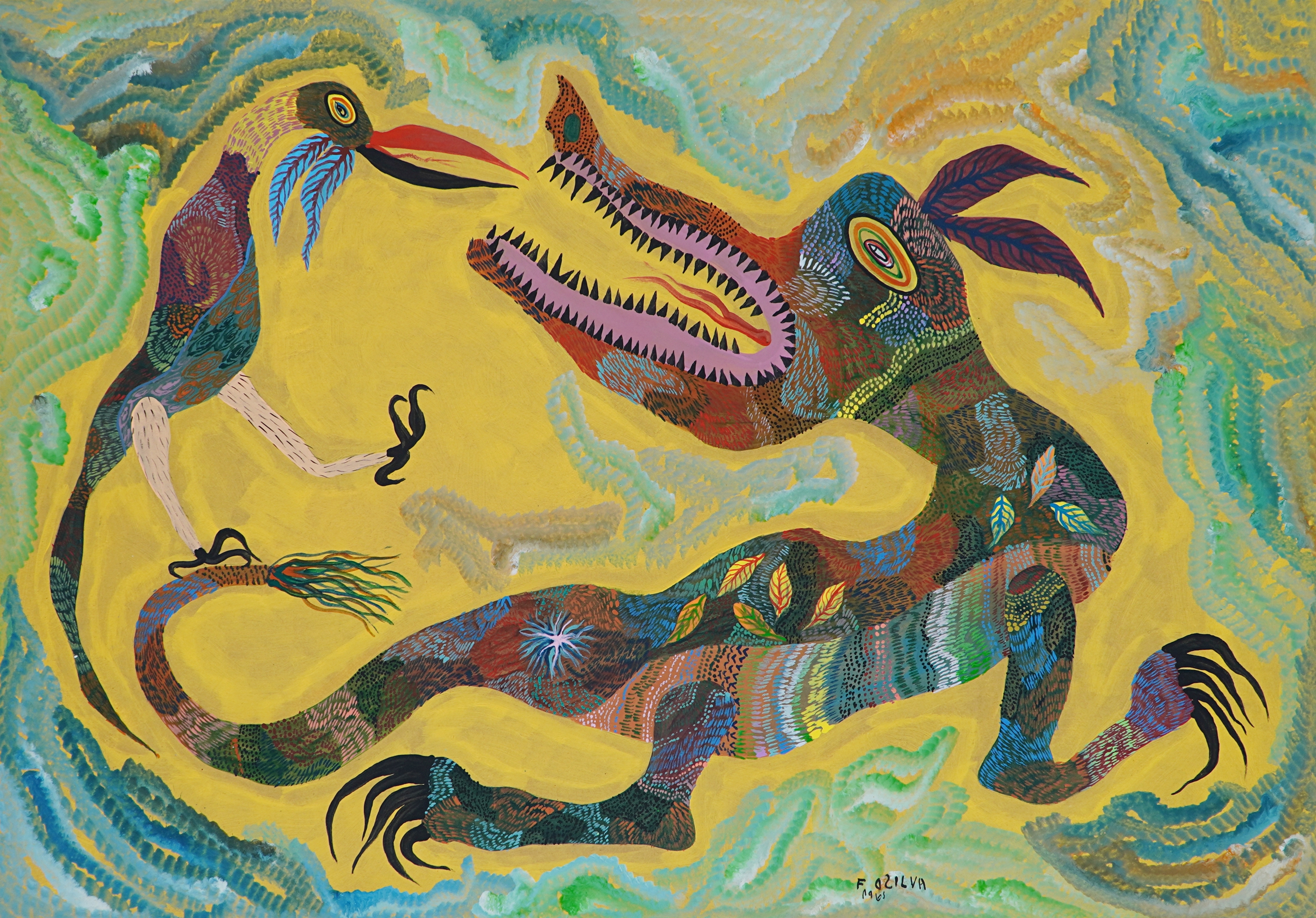 Francisco da Silva - Pavão Fantastico - Óleo sobre tela - 50 alt x 70 larg - acid - 1973