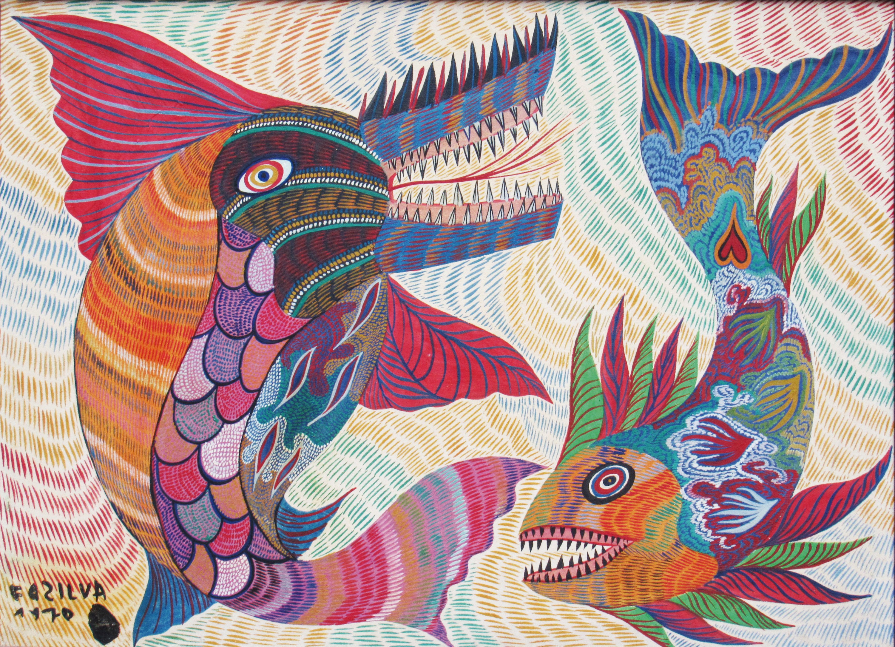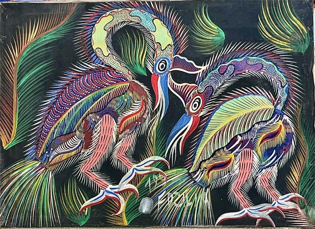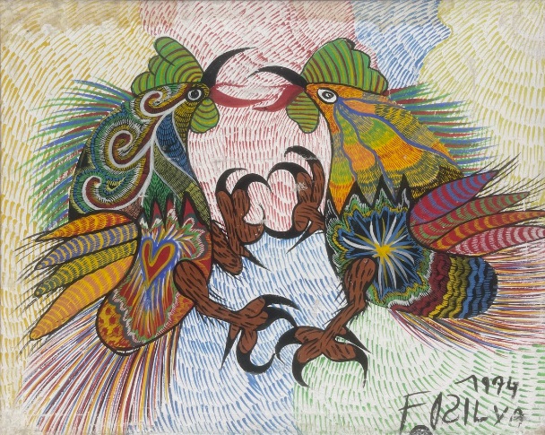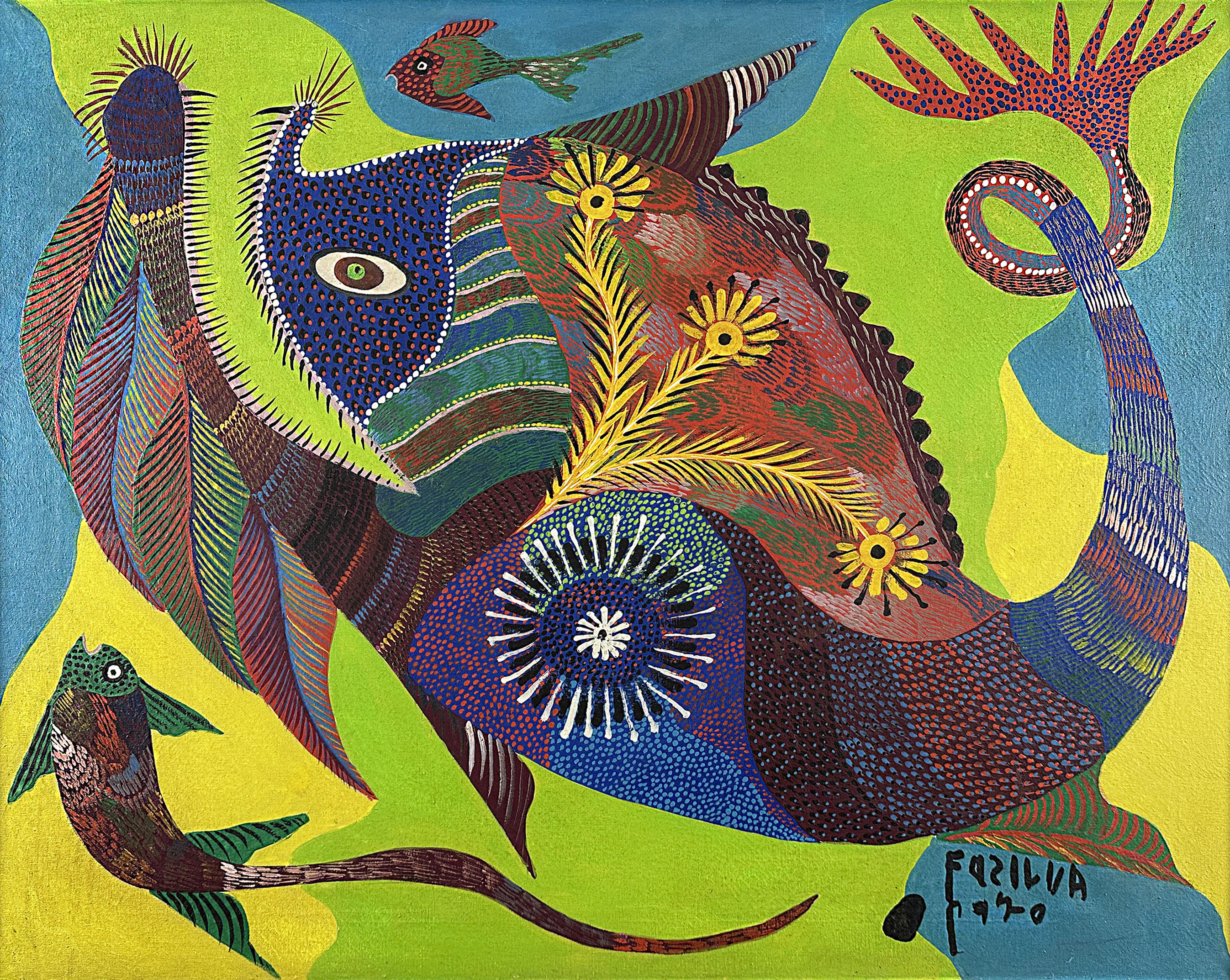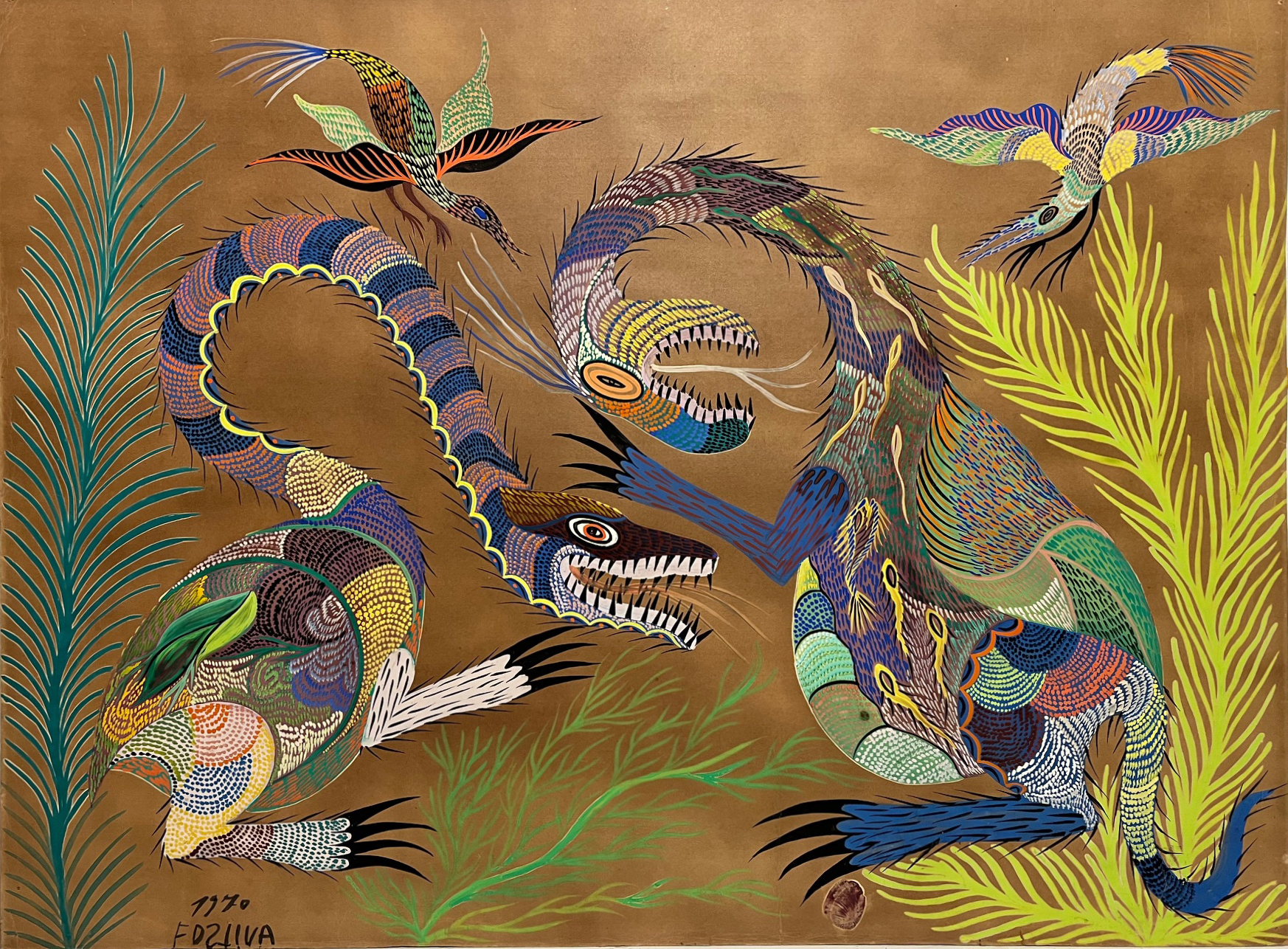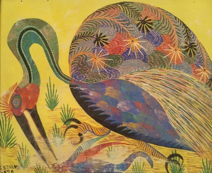 Francisco da Silva - Pavão Fantastico - Óleo sobre tela - 50 alt x 70 larg - acid - 1973