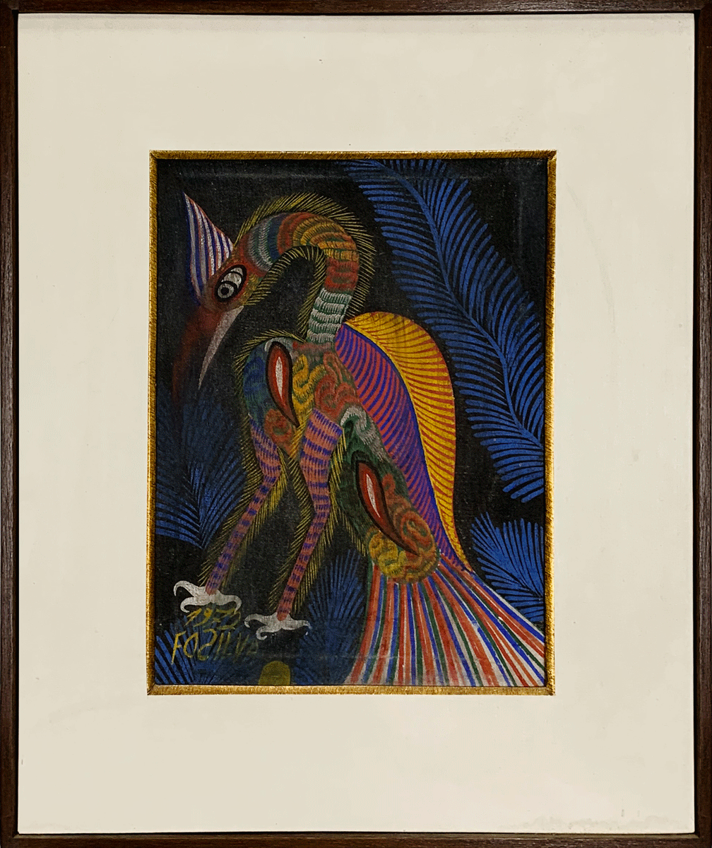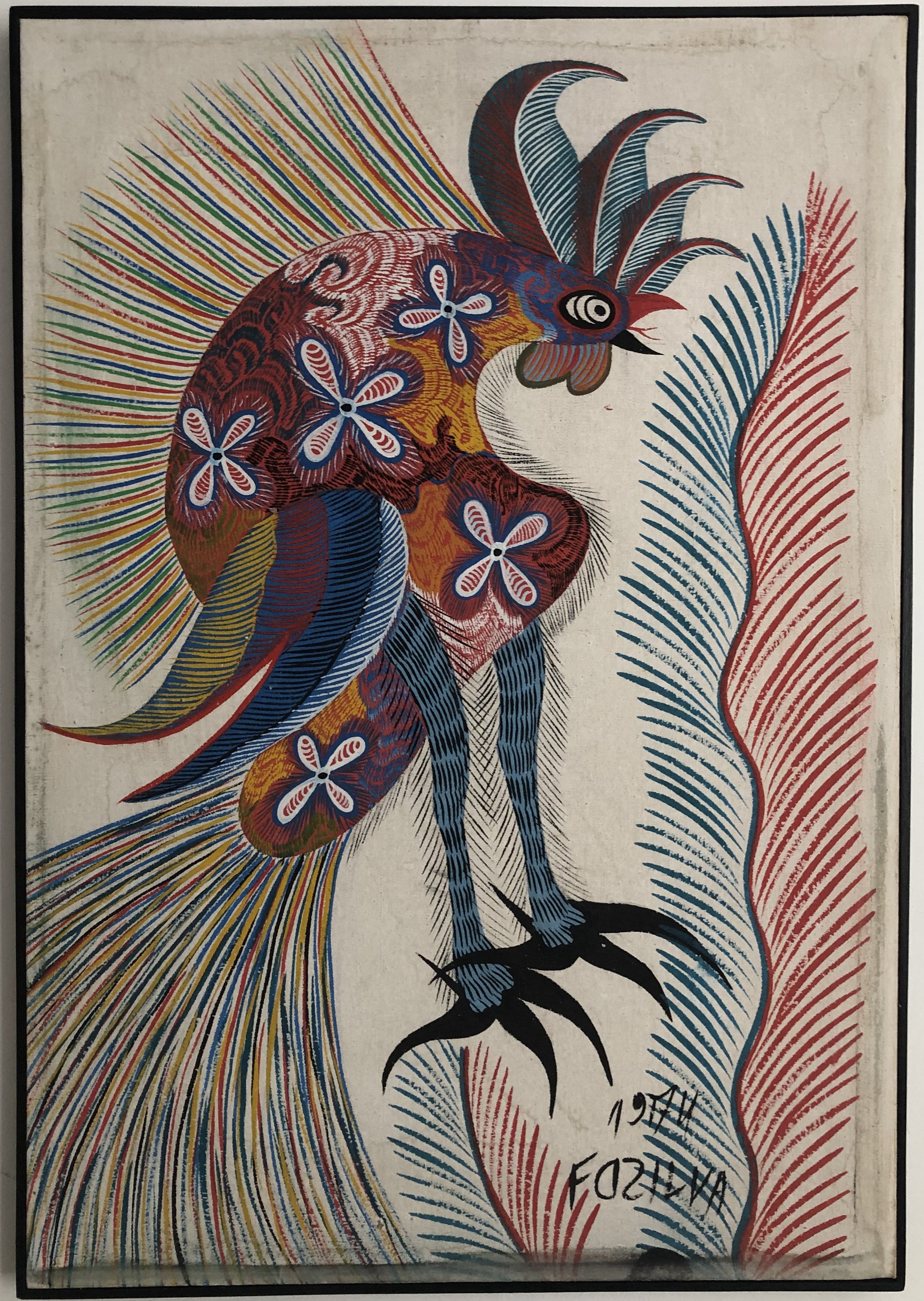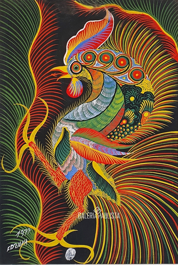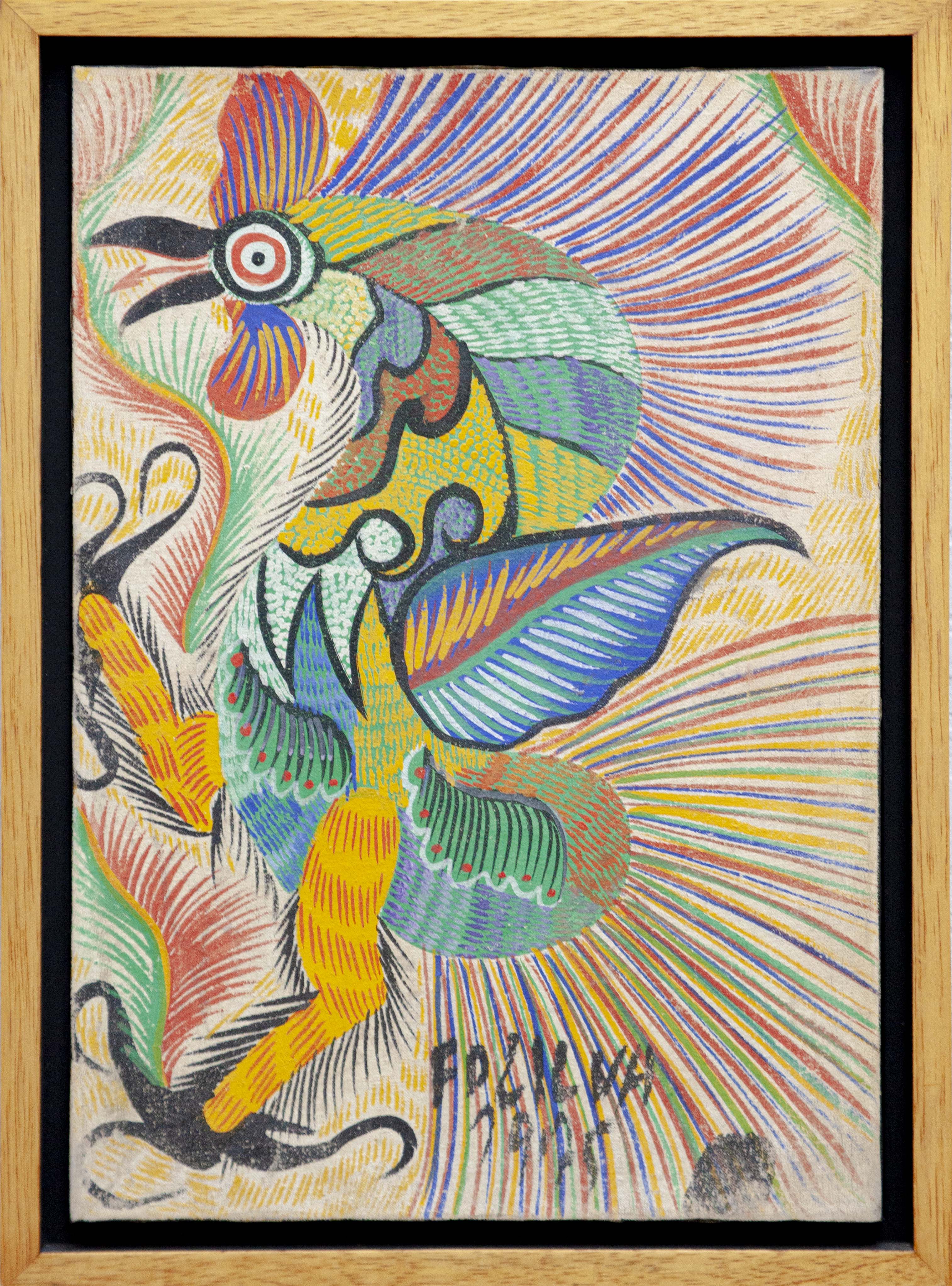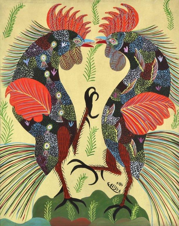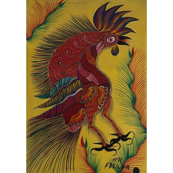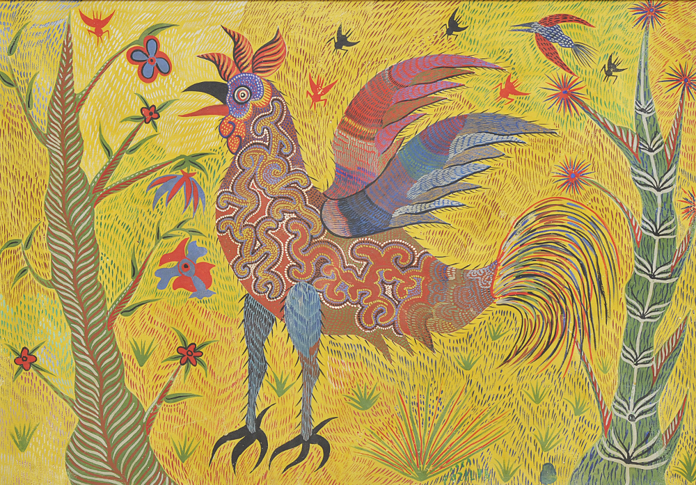 Chico da Silva - Galo - Têmpera sobre tela - 70x50 cm - A.c.i.d. 1973