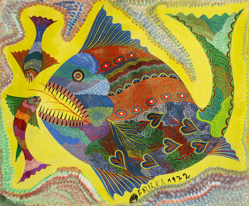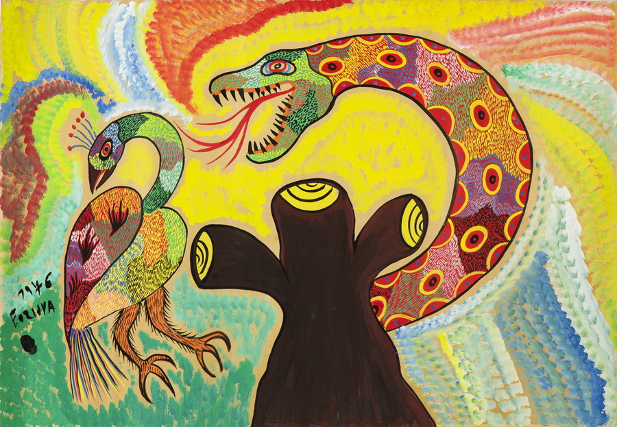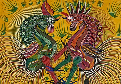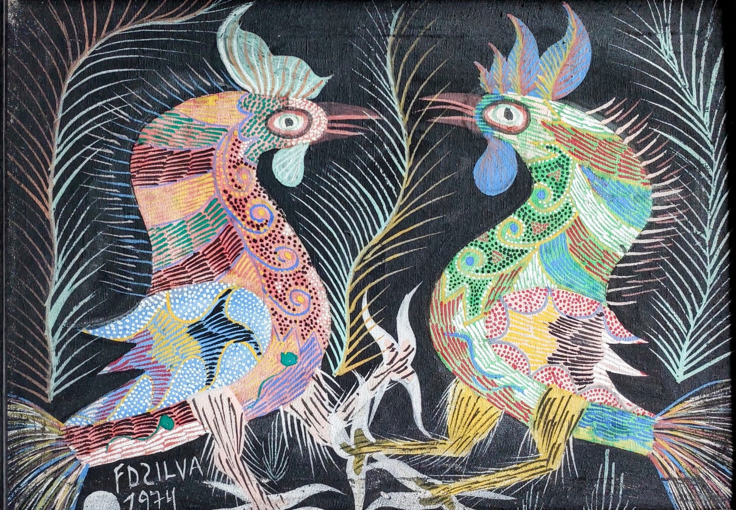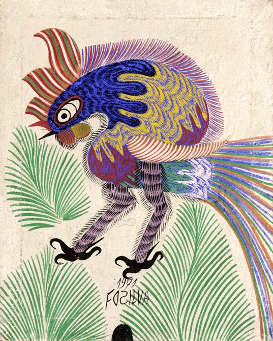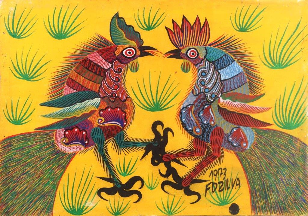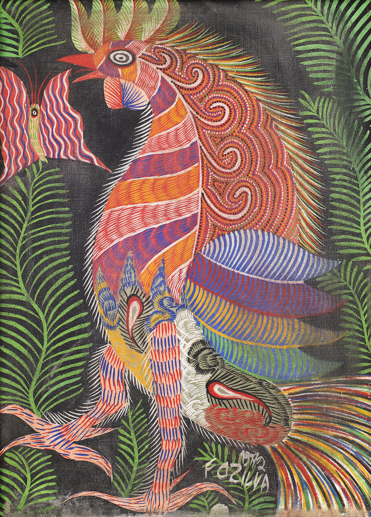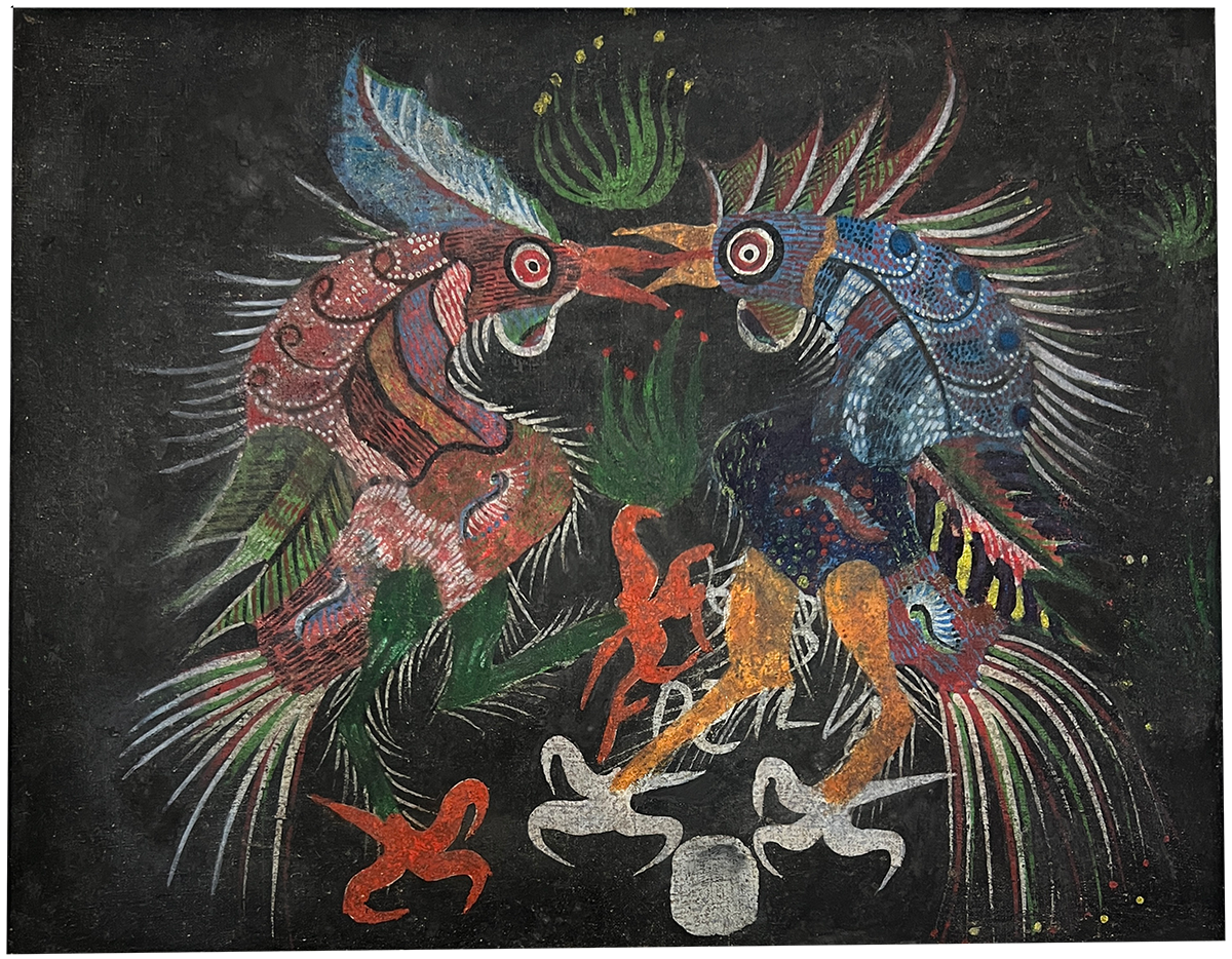 Chico da Silva - Galo - Têmpera sobre tela - 70x50 cm - A.c.i.d. 1973