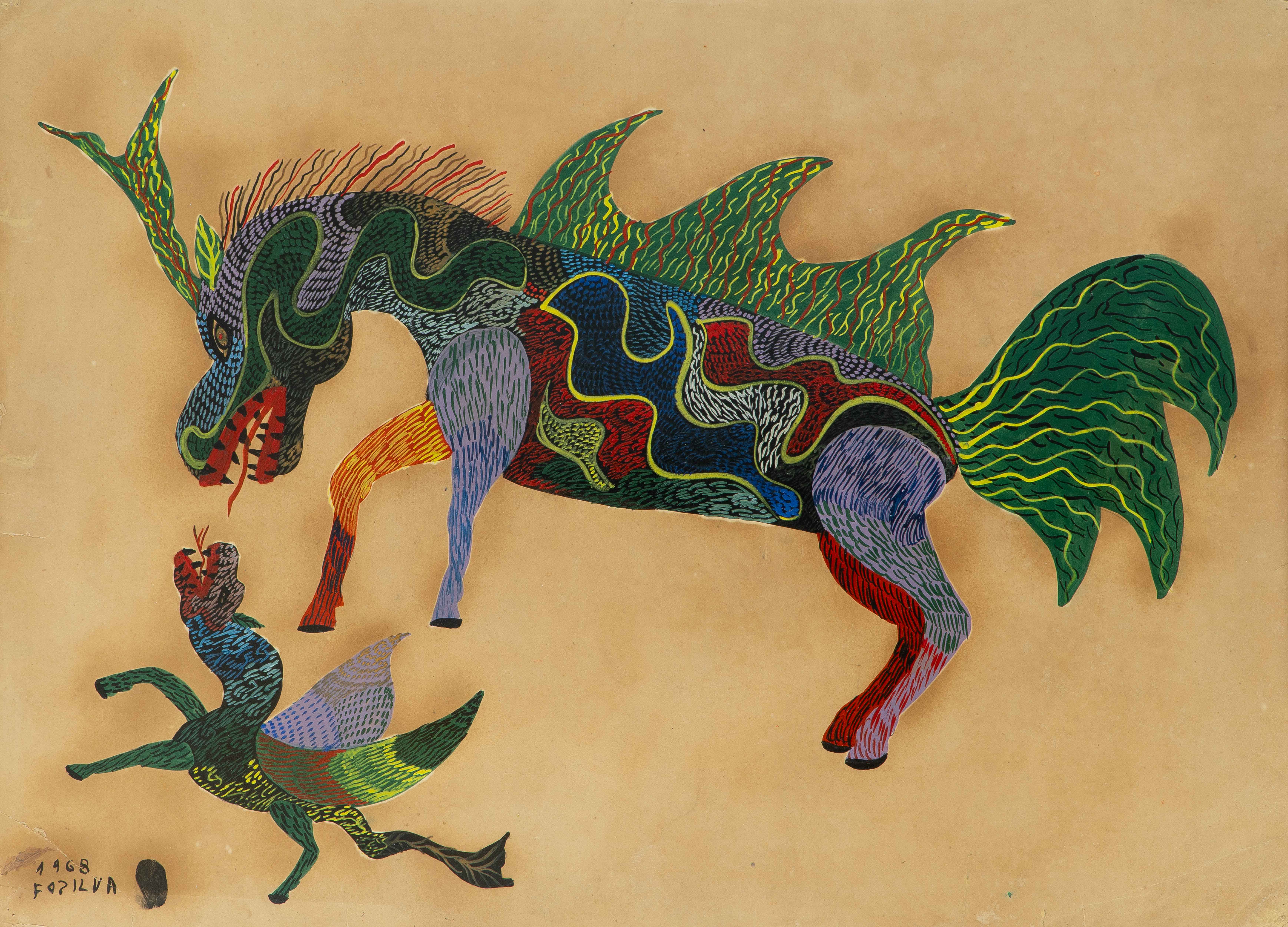 Francisco da Silva - Animal Fantástico - Óleo sobre madeira - 26 alt x 43 larg - acid