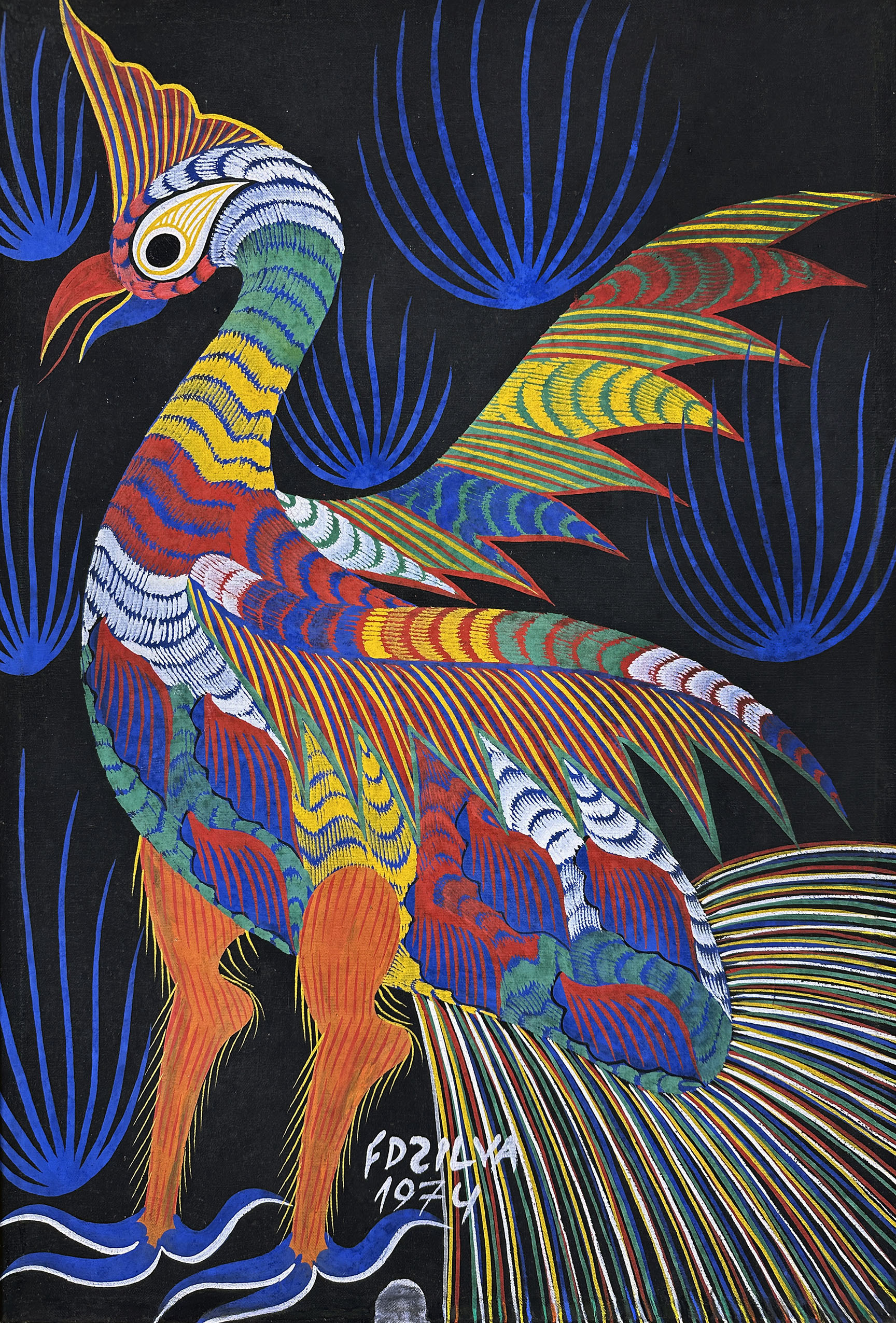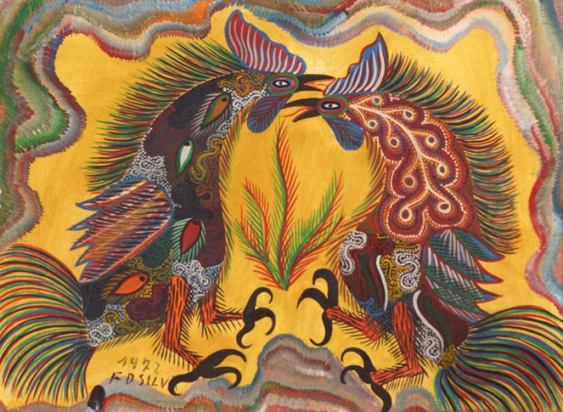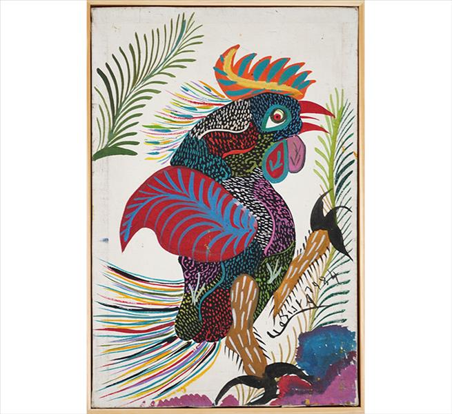 Chico da Silva - Galo - Têmpera sobre tela - 70x50 cm - A.c.i.d. 1973