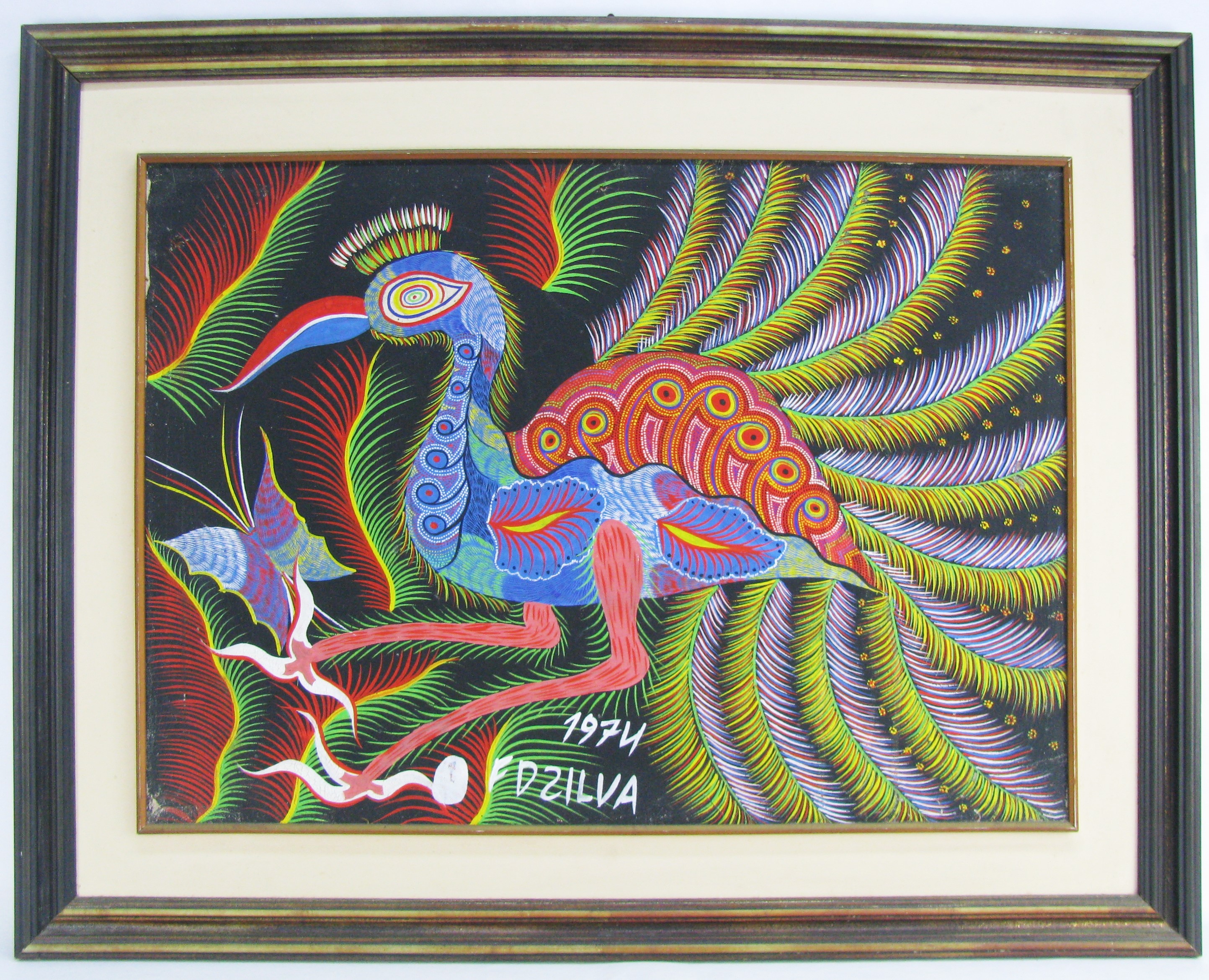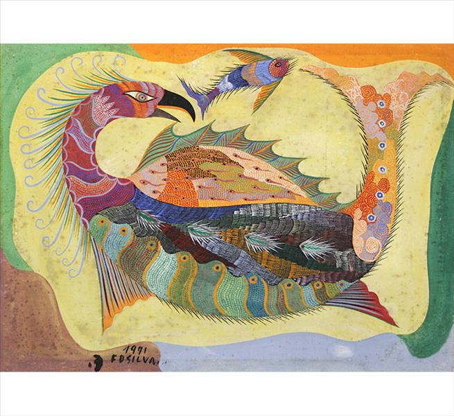 Francisco da Silva - Pavão Fantastico - Óleo sobre tela - 50 alt x 70 larg - acid - 1973