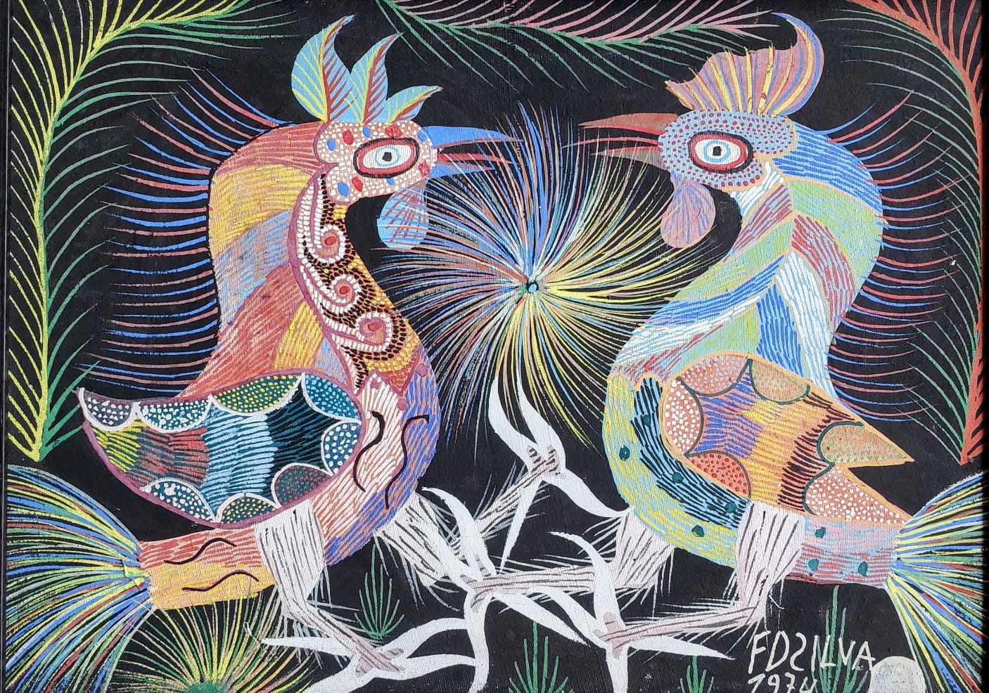 Chico da Silva - Galo - Têmpera sobre tela - 70x50 cm - A.c.i.d. 1973
