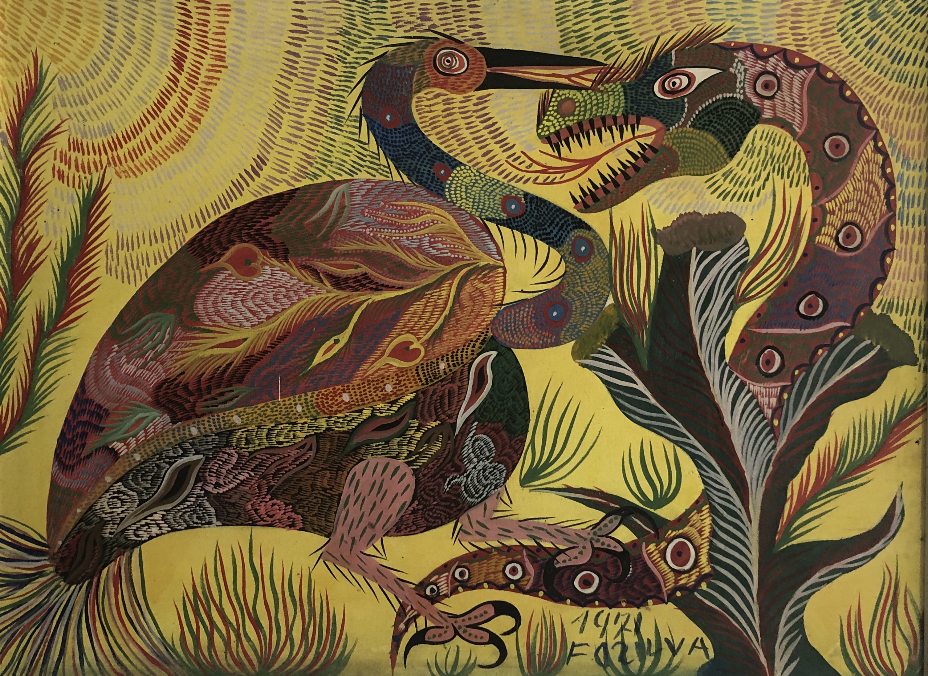 Francisco da Silva - Pavão Fantastico - Óleo sobre tela - 50 alt x 70 larg - acid - 1973