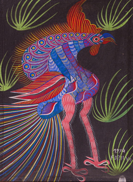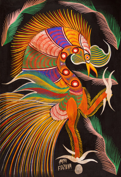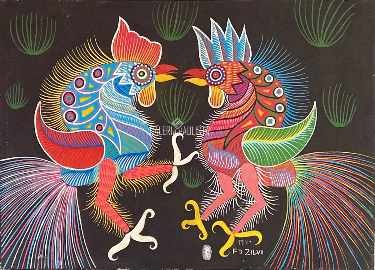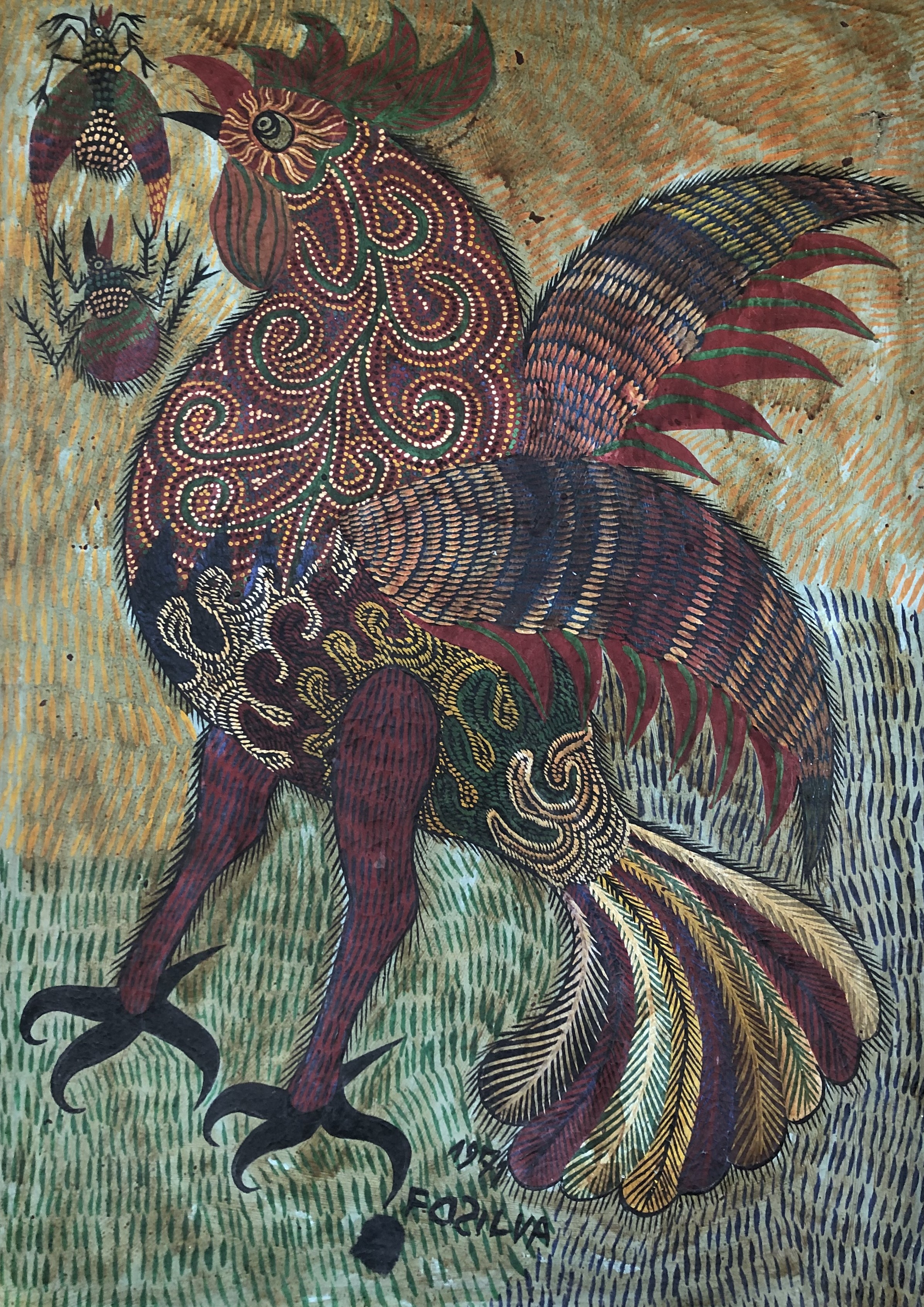 Chico da Silva - Galo - Têmpera sobre tela - 70x50 cm - A.c.i.d. 1973