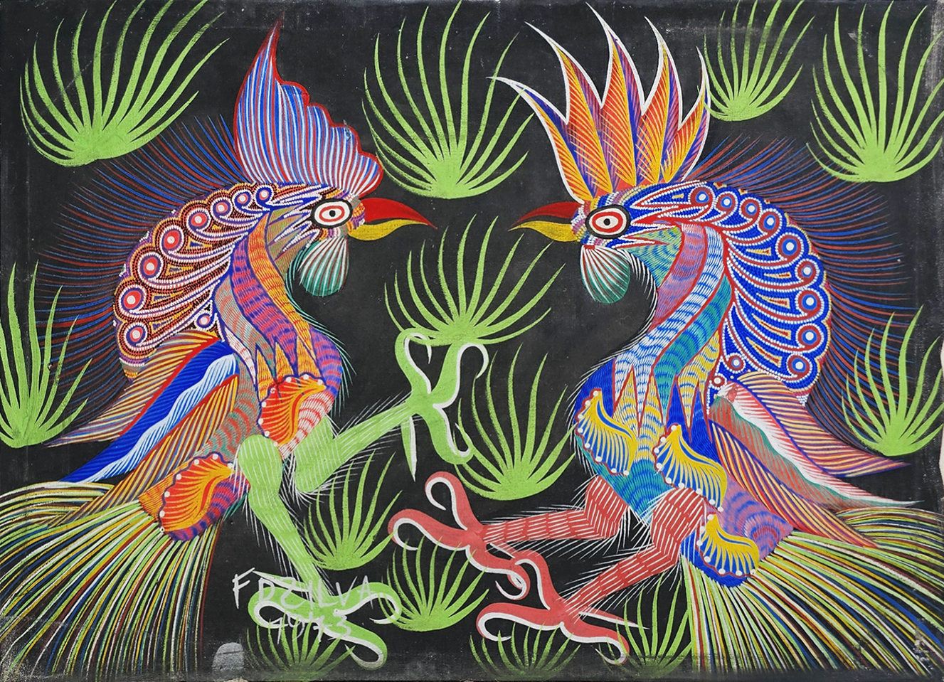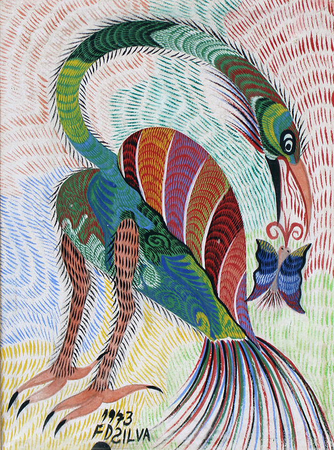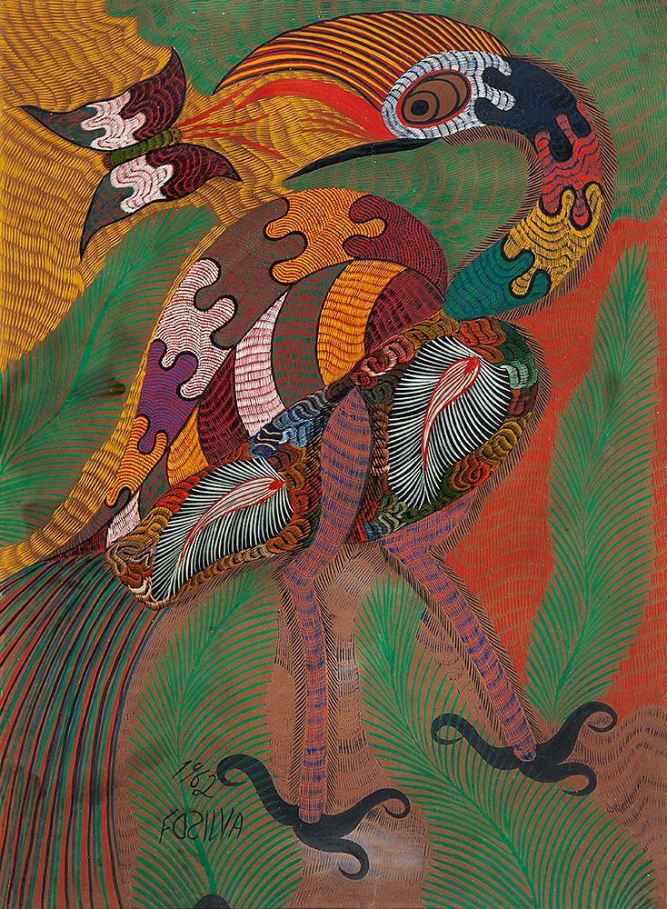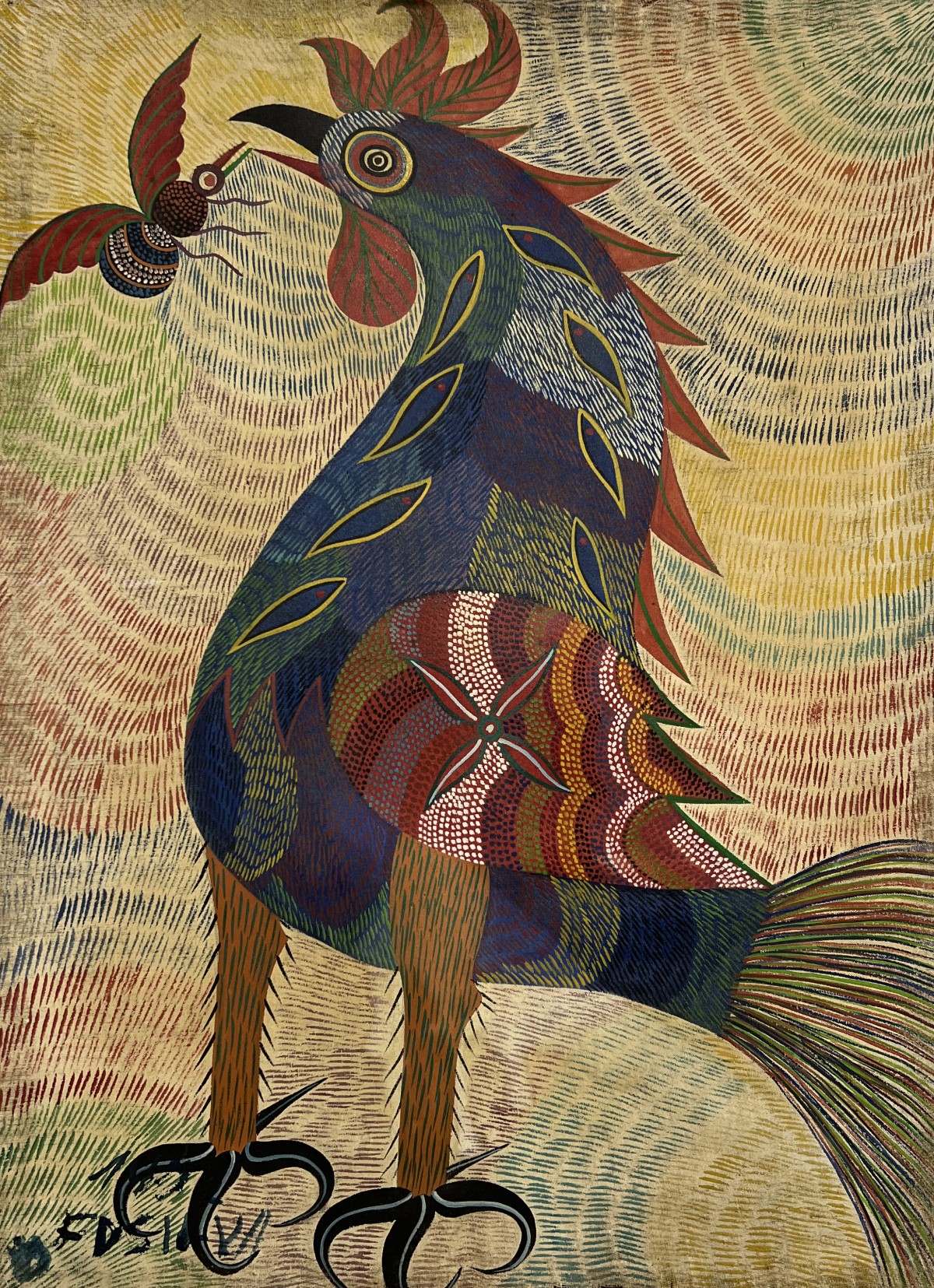 Chico da Silva - Galo - Têmpera sobre tela - 70x50 cm - A.c.i.d. 1973