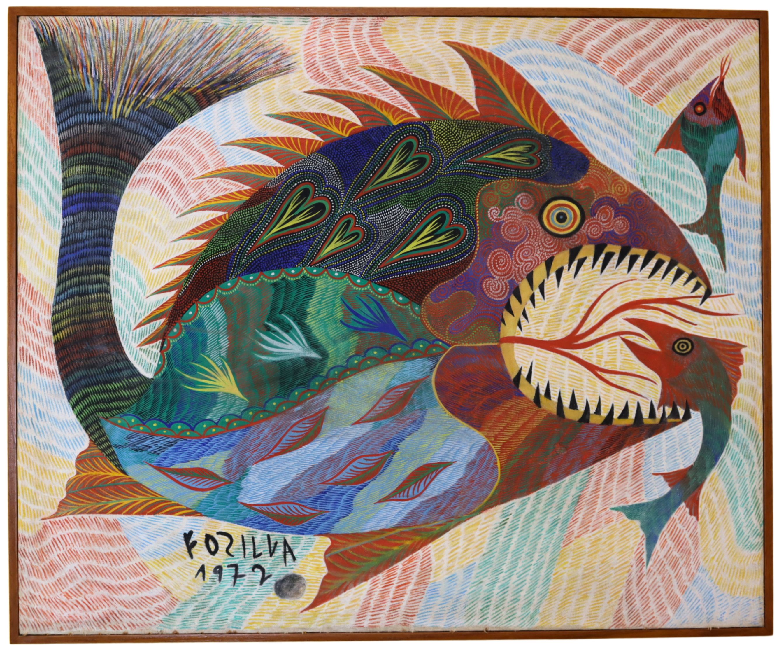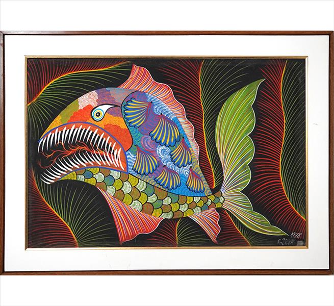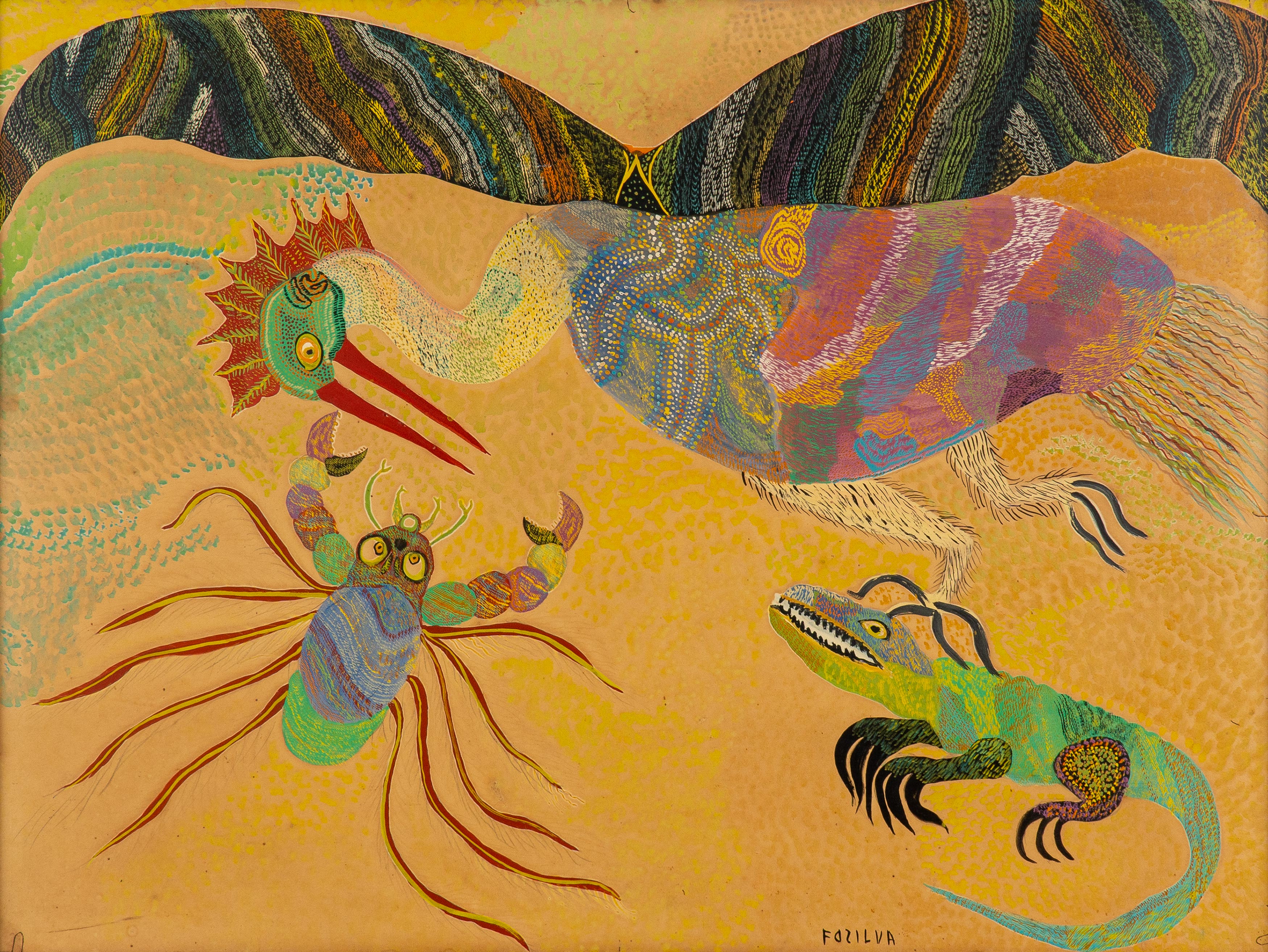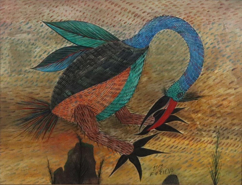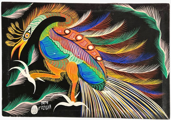 Francisco da Silva - Pavão Fantastico - Óleo sobre tela - 50 alt x 70 larg - acid - 1973