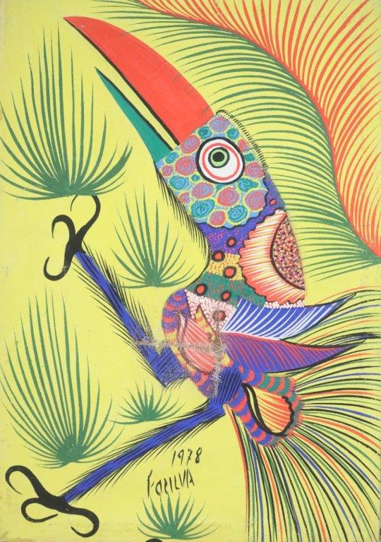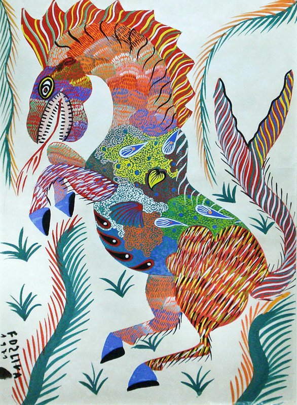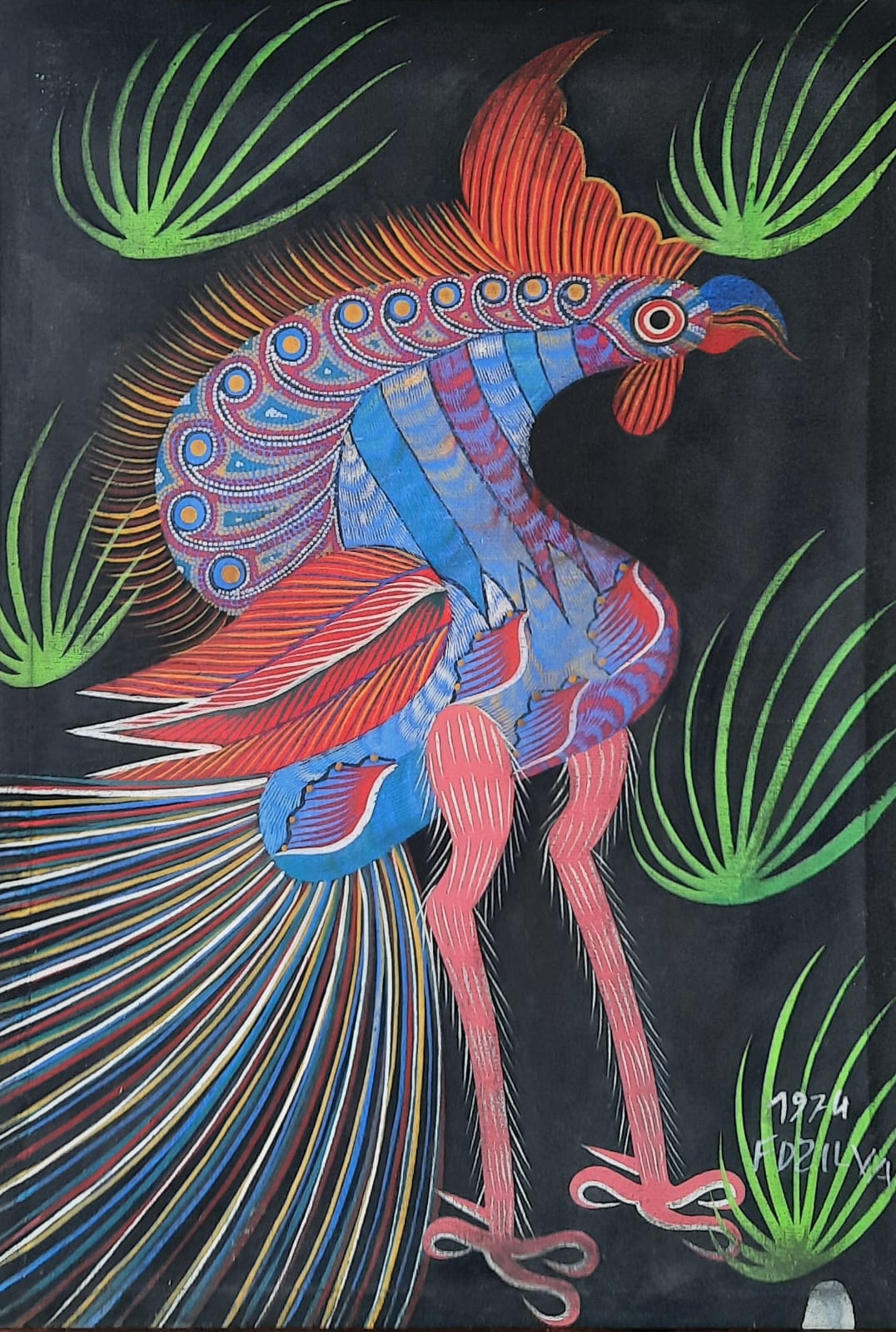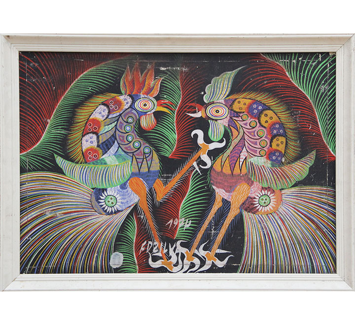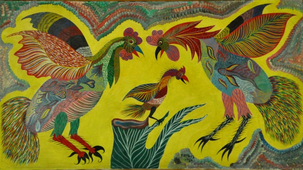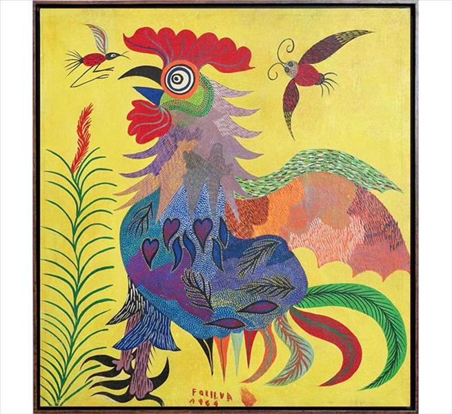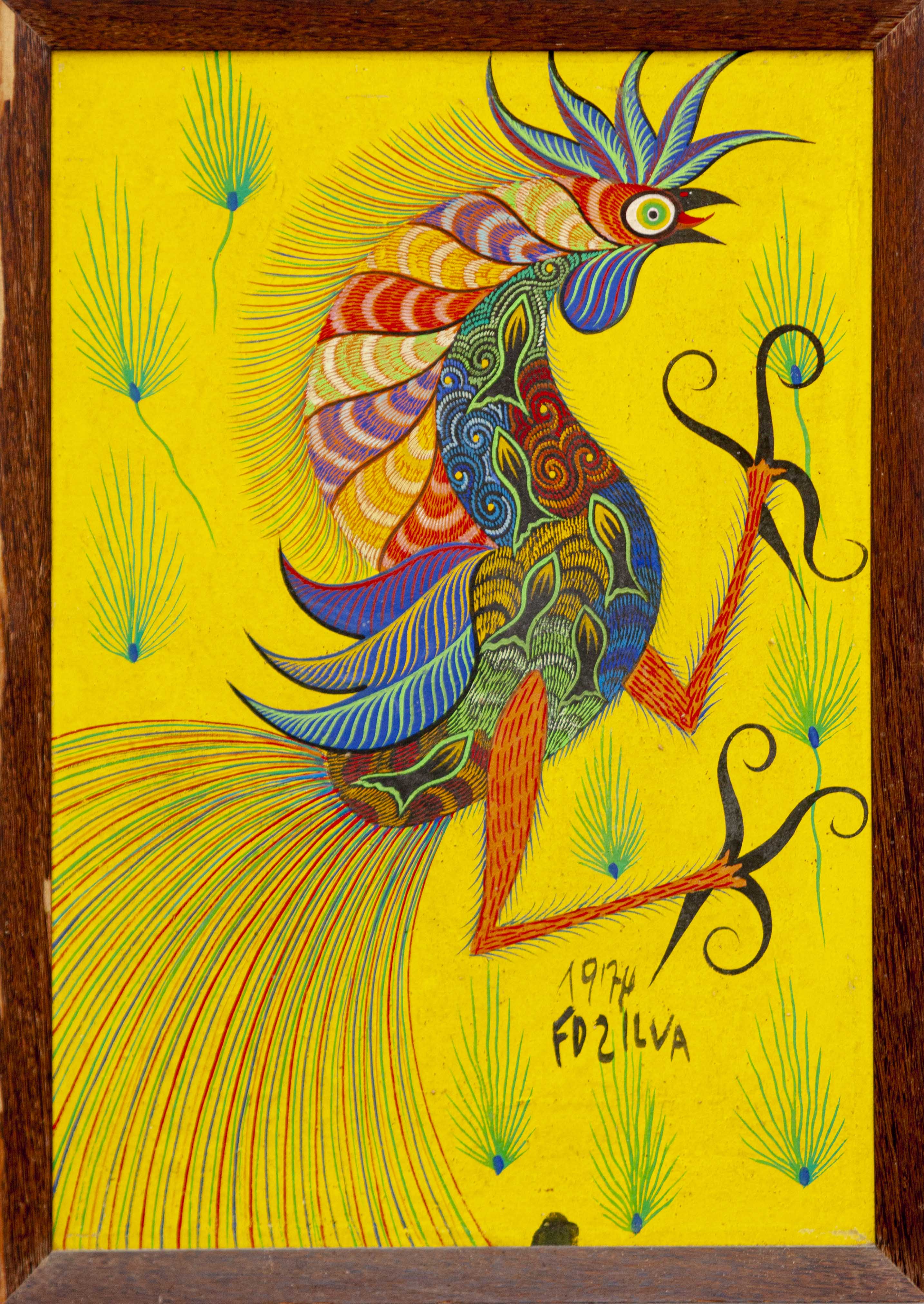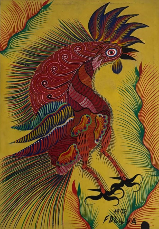 Chico da Silva - Galo - Têmpera sobre tela - 70x50 cm - A.c.i.d. 1973