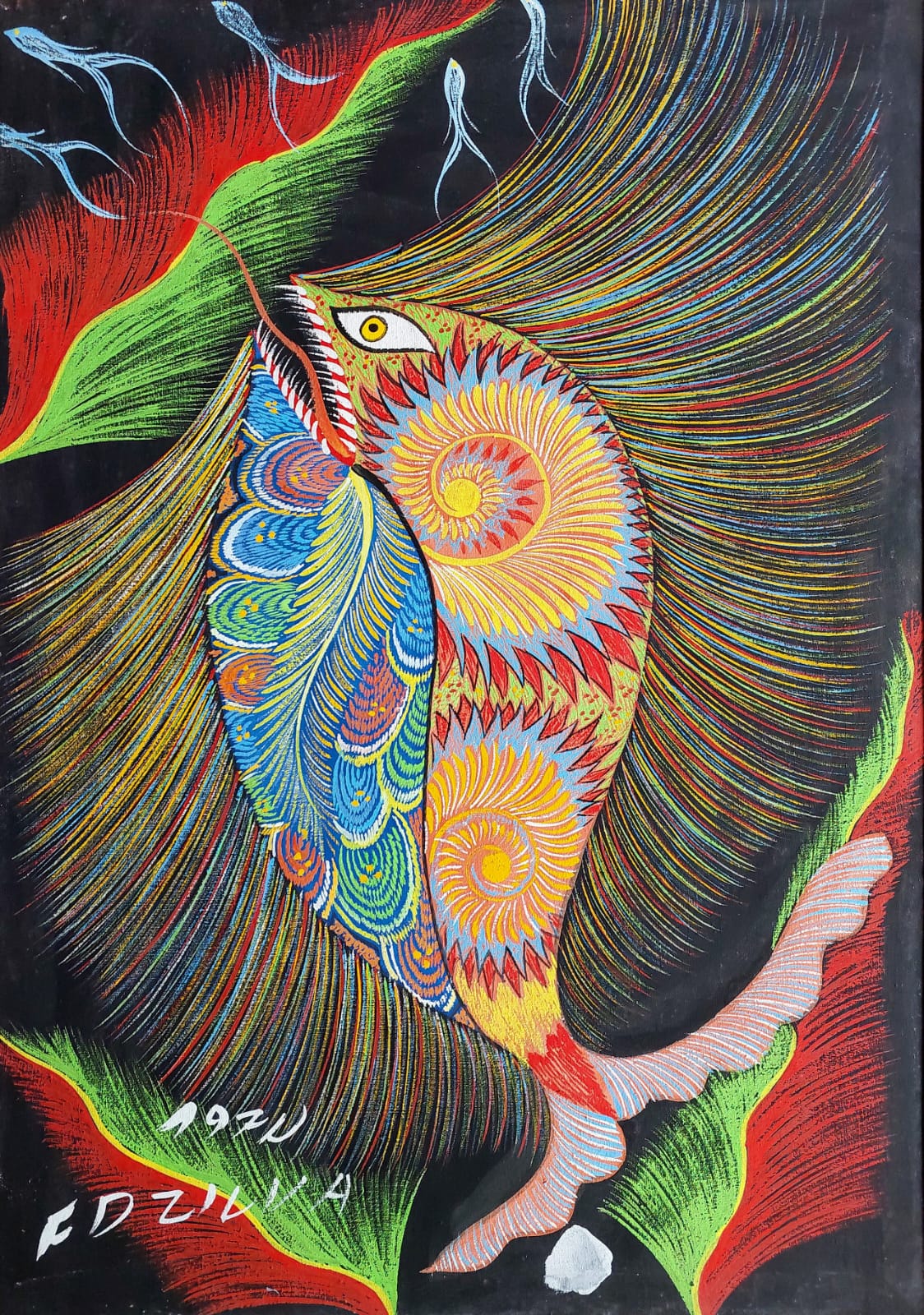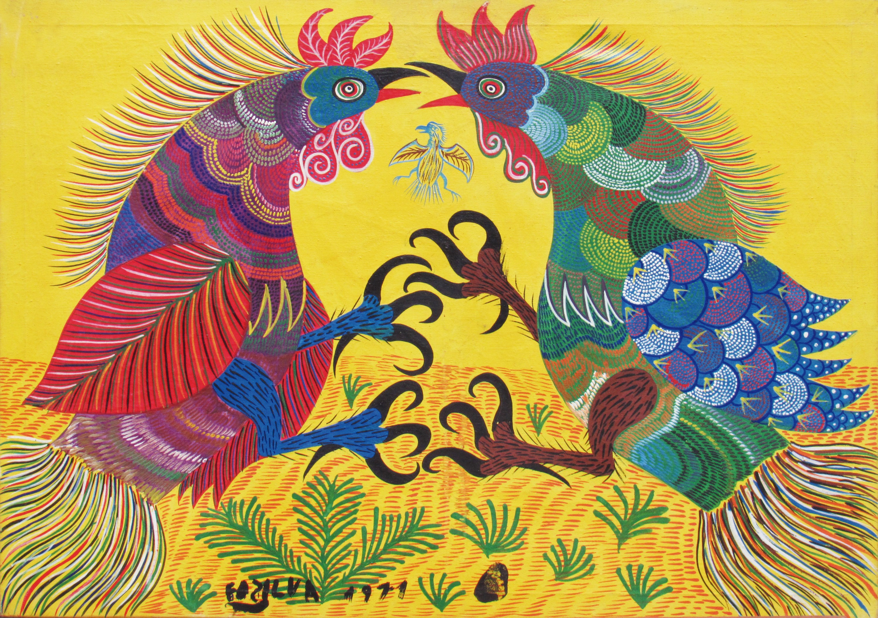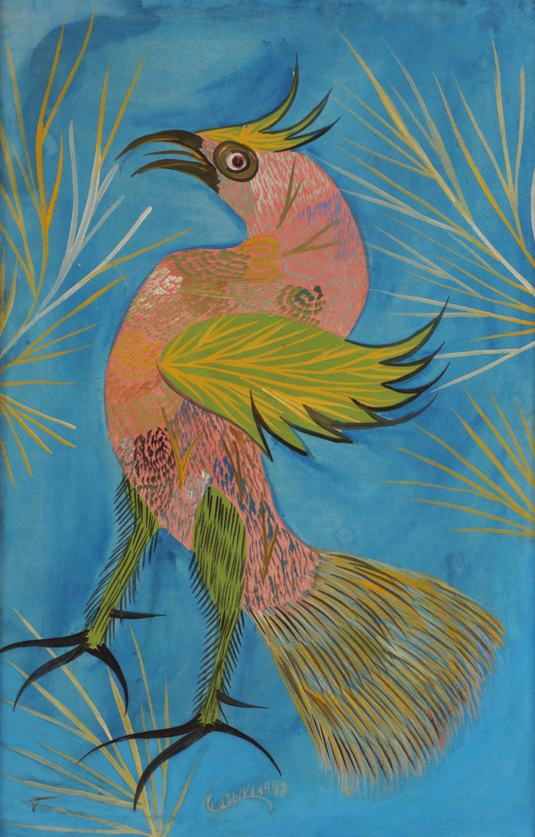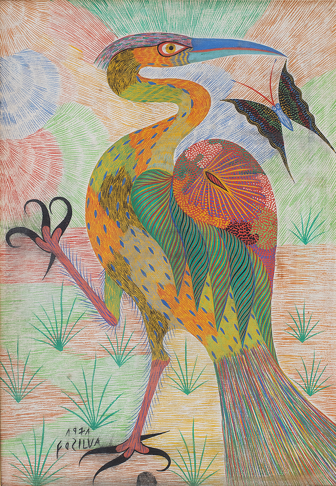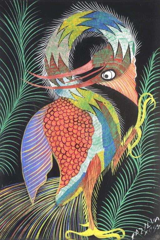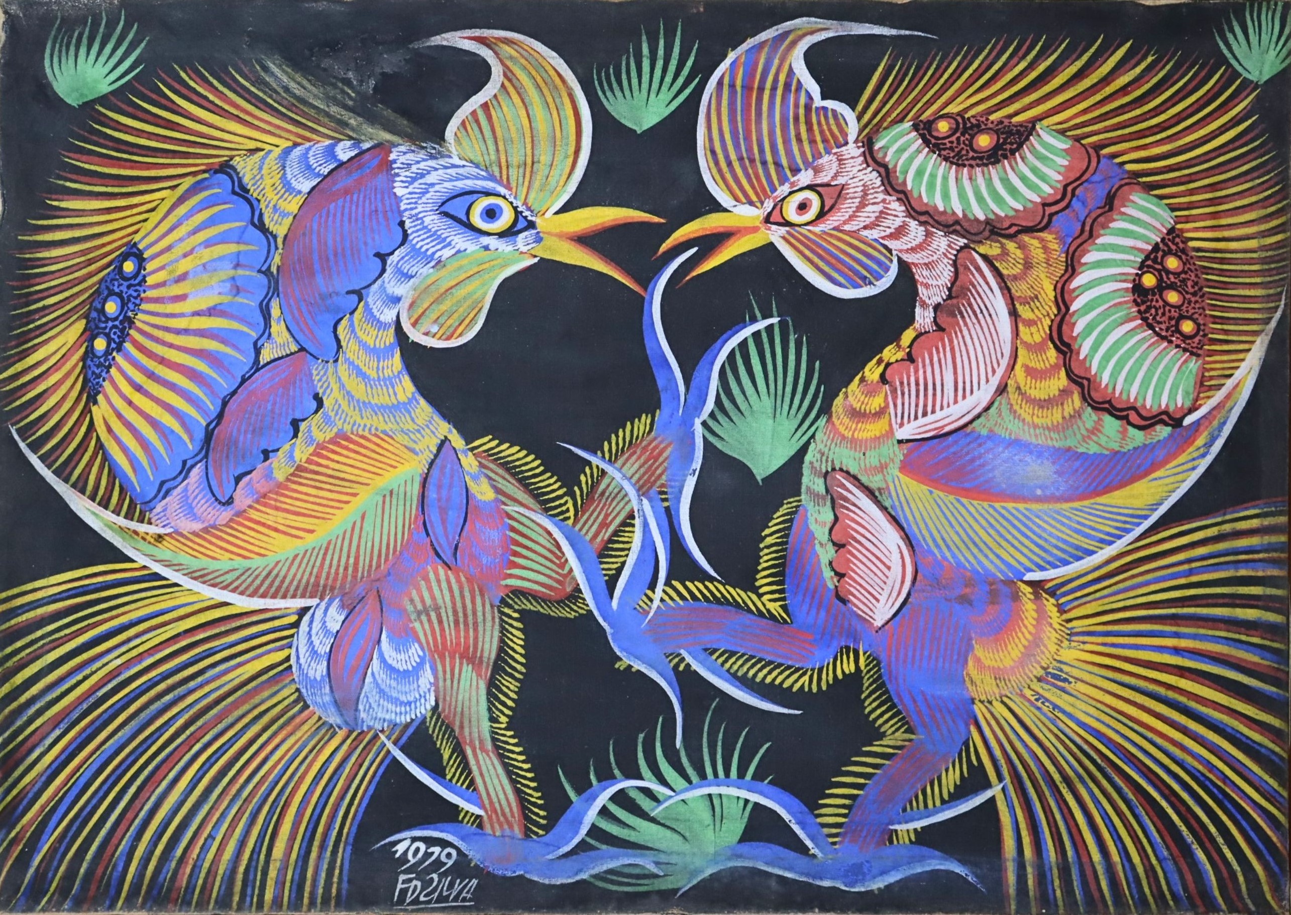Chico da Silva - Galo - Têmpera sobre tela - 70x50 cm - A.c.i.d. 1973