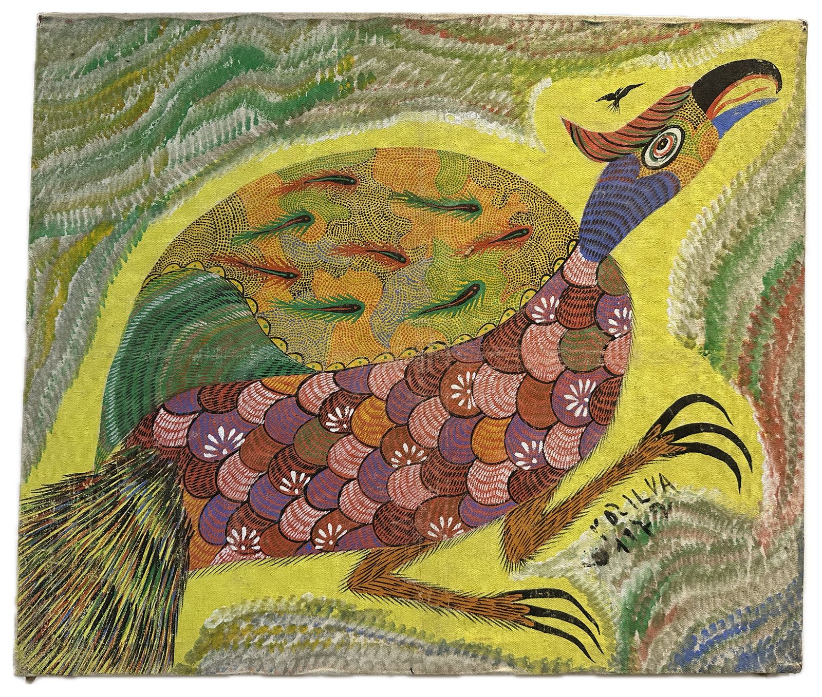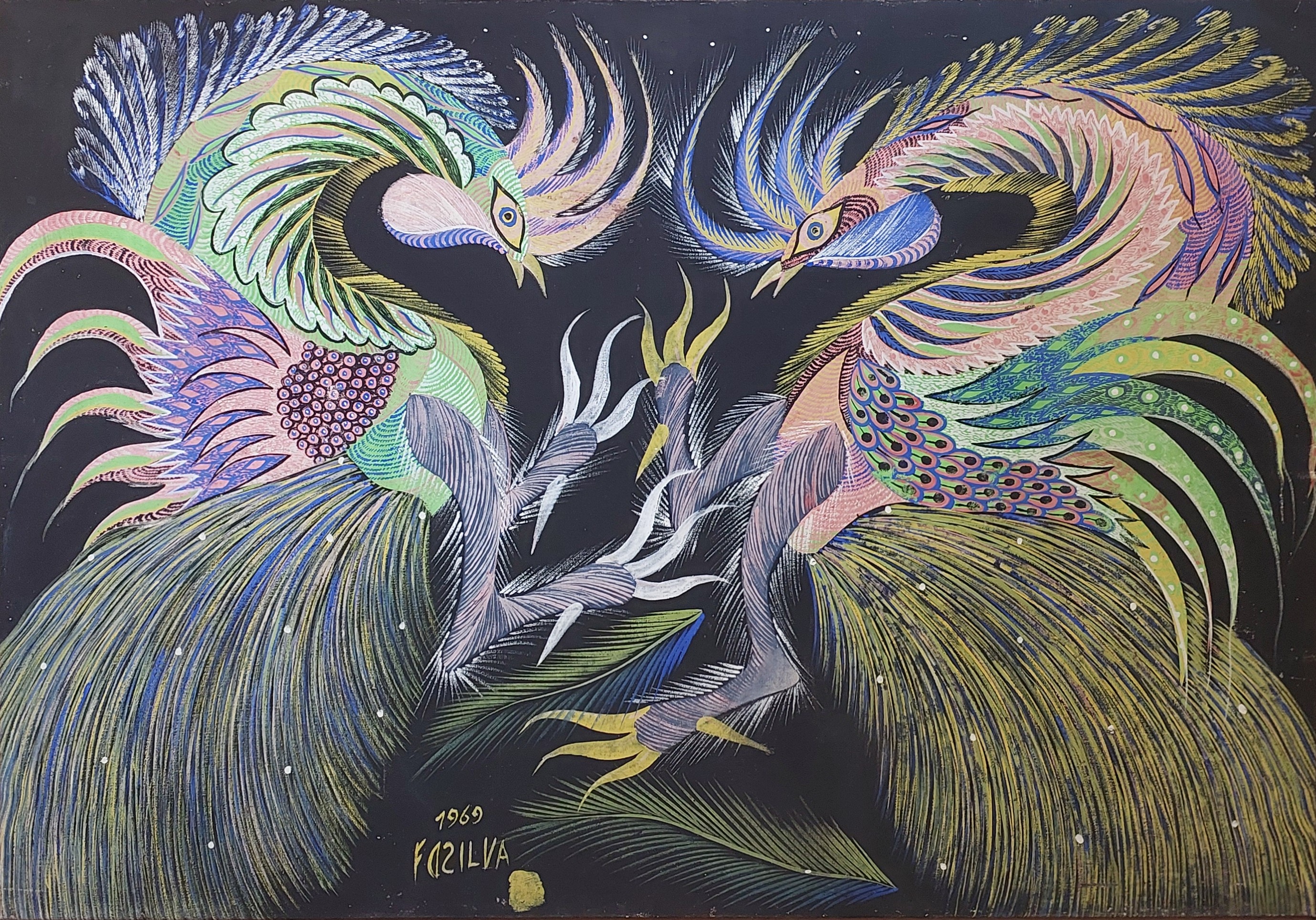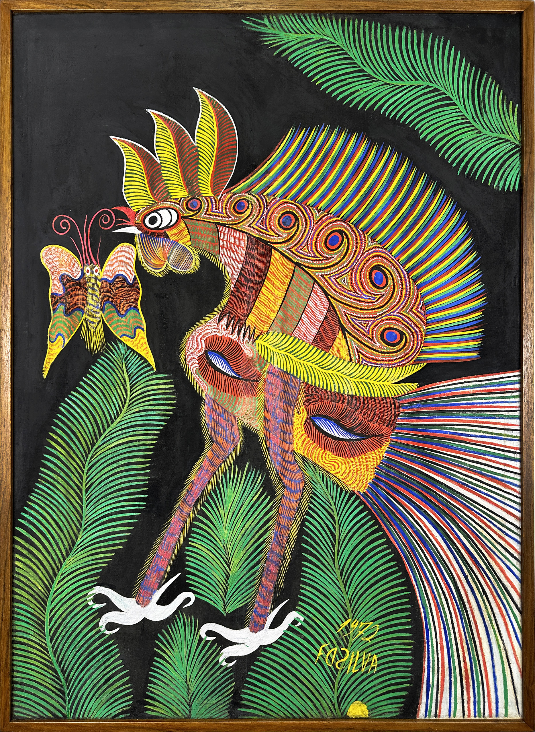 Francisco da Silva - Pavão Fantastico - Óleo sobre tela - 50 alt x 70 larg - acid - 1973